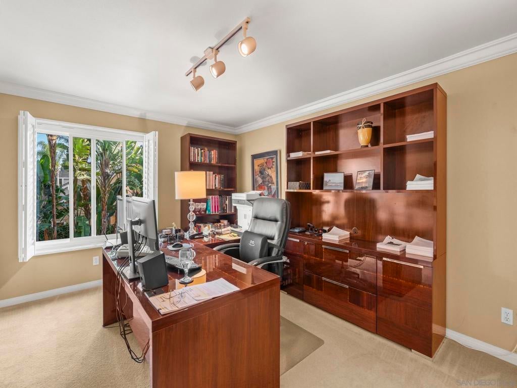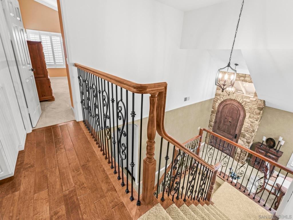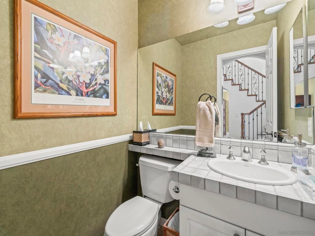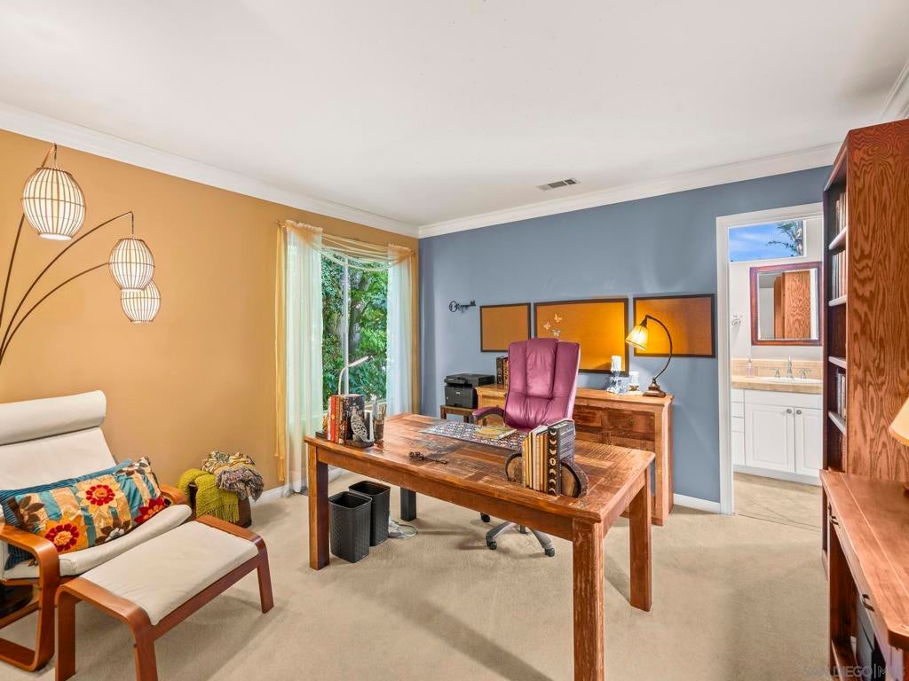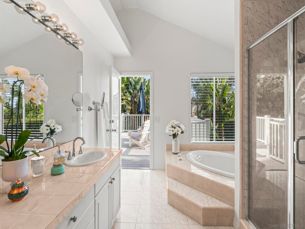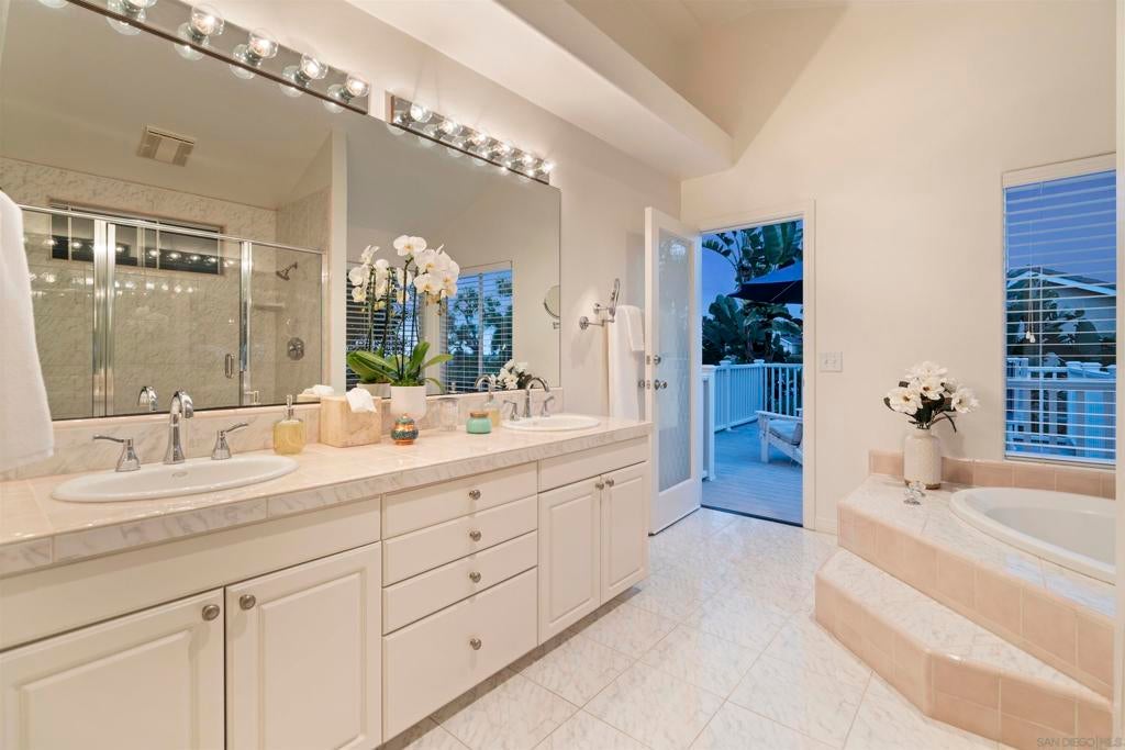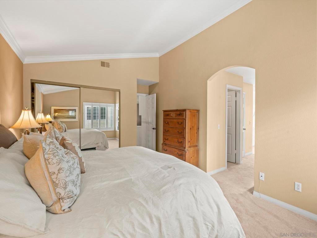 Welcome to a truly one-of-a-kind residence in the highly sought-after neighborhood of Rancho La Costa. Perched in the hills above the renowned Omni La Costa Resort & Spa, this tranquil oasis has been lovingly maintained and upgraded by one owner—and is now offered for the very first time. Set on a prime, level corner lot within a peaceful cul-de-sac, this home offers exceptional privacy, refreshing ocean breezes, and effortless access to top-rated schools, beaches, shopping, and the Alga Norte Park & Swim Complex. Step through the custom stone and wood entry blending artistry and architectural charm into an inviting design with vaulted ceilings, crown molding, skylights, and tumbled travertine flooring that exude warmth and timeless elegance. The airy great room flows seamlessly into a culinary-inspired kitchen featuring a grand island with sink, walk-in pantry, custom cabinetry with pull-outs, and generous prep space—ideal for gatherings and everyday living. Upstairs, the primary suite is a serene retreat with a private deck showcasing ocean and golf course views, an oversized dual-head shower, walk-in closet, and refined finishes. Two of the spacious secondary bedrooms, also with walk-in closets, share a stylish Jack-and-Jill bath. Exterior highlights include stone paver entry and driveway, multiple patios, lush landscaping, custom lighting, fountain feature, and two producing avocado trees. A showcase of craftsmanship, comfort, and coastal sophistication—this Rancho La Costa gem is available now for the first time. Rancho La Costa in Carlsbad blends upscale suburban comfort with Southern California’s outdoor lifestyle. Tree-lined streets, large lots, and architecturally varied homes—many with golf course or nature preserve views—give the area a sense of spacious luxury. The neighborhood has excellent schools nearby, parks, trails, and easy access to shopping centers and amenities like the Omni La Costa Resort & Spa. Outdoor enthusiasts appreciate the Rancho La Costa Preserve, the Switchback and Ridgeline Trails and other open-space areas for hiking and scenic views of the ocean and lagoon. While the vibe is relaxed, privacy is a feature with quiet streets and relatively little hustle compared to coastal San Diego, while still being just a short drive from beaches and the coast.