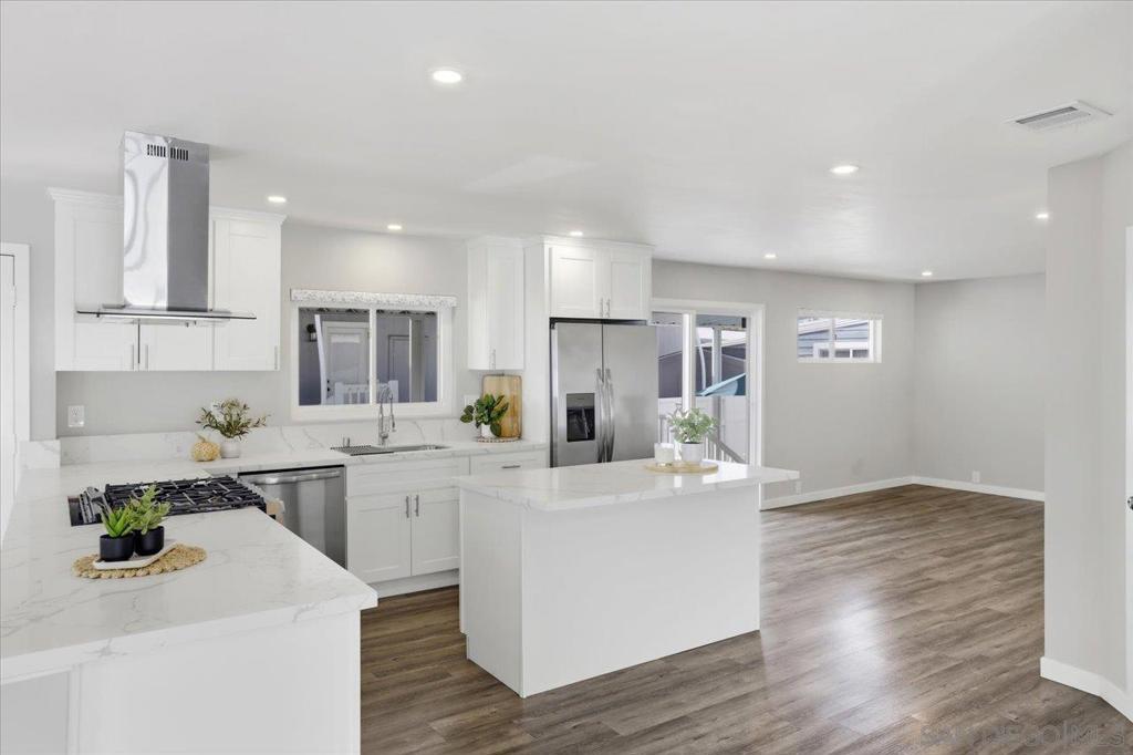 This Modern Coastal Home blends contemporary comforts and aesthetics with a coastal, relaxed atmosphere. Soothing gray colors, large open spaces, solid surface flooring throughout. Well-appointed kitchen, with ample work space and an expansive island, has newer appliances w/5 burner gas stove. Primary bath is thoughtfully modernized w/double vanity & a wall to wall shower! 24'X8' deck perfect for entertaining and spacious, pet friendly, fully fenced lower yard w/artificial turf. **No Property Taxes** Location is a 10 minute walk to South Carlsbad State Beach! LARGE strip mall offers EVERY POSSIBLE amenity from shopping to services all just a walk across the street! Lakeshore Gardens has a multitude of community areas that are upscale, assessible and beautiful!