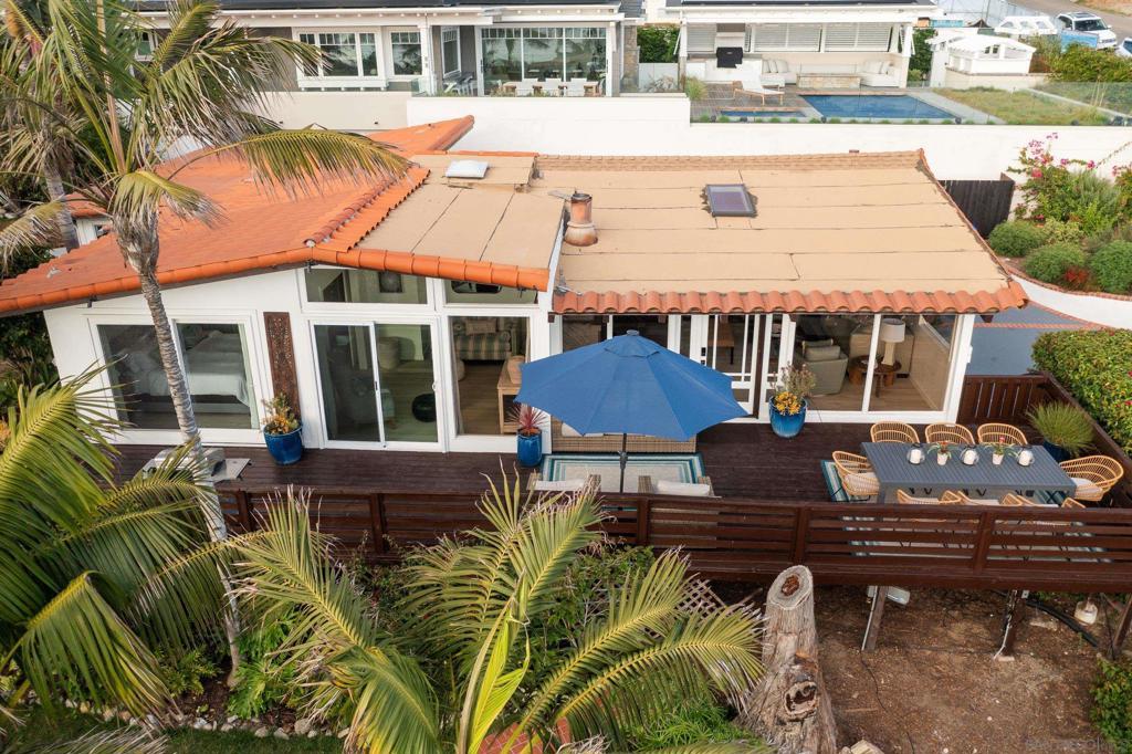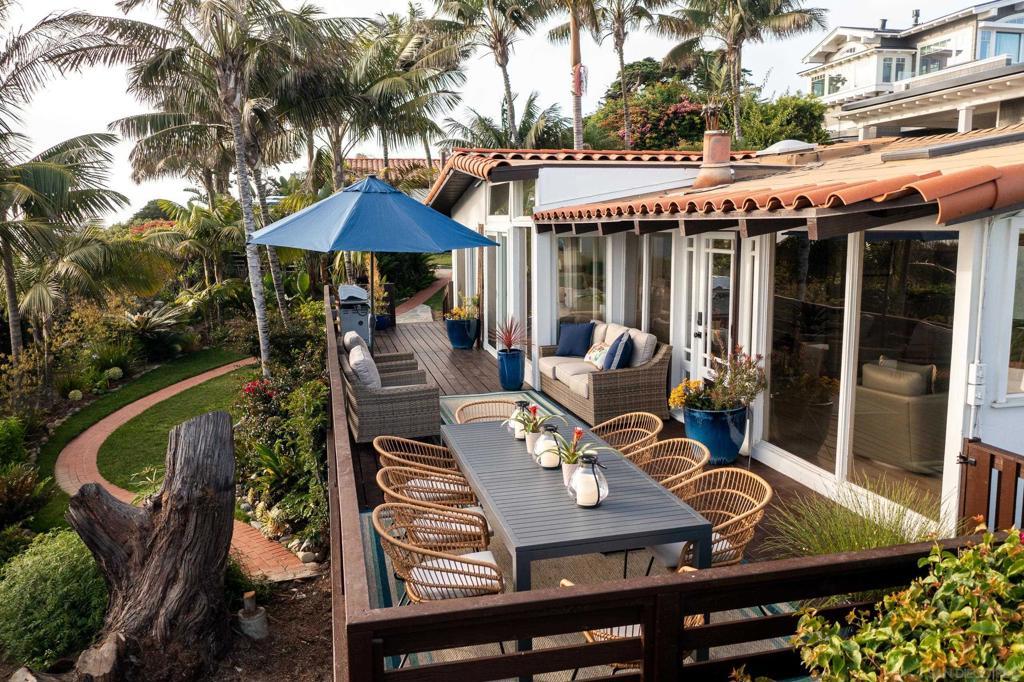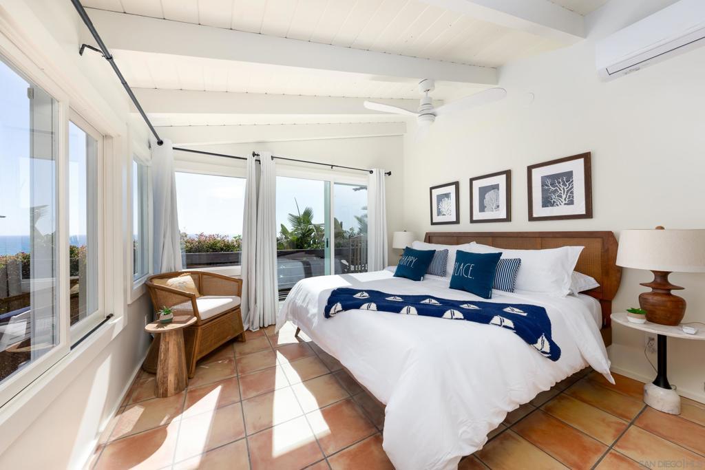 Welcome to our stunning hacienda home perched atop a bluff in Del Mar, CA! This unique property comprises three distinct residences, each offering its own blend of comfort and charm. Upon entering the primary house, you'll be enveloped in a warm and inviting ambiance. The living area boasts ample seating and showcases large windows that frame the mesmerizing ocean vistas. Whether you're relaxing on the comfortable sofas or gathering around the fireplace on cooler evenings, the living space is designed for both comfort and awe-inspiring views. This home features two spacious bedrooms furnished with King beds and each with its own dedicated lounge area and en suite bathroom. These lounge areas are perfect for unwinding and enjoying some personal space, while the en suite bathrooms provide convenience and privacy. The fully equipped kitchen is a haven for culinary enthusiasts, featuring modern appliances, a central island, and generous counter space. Whether you're preparing a quick snack or a gourmet meal, you'll find everything you need right at your fingertips. The elegant dining area offers seating for all guests, creating a perfect setting for enjoying your culinary creations. Adjacent to the primary house on the north side of the property, you'll find another two-bedroom house with a shared bathroom, offering comfortable accommodations and two King beds for family members or friends. (continued in supplement) Also, nestled on the property, there is a full studio furnished with a Queen bed and fully stocked kitchen, providing a cozy and private retreat for those seeking a more intimate setting All three residences enjoy the captivating backdrop of panoramic ocean views, just a short stroll from the beach. This spacious retreat, with a total of 5 bedrooms and 4 bathrooms, is well-suited for larger families or groups of friends seeking a memorable getaway. Each of the 5 bedrooms has been meticulously designed with your comfort in mind and furnished with luxury bed and bath linens. The decor throughout the entire property harmonizes with the hacienda style, fostering an atmosphere of tranquility and relaxation. The outdoor space is a true highlight of this property. Step outside onto the expansive patio, where you'll discover multiple seating areas ideal for soaking up the sun, enjoying al fresco dining, or simply reveling in the incredible ocean views. For barbecue enthusiasts, there's a grill available to enhance your outdoor dining experience. Del Mar's beautiful beaches are within easy reach, allowing you to take leisurely strolls along the shoreline, build sandcastles, or simply bask in the sun. Explore the charming town of Del Mar with its vibrant shops, restaurants, and art galleries, or venture further afield to discover the attractions of the greater San Diego area.