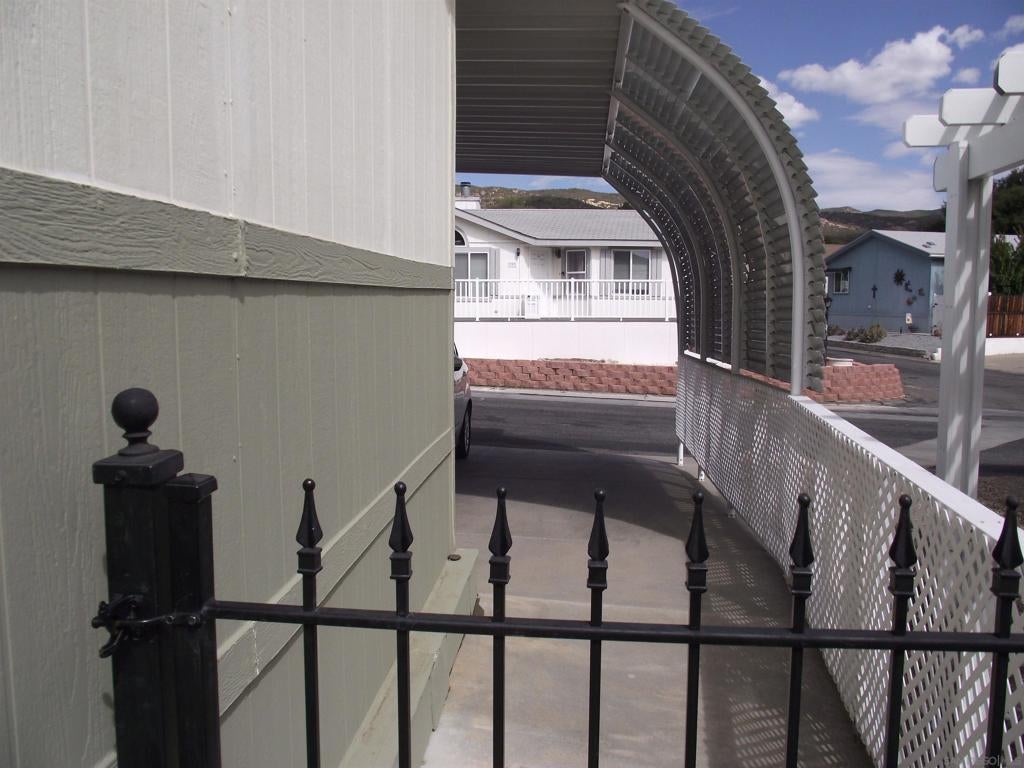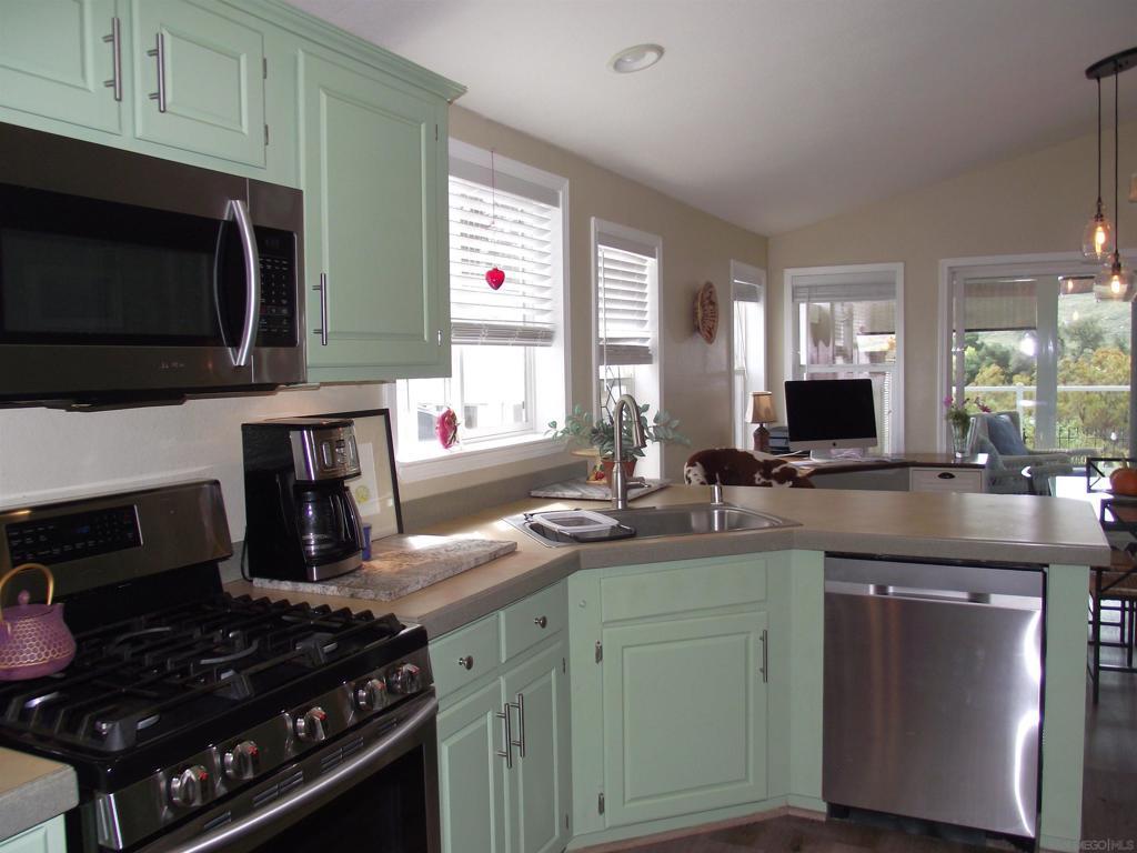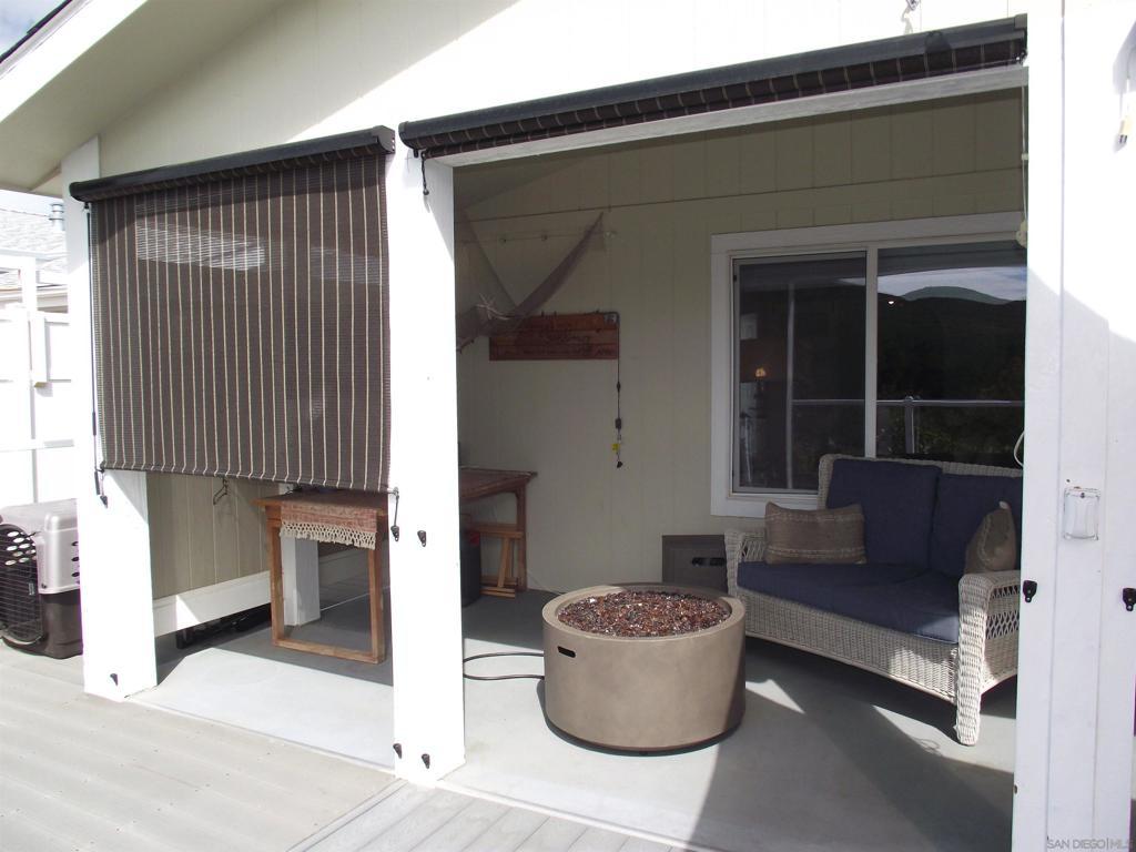 LOVELY HOME, UNIQUE FEATURES, ENJOYABLE VISTA...in the AFFORDABLE & LAND OWNED 55+ active community of Stone Ridge, in the beautiful back-country of San Diego County. The spacious outdoor living space looks down on a wild, natural landscape, and features partially covered, expansive decking with sun shades, glass railing, flagstone patio, a plumbed greenhouse, and creative garden space. The interior's open floor plan shares light throughout Kitchen, Dining, and Living spaces, and features wonderful upgrades. Upgrades include a freshly & cheerfully painted Kitchen, newer appliances, luxury vinyl plank flooring, barn door opening to the Den, gated rod-iron fencing, 2-car wide carport + privacy panels along side of driveway, and a whole-house Generac generator. Creature comforts galore...gas fireplace, ceiling fans, double-glazed windows, storage alcove in Hall, spacious wardrobes, En-Suite with soaking tub, separate shower, and linen storage. Also water filtration, a private office space with a/c in garage, a ramp to front door, & on top of it all...fruit trees! Enjoy community Clubhouse, pool, spa, and fishing lake. An easy 30-mile drive, to Temecula for shopping, restaurants, medical offices & hospital. SAY YES! And schedule a visit NOW!