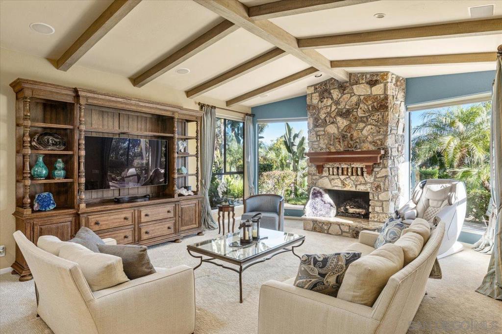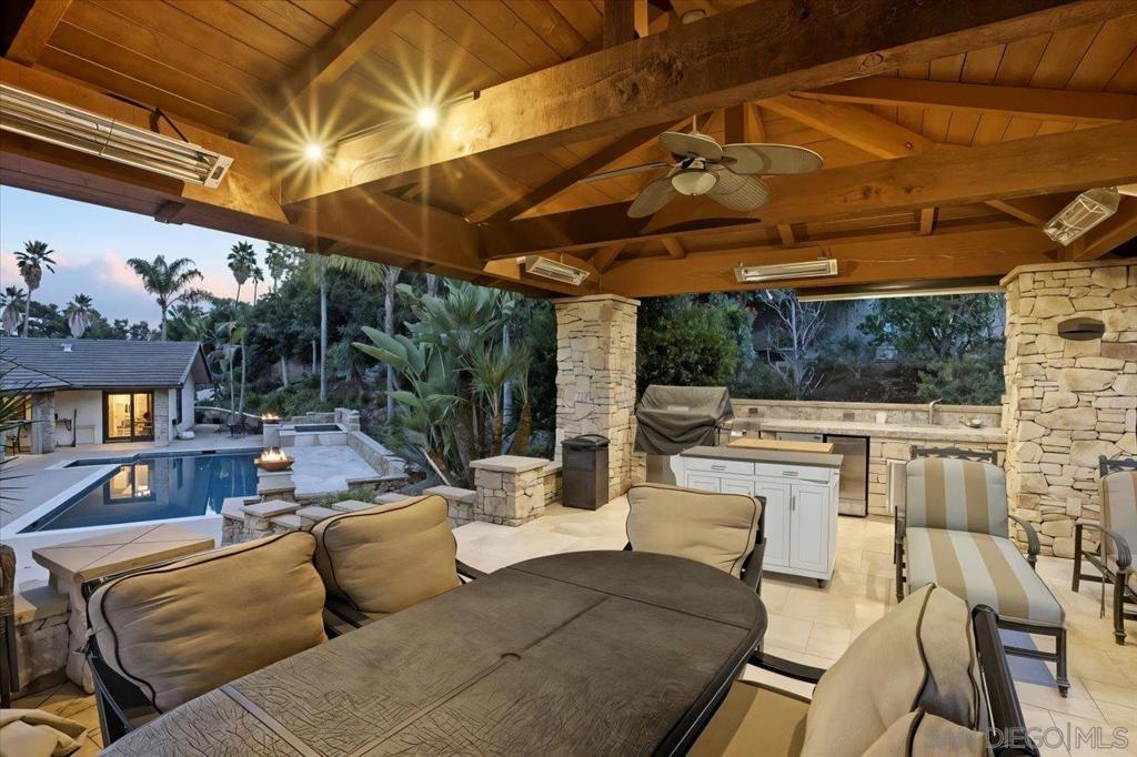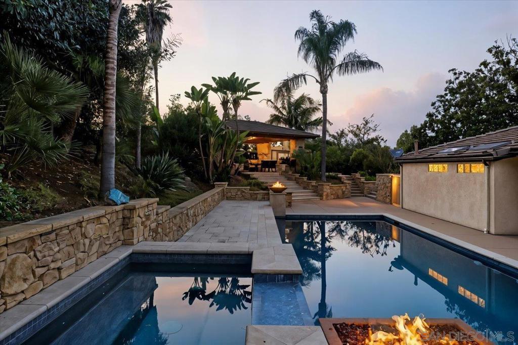 Welcome to a sanctuary of sophistication in West Escondido. This gated estate blends timeless design with modern luxury, offering a lifestyle of serenity, beauty, and effortless entertaining. From the moment you arrive, the circular driveway and lush gardens set a gracious tone. Beveled glass doors open to a sunlit interior where vaulted ceilings and travertine floors lead to a living room anchored by a dramatic stone fireplace and panoramic views of nature. Designed for gatherings, and fun... See Supplement A circular drive leads to a stunning entry framed by lush landscaping and beveled glass doors. Inside, vaulted ceilings, travertine floors, and a dramatic stone fireplace define the living room. The formal dining room opens to the pool via folding glass doors and features custom built-ins. The kitchen includes a butcher block island, Miele coffee station, breakfast nook, pantry, and pass-through window to the patio. Adjacent is a spacious laundry room with ample cabinetry. The home offers 5 bedrooms, including a luxurious owner’s suite with walk-in closet, spa-like bath, and an attached office with built-ins. Outdoor amenities include a 38’ lap pool, raised spa, fire-and-ice features, private cabana, putting green with sand trap, and a 23x19 ft gazebo with granite counters, BBQ, heaters, fans, and TV. Fruit trees, rose garden, scenic walkway, and night lighting complete the resort-style grounds. Epoxy-floored garage with LED lighting and storage. A rare opportunity for refined living. The kitchen is both warm and functional, with a butcher block island, Miele coffee station, breakfast nook, and pass-through window to the patio. A spacious laundry room adds everyday ease. The owner’s suite is a retreat unto itself, with a spa-inspired bath, walk-in closet, and an adjoining office with granite counters and built-ins. Three additional bedrooms offer comfort and privacy. Outside, the grounds unfold like a private resort: lap pool, raised spa, fire-and-ice features, putting green, cabana, and a fully equipped gazebo with scenic walkway. Fruit trees, a rose garden, and curated lighting complete the ambiance. This is more than a home—it’s a destination.