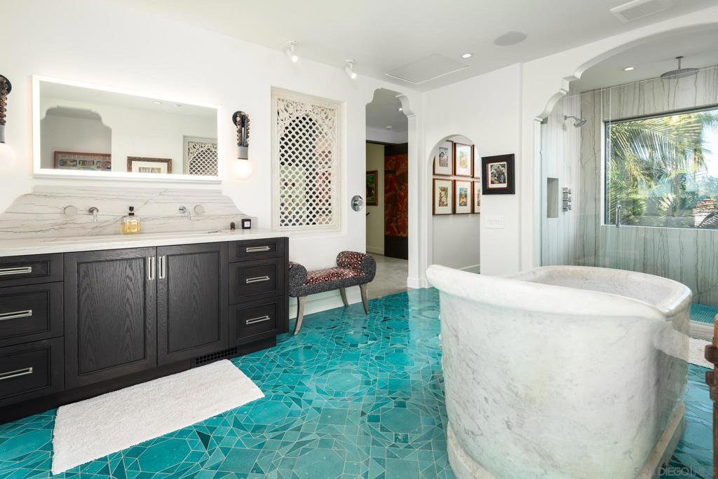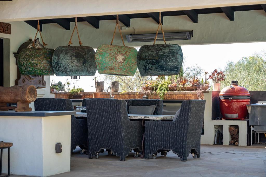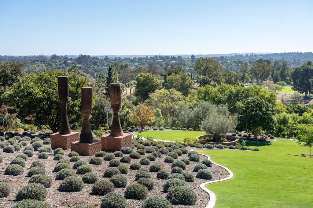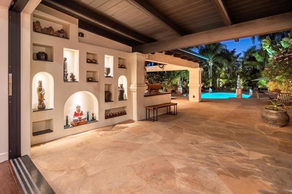 Location, style, attention to detail and masterful construction find harmony within this recently renovated/updated Santa Barbara style Rancho Santa Fe Covenant estate showcasing spectacular views. Ideally situated, on one of the highest points and desirable streets in the exclusive Covenant in Rancho Santa Fe on 3.21 beautiful, private, gated and fenced acres, with unlimited panoramic South-Western views with an peek of the Pacific ocean and stunning sunsets in addition to mountain and back country views from the rear of the residence. The gracious home exudes casual elegance and provides the ultimate venue for indoor/outdoor living and entertaining. The approximately 8,161 square foot residence encompasses five well-appointed bedrooms suites (including the expansive guest suite) stylishly appointed powder room, formal living/music room with French doors, dining room with fireplace, large windows and French doors with a view deck, theatre/viewing room with black lacquered walls, and a expansive library/office/party room with an entertaining bar, antique fireplace and wall fountain with a wall of disappearing doors leading the private backyard with koi pond, fruit orchards, specimen trees and a lounging area. The great room with 1,500 bottle chilled wine cellar, fireplace, abundance of windows with informal dining and a wall of custom storage and shelves, opens seamlessly to the outdoors. The great room flows into the kitchen - designed for a persnickety chef, is complete with top-of-the line commercial appliances, marble countertops and an abundance of storage. The sublime Location, style, attention to detail and masterful construction find harmony within this recently renovated/updated Santa Barbara style Rancho Santa Fe Covenant estate showcasing spectacular views. Ideally situated, on one of the highest points and desirable streets in the exclusive Covenant in Rancho Santa Fe on 3.21 beautiful, private, gated and fenced acres, with unlimited panoramic South-Western views with an peek of the Pacific ocean and stunning sunsets in addition to mountain and back country views from the rear of the residence. The gracious home exudes casual elegance and provides the ultimate venue for indoor/outdoor living and entertaining. The approximately 8,161 square foot residence encompasses five well-appointed bedrooms suites (including the expansive guest suite) stylishly appointed powder room, formal living/music room with French doors, dining room with fireplace, large windows and French doors with a view deck, theatre/viewing room with black lacquered walls, and a expansive library/office/party room with an entertaining bar, antique fireplace and wall fountain with a wall of disappearing doors leading the private backyard with koi pond, fruit orchards, specimen trees and a lounging area. The great room with 1,500 bottle chilled wine cellar, fireplace, abundance of windows with informal dining and a wall of custom storage and shelves, opens seamlessly to the outdoors. The great room flows into the kitchen - designed for a persnickety chef, is complete with top-of-the line commercial appliances, marble countertops and an abundance of storage. The sublime primary retreat is warm and generous, with private veranda showcasing the exquisite views, perfect for morning coffee, afternoon sun, or an evening cocktail. There is an oversized dressing room complete with custom built-ins and a spa-like bath with lavish finishes. Upscale designer finishes throughout the residence include furniture-grade cabinetry, custom tile and stone, handmade hardware and light fixtures, hardwood floors, antique fireplaces, French doors, walls of disappearing doors, and oversized windows with abundant storage. The attached guest suite includes a full kitchen, bedroom with bath and a sitting/bonus room. Enjoy the outdoors with a private salt water pool, spa with tropical forest with rare plant specimens, outdoor heated living room with summer kitchen and storage...