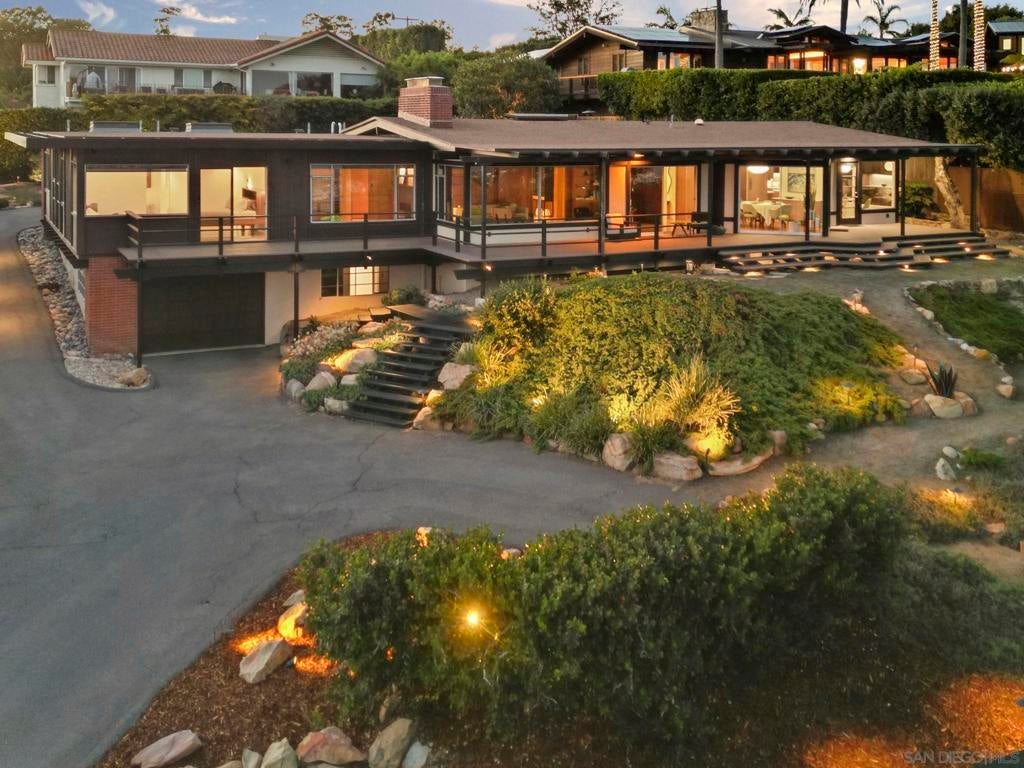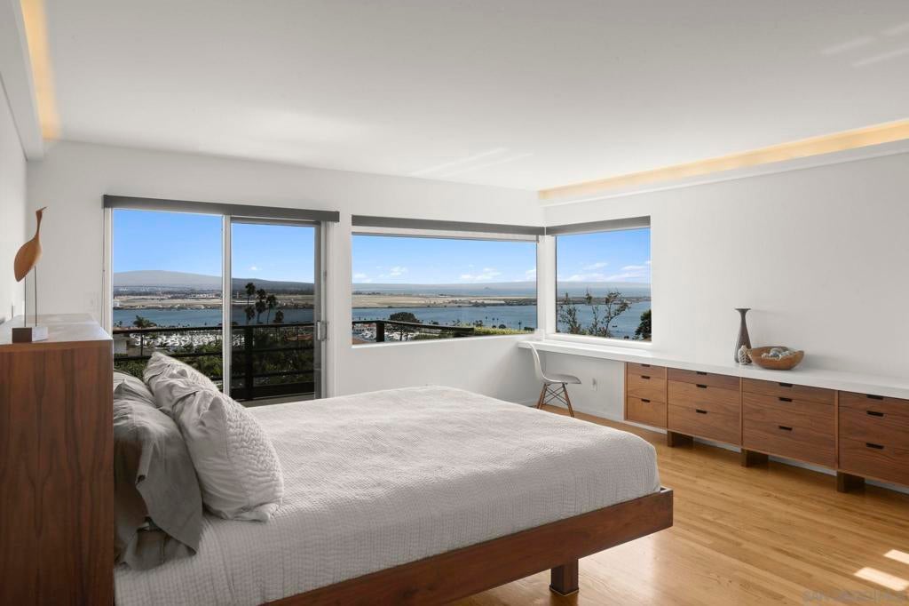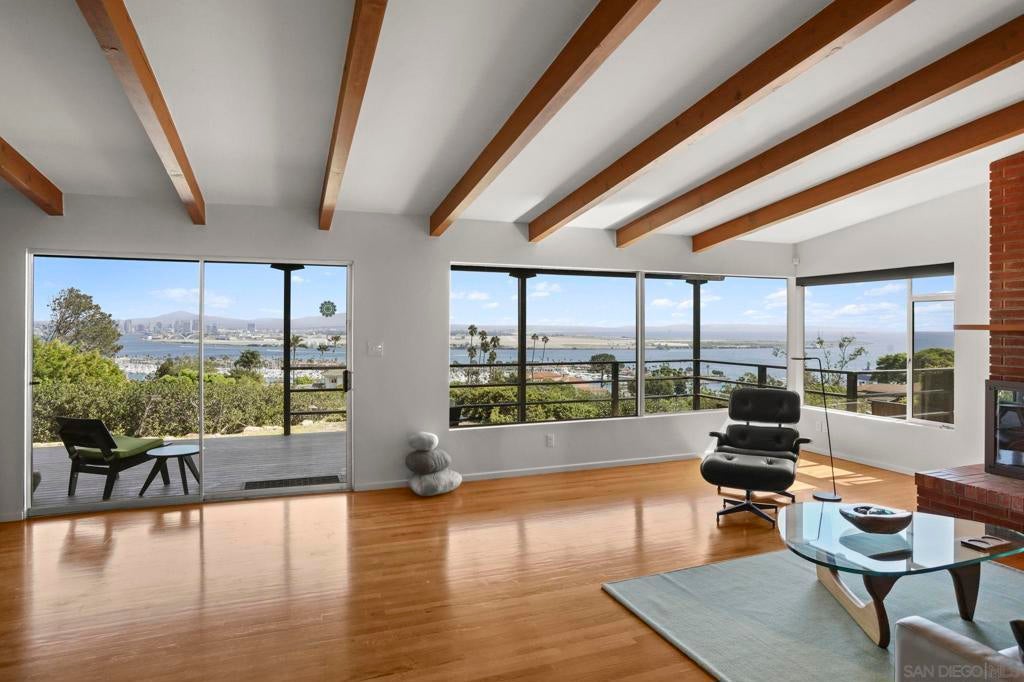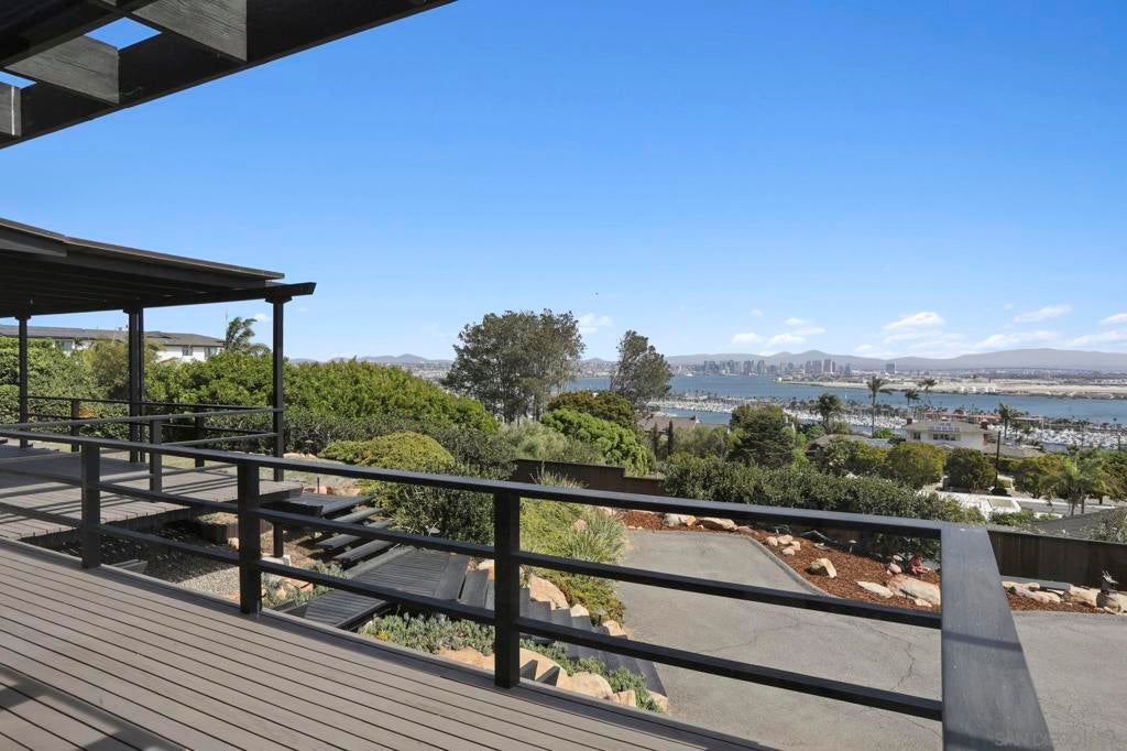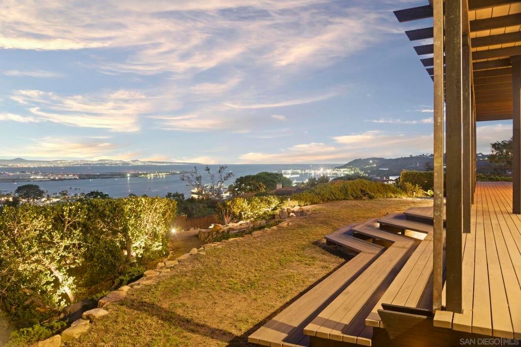 Exquisite mid-century modern home with hypnotic views across the bay and Pacific to Downtown, Coronado and the Channel Islands, is a masterwork of timeless style married with contemporary living. Gracefully sited at the pinnacle of a premier Point Loma cul-de-sac, the home sublimely integrates with its natural surroundings and maximizes the beauty and movement of the extraordinary views. Expansive windows and sliding glass doors, a blend of textures and shape, and perfected elements of Japanese and zen design inform the home’s authentic reimagining. Interior spaces maximize natural light and encourage both socialization and quiet respite. Exterior decks offer both extended entertaining space or privacy. This meticulous and thoughtfully-created home is a testament to the highest standard of mid-century modern design.