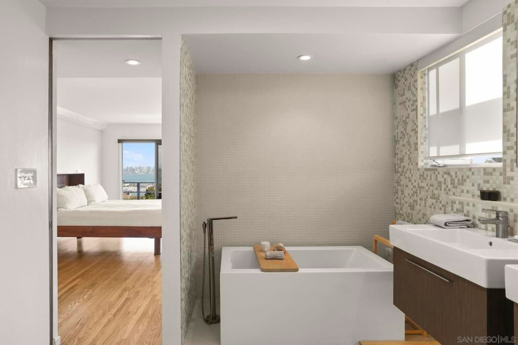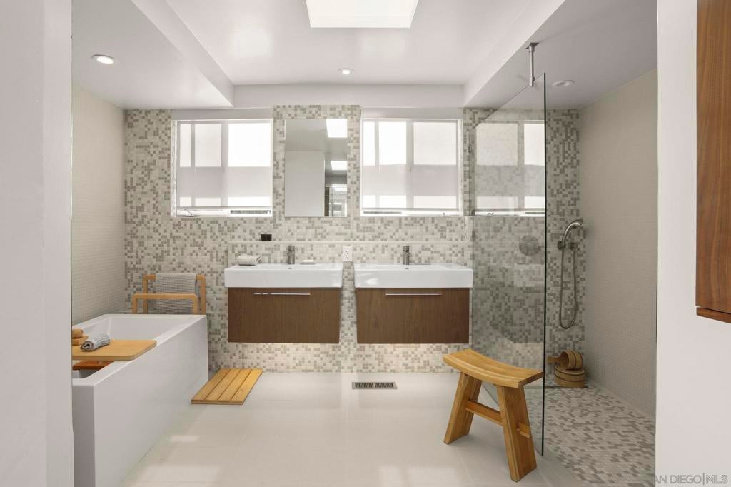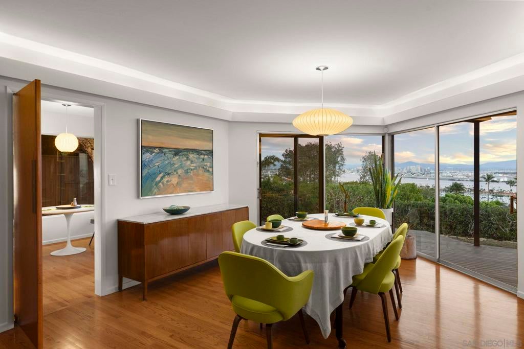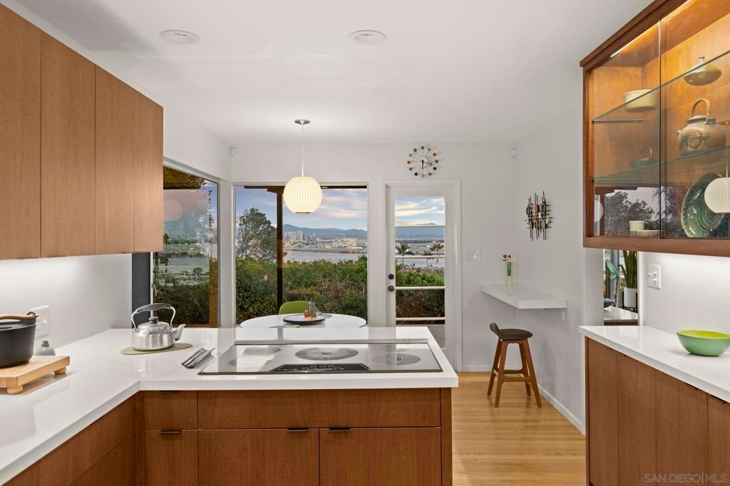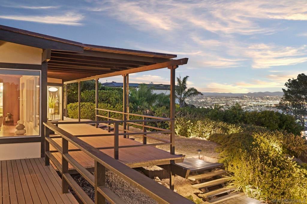 Exquisite mid-century modern home with hypnotic views across the bay and Pacific to Downtown, Coronado and the Channel Islands, is a masterwork of timeless style married with contemporary living. Gracefully sited at the pinnacle of a premier Point Loma cul-de-sac, the home sublimely integrates with its natural surroundings and maximizes the beauty and movement of the extraordinary views. Expansive windows and sliding glass doors, a blend of textures and shape, and perfected elements of Japanese and zen design inform the home’s authentic reimagining. Interior spaces maximize natural light and encourage both socialization and quiet respite. Exterior decks offer both extended entertaining space or privacy. This meticulous and thoughtfully-created home is a testament to the highest standard of mid-century modern design.