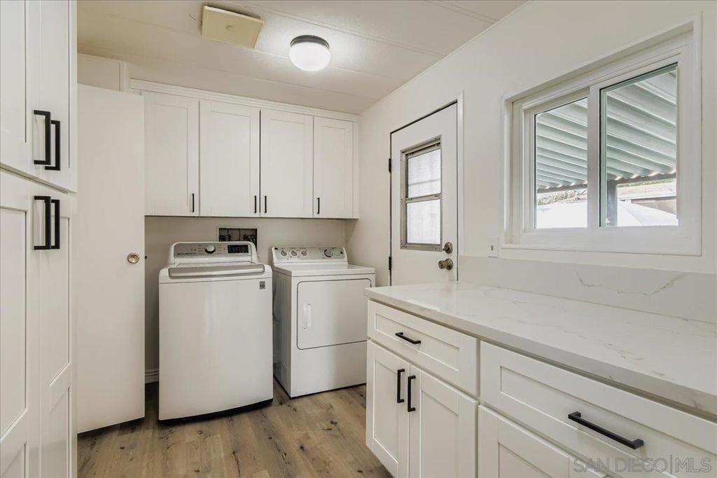 This beautifully remodeled 2-bed, 2-bath home with a large BONUS ROOM sits on one of the largest lots in this desirable 55+ park—just steps from a park exclusive 9-HOLE GOLF COURSE! A true RARE find. Inside, enjoy stylish upgrades throughout: newer HVAC, roof, dual-pane windows, modern lighting, and fixtures. The custom kitchen features shaker-style soft-close cabinets, quartz counters, a large island, stainless steel appliances, and a farmhouse sink. Luxury vinyl plank flooring flows throughout, complemented by fresh paint and updated bathrooms. The laundry room includes upgraded washer/dryer units and built-in cabinetry. Outside, relax or entertain on the oversized Trex deck, surrounded by new vinyl fencing, low-maintenance landscaping, and a spacious yard—perfect for grandkids, gardening, or outdoor gatherings. A large shed adds extra storage. Located in a vibrant 55+ community offering a newly updated clubhouse, pool, spa, RV parking, an on-site restaurant, and social events galore. This home isn’t just move-in ready—it’s lifestyle ready!