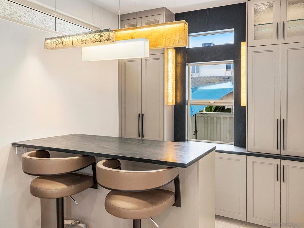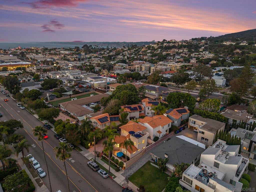 Perched above the Village with sweeping ocean views, this fully reimagined residence blends contemporary design with effortless coastal living. Over $500,000 in thoughtful updates within the past three years create a home that is both refined and refreshingly low-maintenance. Completely detached and entirely private, the home offers a rare combination of space, style, and walkability to the world class amenities La Jolla is renowned for. Enjoy nightly sunset views over the Pacific from both the primary suite or the expansive rooftop terrace. Inside, custom details abound—porcelain slab fireplace, coved ceilings, furniture-grade cabinetry, and curated lighting that is truly a work of art. The kitchen and dining area flow seamlessly with the living space, enhanced by a built-in banquette and a sleek fully custom bar with abundant storage. With 4 bedrooms, 3 full baths, and a powder room, the layout adapts beautifully to suit a variety of lifestyles. The oversized garage provides generous storage, while two outdoor patios offer distinct experiences: a walled front courtyard with a private, elevated feel, and a rear terrace ideal for alfresco dining or lounging. The crown jewel is the oversized rooftop terrace—surprisingly private, endlessly inviting, and perfectly positioned for daily ocean breezes and unforgettable sunsets. Whether as a full-time retreat or an effortless lock-and-go coastal escape, this home delivers the rare blend of quality, views, and in-town location that defines the best of La Jolla living.