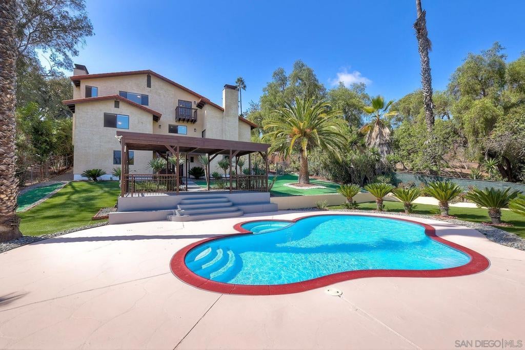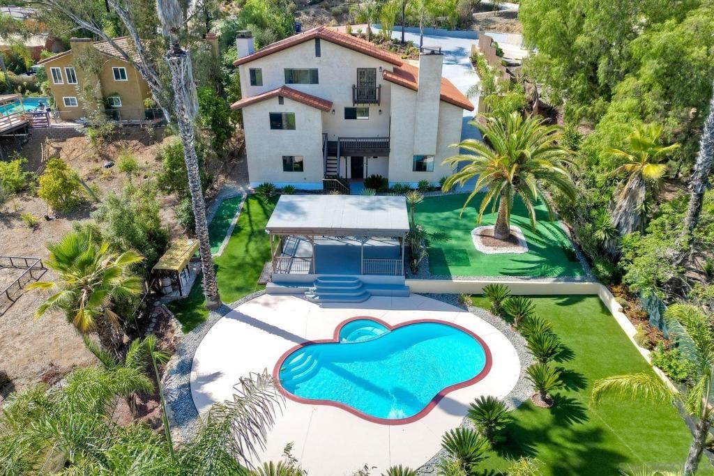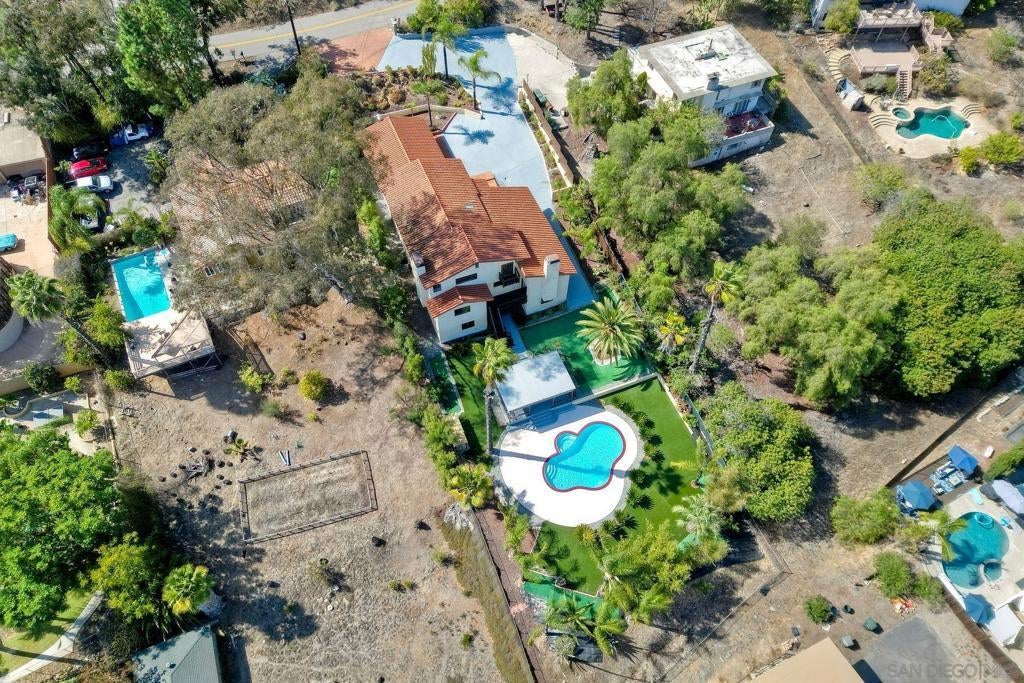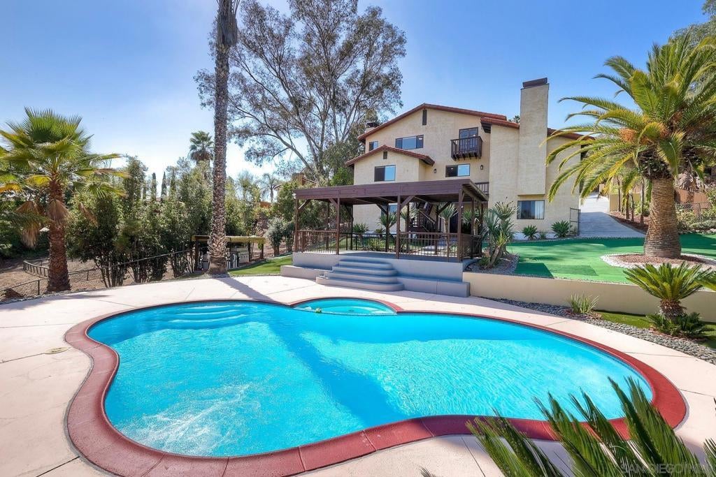 Discover your Mount Helix sanctuary. This elegant Mediterranean estate sits on nearly half an acre, and offers 6 bedrooms, 3 baths, with approximately 4,100 sq. ft. of beautifully designed living space. The open layout showcases soaring ceilings, hardwood floors, and expansive windows framing sweeping views. Enjoy a spacious living and dining area with a cozy fireplace and direct access to the backyard, plus a large family room with its own fireplace — perfect for gatherings. The gourmet kitchen anchors the home with granite countertops, stainless steel appliances, and a grand island ideal for entertaining. Downstairs features two bedrooms and a large bath, while upstairs offers the primary suite with a private balcony overlooking the pool and backyard, along with three additional bedrooms boasting beautiful views from every window. Step outside to resort-style living with a sparkling pool, spa, shaded gazebo, and low-maintenance landscaping. A 3-car garage and extended driveway provide ample parking for an RV, boat, or trailer. The 1,000 sq. ft. basement is ready to customize as an office, gym, or guest suite. Tucked away in the tranquility of Mount Helix yet just minutes from La Mesa’s dining, schools, and freeway access. This home offers the perfect balance of privacy and convenience.