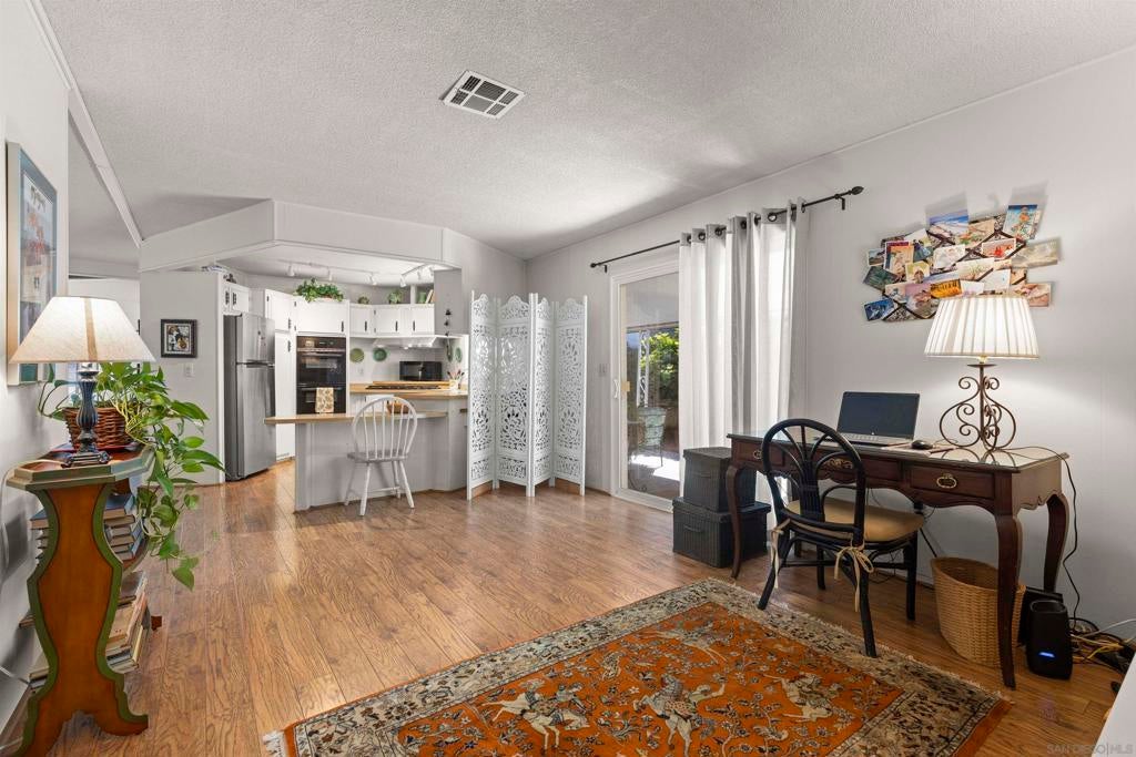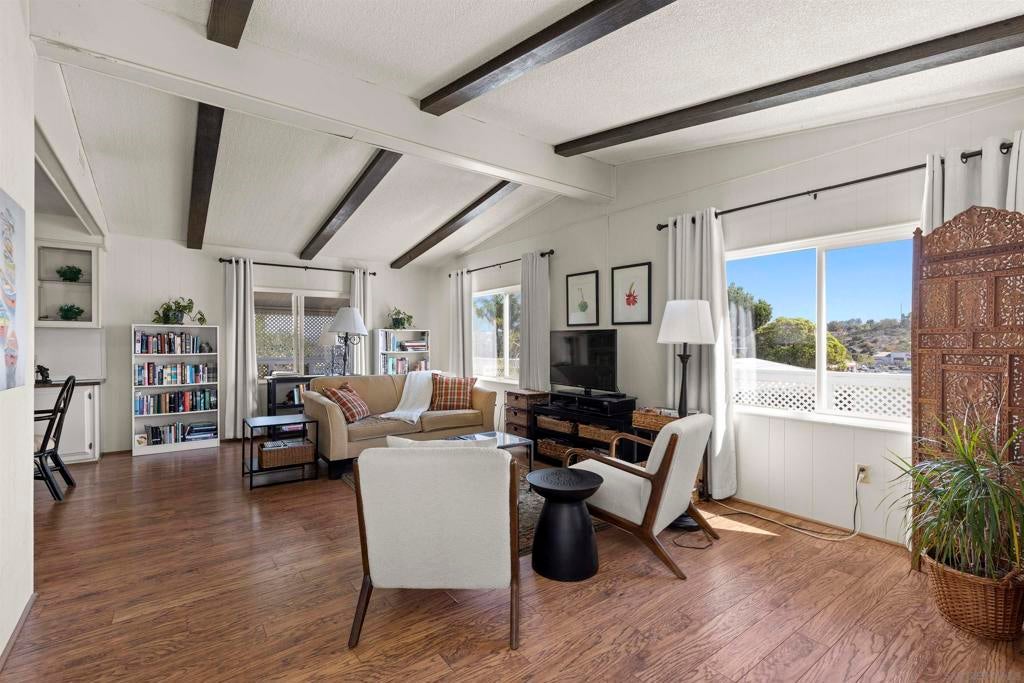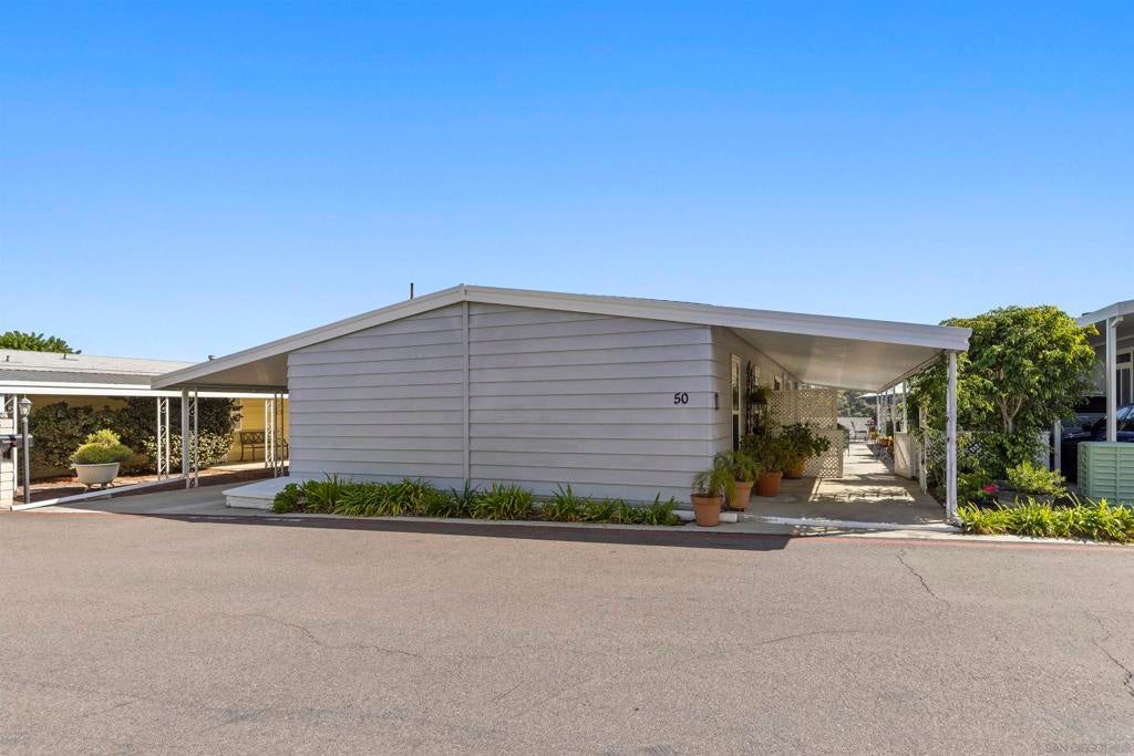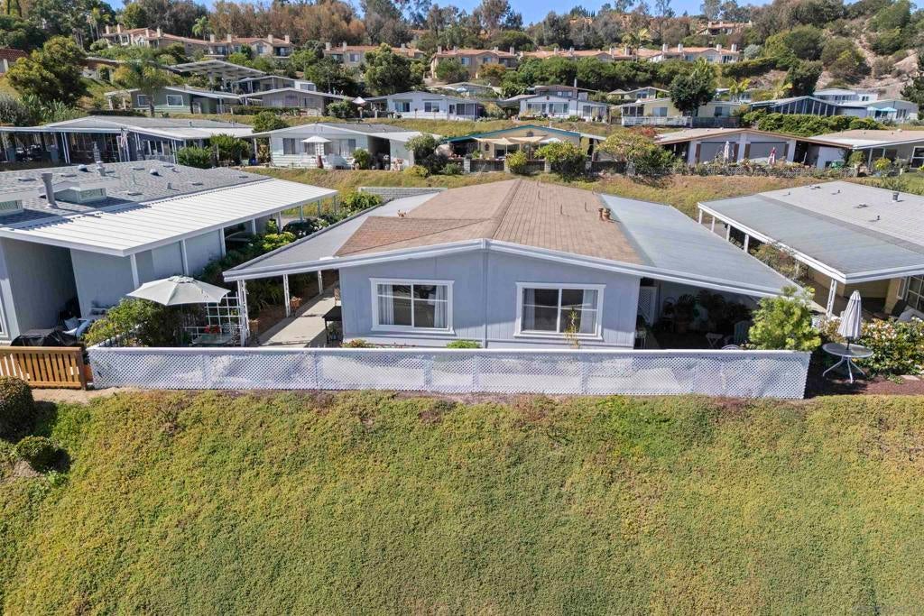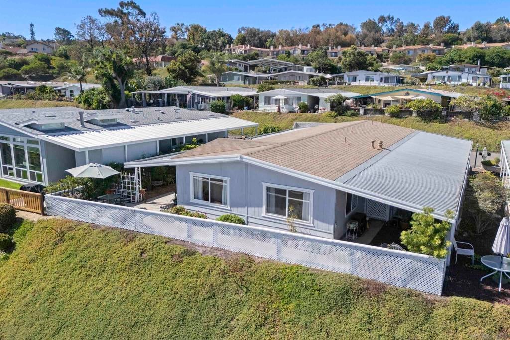 Opportunity to live quintessential coastal lifestyle at a fraction of the cost. Green Valley Mobile Estates is a very low density 55/45 park with only seventy-eight Ground-Set (pitted) homes sitting on sweeping panoramic view hillside parcels providing privacy from neighbors and the feel of conventional housing. Rarely available this tastefully and extensively remodeled home with flowing open concept floorpan offers very generous room sizes that also includes copper plumbing, dual pane windows, updated flooring throughout, newer kitchen appliances, cathedral ceilings, track lighting, an abundance of closet and storage space, ceiling fans and much more. Relax and enjoy some of the finest weather on the planet with your choice of two outdoor patio options and for those green thumbed gardeners plenty of mature plants onsite but still room remaining to ply the plow. Owners allowed two pets and can walk dogs inside the park. The common area includes pool, spa, putting green, library, billiards/darts room, full clubhouse that can rented out for parties or gatherings and a small weight/work-out room. All grocery stores, a myriad of shopping and restaurants options within five minutes, world class Encinitas Library and Encinitas Community and Senior Center all just five minutes away. And of course any number of beaches and surf spots just minutes away. These Ground-set homes are ideal for anyone using wheelchairs or disability equipment & in addition provide much larger land parcels & use of driveways. Space rent of $1,899 includes water & Spectrum full cable & internet package Opportunity to live quintessential coastal lifestyle at a fraction of the cost. Green Valley Mobile Estates is a low density 55/45 park with only seventy-eight Ground-set ( pitted) homes sitting on sweeping panoramic view hillside parcels providing privacy from neighbors and giving the feel of conventional housing. Rarely available this tastefully and extensively remodeled home with flowing open concept floorpan offers very generous room sizes as well as newer copper plumbing, dual pane windows, updated flooring throughout, newer kitchen appliances, cathedral ceilings, track lighting, an abundance of closet space, ceiling fans and much more. Relax and enjoy some of the finest weather on the planet with your choice of two outdoor patio options, surrounded by mature plants and landscaping but still room for those that wish to flex their green thumb. The common area includes heated pool, spa, putting green, library, billiards/dart, full clubhouse with kitchen that can be reserved for parties or gatherings and a small weight & work-out gym. Residents allowed two dogs and they can be walked in the park. All grocery stores, a myriad of shopping and restaurant choices within five minutes, world class Encinitas Library and Encinitas Community and Senior Centers just five minutes away. And of course any number of beaches and iconic surf spots also just minutes away. These Ground-set homes are ideal for anyone using wheelchairs or other disability equipment as virtually no steps required to enter the home. Space rent of $1,899 INCLUDES water and full Spectrum cable and internet package.
