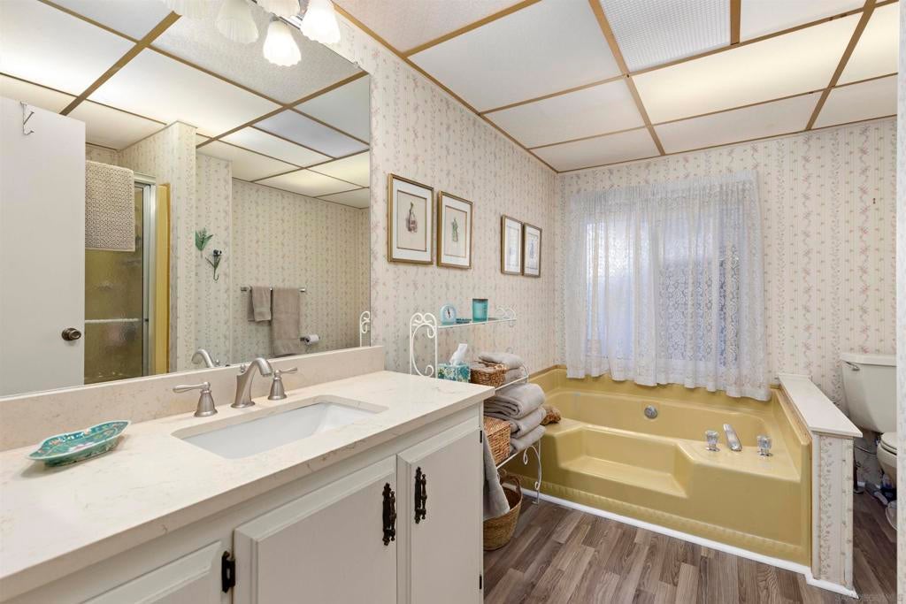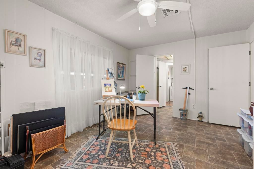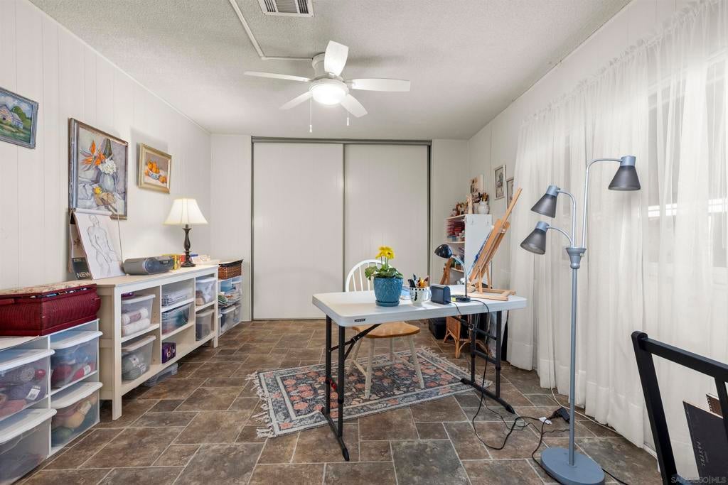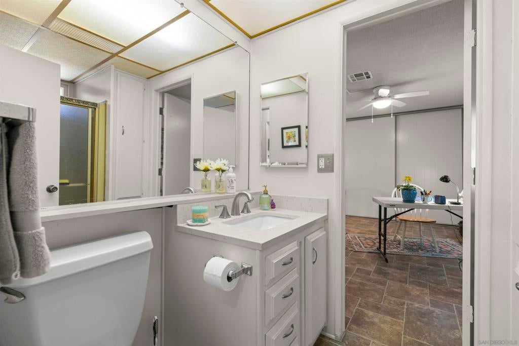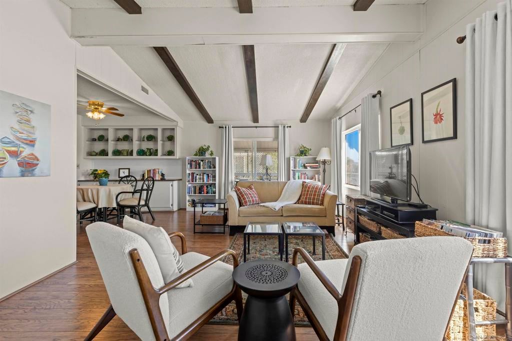 Opportunity to live quintessential coastal lifestyle at a fraction of the cost. Green Valley Mobile Estates is a very low density 55/45 park with only seventy-eight Ground-Set (pitted) homes sitting on sweeping panoramic view hillside parcels providing privacy from neighbors and the feel of conventional housing. Rarely available this tastefully and extensively remodeled home with flowing open concept floorpan offers very generous room sizes that also includes copper plumbing, dual pane windows, updated flooring throughout, newer kitchen appliances, cathedral ceilings, track lighting, an abundance of closet and storage space, ceiling fans and much more. Relax and enjoy some of the finest weather on the planet with your choice of two outdoor patio options and for those green thumbed gardeners plenty of mature plants onsite but still room remaining to ply the plow. Owners allowed two pets and can walk dogs inside the park. The common area includes pool, spa, putting green, library, billiards/darts room, full clubhouse that can rented out for parties or gatherings and a small weight/work-out room. All grocery stores, a myriad of shopping and restaurants options within five minutes, world class Encinitas Library and Encinitas Community and Senior Center all just five minutes away. And of course any number of beaches and surf spots just minutes away. These Ground-set homes are ideal for anyone using wheelchairs or disability equipment & in addition provide much larger land parcels & use of driveways. Space rent of $1,899 includes water & Spectrum full cable & internet package Opportunity to live quintessential coastal lifestyle at a fraction of the cost. Green Valley Mobile Estates is a low density 55/45 park with only seventy-eight Ground-set ( pitted) homes sitting on sweeping panoramic view hillside parcels providing privacy from neighbors and giving the feel of conventional housing. Rarely available this tastefully and extensively remodeled home with flowing open concept floorpan offers very generous room sizes as well as newer copper plumbing, dual pane windows, updated flooring throughout, newer kitchen appliances, cathedral ceilings, track lighting, an abundance of closet space, ceiling fans and much more. Relax and enjoy some of the finest weather on the planet with your choice of two outdoor patio options, surrounded by mature plants and landscaping but still room for those that wish to flex their green thumb. The common area includes heated pool, spa, putting green, library, billiards/dart, full clubhouse with kitchen that can be reserved for parties or gatherings and a small weight & work-out gym. Residents allowed two dogs and they can be walked in the park. All grocery stores, a myriad of shopping and restaurant choices within five minutes, world class Encinitas Library and Encinitas Community and Senior Centers just five minutes away. And of course any number of beaches and iconic surf spots also just minutes away. These Ground-set homes are ideal for anyone using wheelchairs or other disability equipment as virtually no steps required to enter the home. Space rent of $1,899 INCLUDES water and full Spectrum cable and internet package.