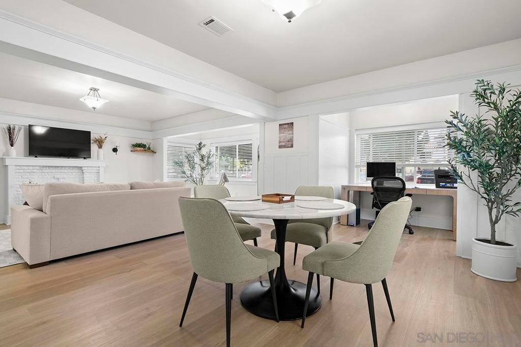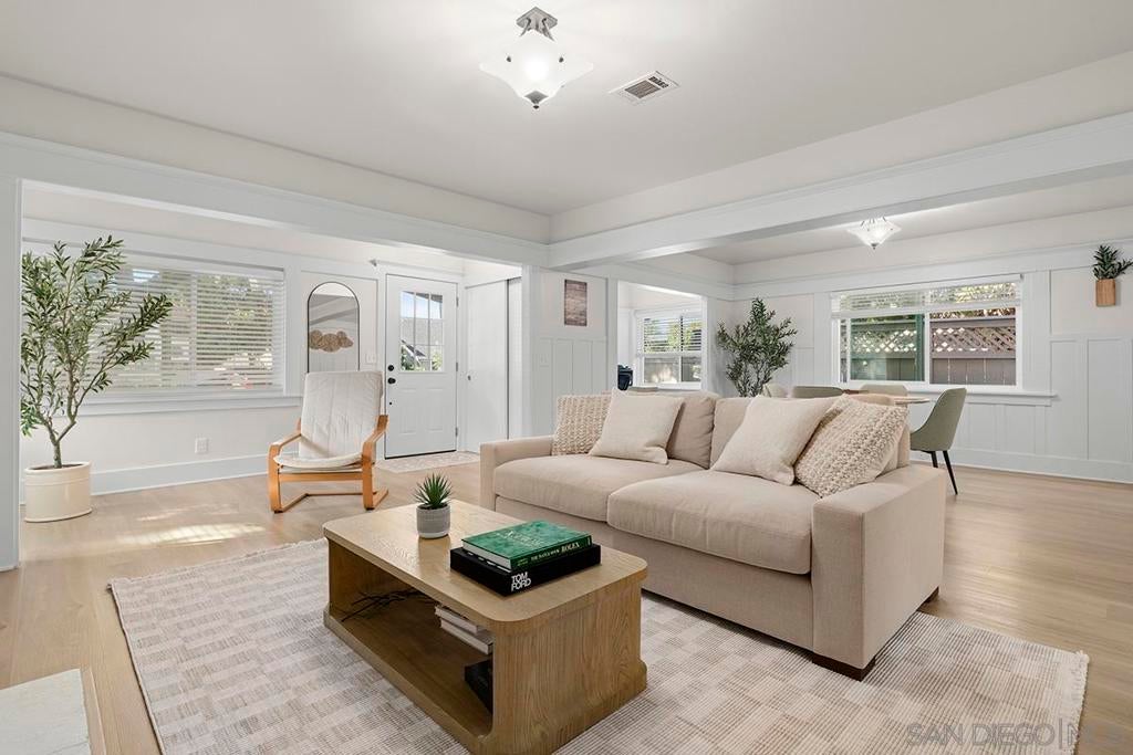 Tucked gracefully behind its storybook façade, this captivating Coronado residence captures the essence of refined coastal living with an inviting blend of warmth, style, and sophistication. Thoughtfully refreshed with a crisp new exterior and curated updates throughout, the home radiates an airy, light-filled ambiance that feels instantly relaxing. The open living area is centered around a classic fireplace and flows seamlessly into the dining and kitchen spaces—perfect for both intimate evenings and casual entertaining. Modern comforts including a new roof, dual-pane windows, upgraded A/C system, and sleek new appliances complement timeless architectural character and a soft, coastal-inspired palette. Upstairs, a versatile bonus room offers space to unwind or create, while the detached studio invites endless possibilities—an inspiring home office, tranquil guest suite, or artful retreat. The expansive 5,825-square-foot lot enhances the sense of privacy and potential, with a detached one-car garage and a backyard ideal for entertaining, gardening, or envisioning a future addition or ADU. Perfectly nestled in the heart of Coronado Village, this home places you just moments from charming cafés, boutique shops, lush parks, and the island’s iconic beaches—where every stroll feels like a seaside escape and life moves at the gentle pace of the ocean breeze.