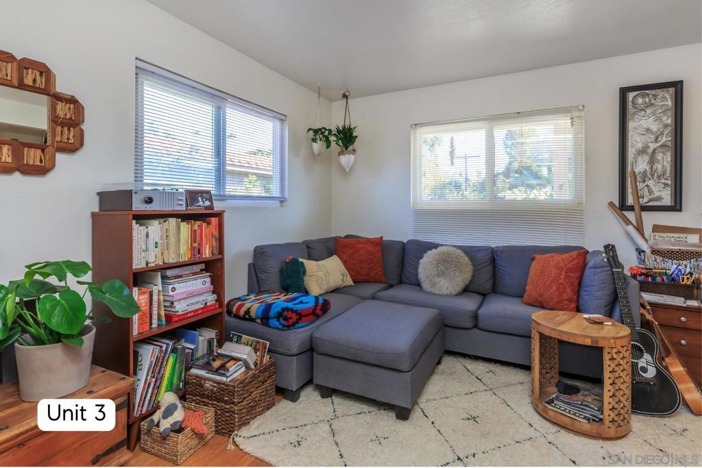 Once in a lifetime opportunity in prime Encinitas Highlands location: five unit opportunity! FIFTH UNIT is single family HOME~charming, spacious 3 br, 2 ba, approx. 1350 sq ft, with hardwood floors, remodeled kitchen, family room, dedicated laundry facilities & dedicated fenced front & rear yards. The 4 one bedroom units are located in separate building on rear portion of large 9818 sq ft lot. Four 1 br. units share large fenced yard & share coin-operated laundry facilities & storage areas. A truly rare opportunity to purchase an income property of this caliber within easy walk to the vibrant village of downtown Encinitas with shops, restaurants, library, Enc. train station, Moonlight Beach, Swamis Beach park, & more! All units updated with renovated kitchens + one unit has deck & one unit has a patio. Roofs recently updated &/or replaced. Easy beach cruiser ride to Cardiff with Cardiff Market & Leucadia with farmer's market, restaurants & more. Short walk from property to La Paloma Theater, Encinitas Library & 3 beaches. Property is well-maintained reflecting present owner's pride of ownership & excellent management during their ownership. Dedicated parking spaces for all units, plus additional parking in driveway. Over-sized 9818 sq ft lot presents an incredible value in itself, in addition to the first class location: both of which ensure continued consistent+maximized income potential. All units consistently rented with no vacancies. See attachments in MLS for seller's P & L , rent roll. income statement, more info on units from City of Enc. & state housing info. . Ideal opportunity for owner occupant in main house, enjoying excellent rental income from the four 1 br. units! Present rent on 3 br. home is below market due to tenants being in residency for long time. Home lease and 3 other leases on 1 br units are presently month to month. Prospects to review all attachments in MLS: including rent roll, income statement/P&L, and information regarding rentals in City of Encinitas, prior to writing offer. This property represents an amazing once in a lifetime opportunity= an excellent real estate investment is all about location, location, location, and timing...and this property offers both. Units & home consistently rented. One partner in LLC is licensed to sell real estate in Calif. Two water meters, one gas and electric meter. Owner pro-rates utility costs over the five units which are paid to seller monthly with actual rents. Pro-rated utility reimbursements are included in the rents reflected in MLS, and on rent roll attachment. Amazing opportunity to live west of I-5 within walking distance to the village of Encinitas, 3 world class beaches, Enc Library, Enc. train station, La Paloma Theater, dog parks and more! Great value for owner occupied buyer to live in front house and enjoy the excellent rental income that the four units in the rear of the property provide! Or achieve additional excellent rental income from main house as well. RENTS: Front home rent is below market due to long term tenant in occupancy, which is now on a month to month tenancy: present rent: $4800 + monthly pro-rated utility reimbursement to owner of $230=$5030 mo. total income on this unit). All rents reflected in MLS include tenants additional pro-rated utility reimbursement to seller each month: Each charming, light & bright 1 br unit pays pro-rated $115 a month for their utilities in addition to their actual rents. Same pro-rated utility reimbursements are included in the rental income numbers in MLS & on P&L attachment ) Seller disclosure: brick fireplace in main house is not being used at this time. Seller has estimate for recommended maintenance~available upon request.