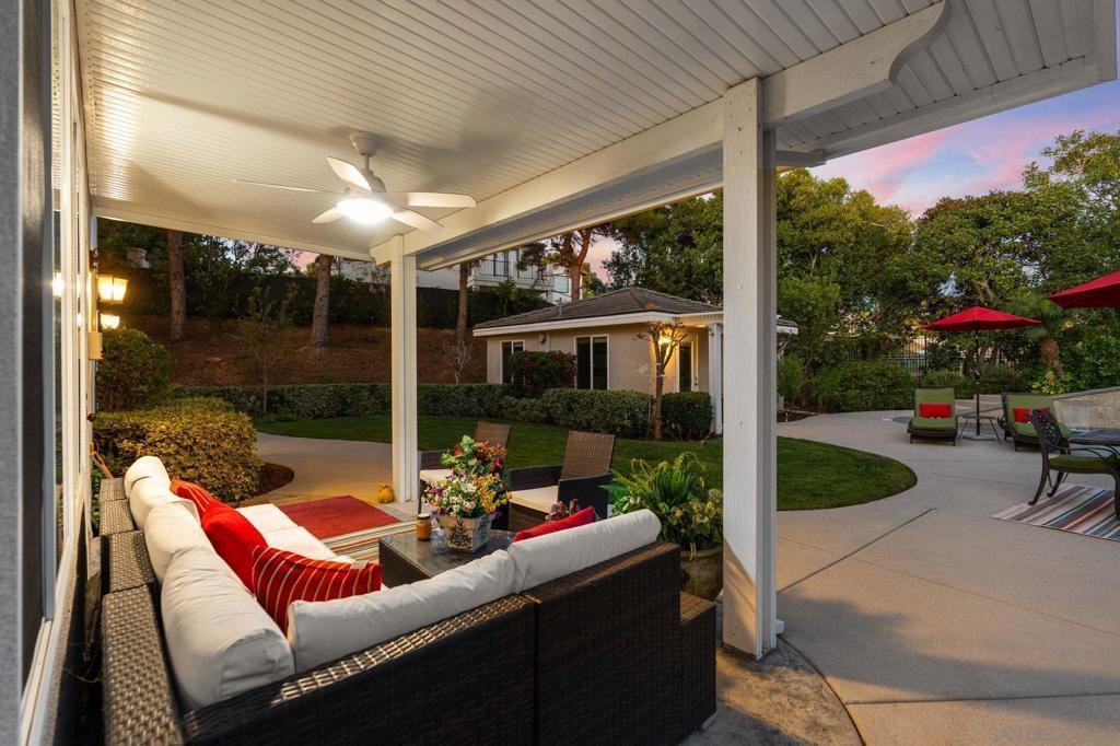 Welcome to 17117 Tallow Tree Lane — an exquisite estate nestled within the exclusive, gated enclave of Savenna, one of San Diego’s most coveted communities in the prestigious 92127 zip code. This engaging residence spans over 5500 square feet and includes a fully permitted and detached guest house/casita, offering a total of six bedrooms and six-and-a-half bathrooms—each space thoughtfully presented to balance comfort, privacy, and comfortable living. Perfectly positioned on a private cul-de-sac and set on a half-acre of manicured grounds, this property embodies Southern California luxury. The resort-style backyard features a sparkling pool and spa, built-in barbecue pavilion, and multiple outdoor lounging and dining areas—creating an ideal setting for both intimate gatherings and grand entertaining. Inside, refined updates and timeless elegance harmonize. The gourmet chef’s kitchen showcases Viking appliances, white cabinetry, quartz countertops, double ovens, and designer fixtures, along with a convenient bar area with wine refrigerator and sink for effortless hosting. Throughout the home, new carpet, refreshed wood flooring, and an abundance of natural light accentuate its warm and welcoming ambiance. A first-floor ensuite bedroom offers comfort for guests, complemented by a dedicated office, hobby area, and music room—spaces perfectly suited for creativity, productivity, or peaceful retreat. Upstairs, the main suite is a true sanctuary, featuring a fireplace, dual walk-in closets, a personal fitness room, and a newly remodeled spa-inspired bathroom. Three additional bedrooms—each with its own ensuite bath—ensure privacy and ease for family or guests. Additional living spaces include a tranquil library, an elegant formal dining room, and a spacious living room designed for gathering and connection. Modern convenience and sustainability are seamlessly integrated, with Tesla solar panels, two 75-gallon water heaters, a whole-home water softener, and an epoxy-coated four-car garage. The guest house extends the estate’s versatility with 441 square feet of private living space, a full bath, cooktop, and wood and tile flooring—perfect for extended family, visitors, or potential income use. Impeccably maintained and thoughtfully designed, this home offers a lifestyle defined by serenity, versatility, and style.