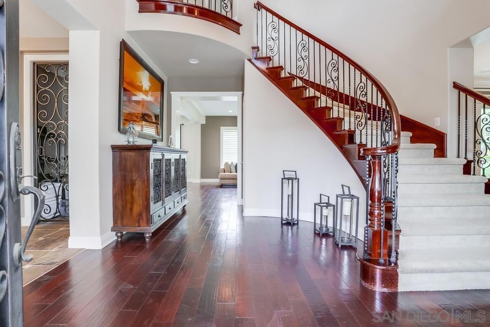 Welcome to 6977 Corte Langosta — a stunning 5-bedroom, 5.5-bath, two-story home tucked away on a quiet cul-de-sac in the desirable La Costa Ridge community of Carlsbad. Inside, enjoy soaring ceilings, beautiful custom ironwork inside and out, and spacious living and dining areas filled with natural light. The open kitchen features stainless steel appliances, a large island, and custom built-in cabinets for plenty of storage. The generous primary suite offers a walk-in closet and spa-like bath, while each bedroom includes its own en-suite for privacy and comfort. Step outside to your entertainer’s dream backyard with a sparkling pool, hot tub, built-in BBQ, and custom backyard pergola. Enjoy the convenience of owned solar, a whole-house water softener, a custom garage door, a paver driveway, and a 2-car garage with built-in cabinetry and a bonus game room. All of this just minutes from top-rated schools, golf, shopping, and Carlsbad’s beautiful beaches. Owned solar, water softener, paver driveway, custom garage door, custom built in cabinets, custom backyard pergola, custom iron work inside and out.