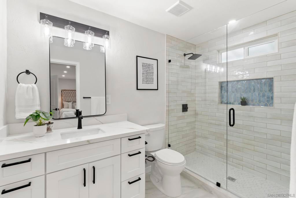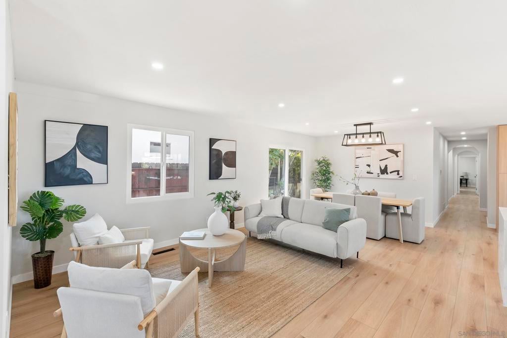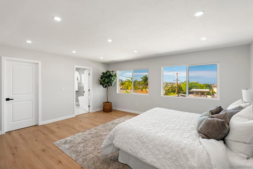 Ocean air drifts up from the coves and marinas, carrying the easy rhythm of Point Loma to a modern home shaped for gathering, relaxing, and watching the water change with the light. Fully remodeled with crisp contemporary finishes, this six bedroom, five bath residence frames ocean views and everyday convenience near placing beaches, yacht clubs, and Liberty Station moments from the door. Clean lines and generous openings create a calm backdrop for art and life. A flexible bonus room adapts to work, play, or media, while the lower level offers meaningful potential for an ADU with its own sense of privacy and independence, ideal for multigenerational living or future income strategy. Sun warms the front patio for morning coffee and neighborly connection. The back patio invites larger evenings, a natural extension of indoor living where twilight lingers and conversations stretch. Inside, the modern kitchen is a social core designed for effortless hosting. Open living and dining areas catch coastal light throughout the day, setting a serene tone for daily routines and weekend entertaining. Bedrooms provide quiet refuge, with ample space for guests and evolving needs. Here, the Point Loma lifestyle is not a concept, it is a cadence. Sunrise hikes along Sunset Cliffs, quick strolls to Shelter Island, fresh catch from local markets, and airport-close travel without sacrificing the calm of the peninsula. A polished coastal home with ocean views and rare flexibility, ready for the next chapter of San Diego living.