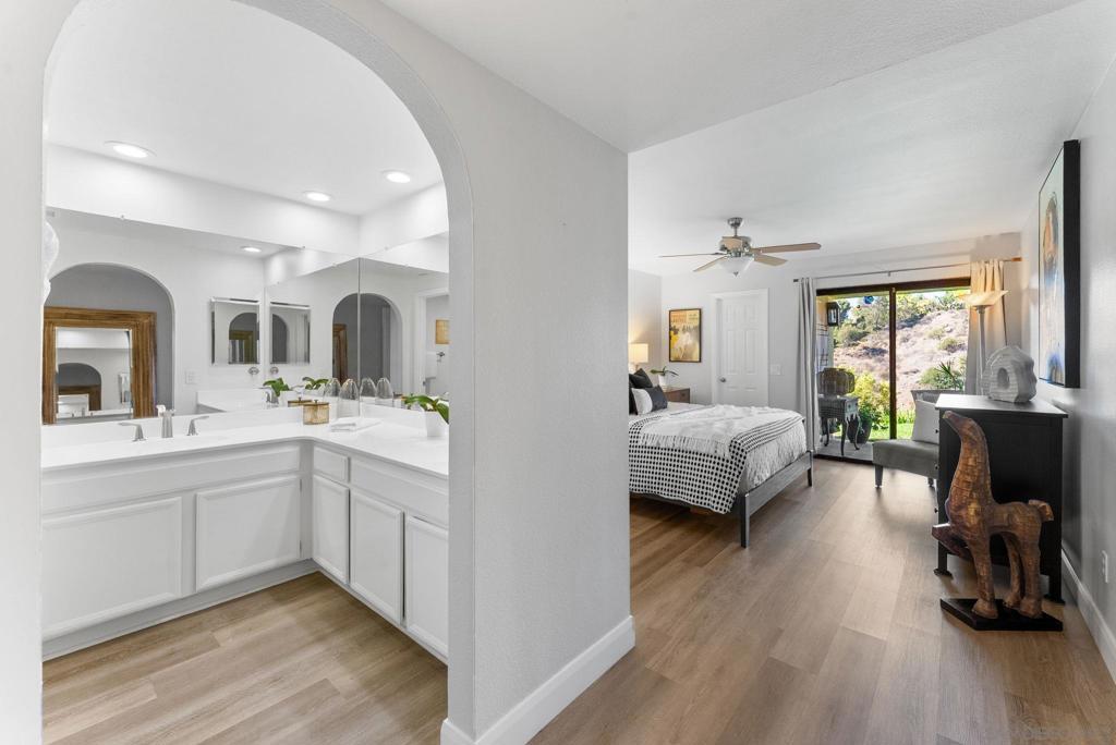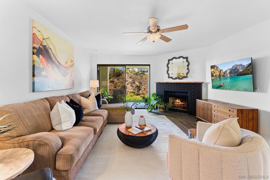 This beautifully updated ground-floor end unit in the heart of La Costa offers 3 bedrooms, 2 bathrooms, and 1,556 sq ft of light-filled living space with breathtaking canyon and partial ocean views. Perfectly positioned on the edge of Box Canyon within the Sea Point Tennis Club, this location is truly hard to beat. Thoughtfully remodeled by the current owner, the home features an open-concept floor plan with seamless indoor-outdoor flow and private patio access from both the living room and primary suite. The refreshed kitchen shines with sleek cabinetry, natural quartzite countertops, updated stainless steel appliances, and modern pendant lighting. Throughout the home, durable luxury vinyl plank flooring complements the coastal aesthetic, while the living room fireplace adds warmth and charm. The primary suite is a relaxing retreat with dual walk-in closets, an updated bathroom, and tranquil canyon views. Additional highlights include new HVAC system with air conditioning, ample storage, in-unit laundry, a detached garage with storage, and an extra assigned parking space. Enjoy resort-style amenities at Sea Point Tennis Club — including pools, tennis courts, and beautifully maintained grounds — all just minutes from top-rated Encinitas schools, shopping, dining, golf, hiking trails, and Carlsbad’s pristine beaches. This home blends comfort, style, and the best of coastal living in one of North County’s most desirable communities.