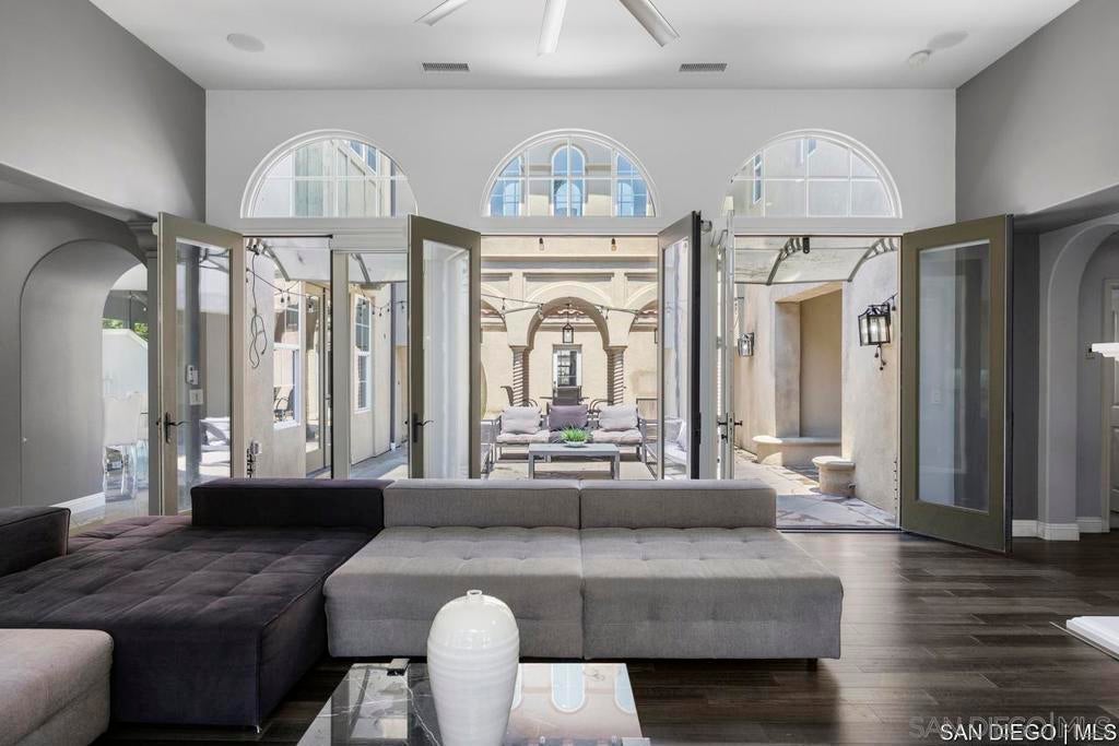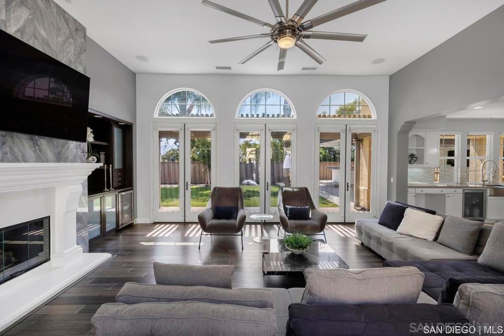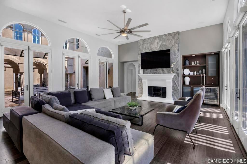 Nestled in a quiet cul-de-sac, this stunning hacienda-style residence features 5 bedrooms, 4.5 baths, a den, expansive loft, private office, wine cellar, and formal living & dining rooms. With its spacious design and timeless charm, the perfect blend of elegance and comfort. The recently renovated gourmet kitchen with oversized island, double ovens, and built-in refrigerator flows seamlessly into the expansive family room, you'll love the connection between these two spaces, perfect for gatherings and everyday living. From here, enjoy double access to the backyard and central courtyard with fireplace, one of the four fireplaces. The backyard is designed for outdoor living with a covered patio, built-in BBQ, and plenty of space to create lasting memories with family and friends. The layout includes a first-floor bedroom with 1.5 baths, while upstairs offers 3 additional bedrooms (one with balcony), a versatile den, and a luxurious master retreat with fireplace and private balcony showcasing breathtaking lake and mountain views. This Eastlake gem offers everything space, sophistication, outdoor living, and views you never want to leave!
