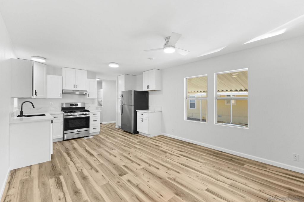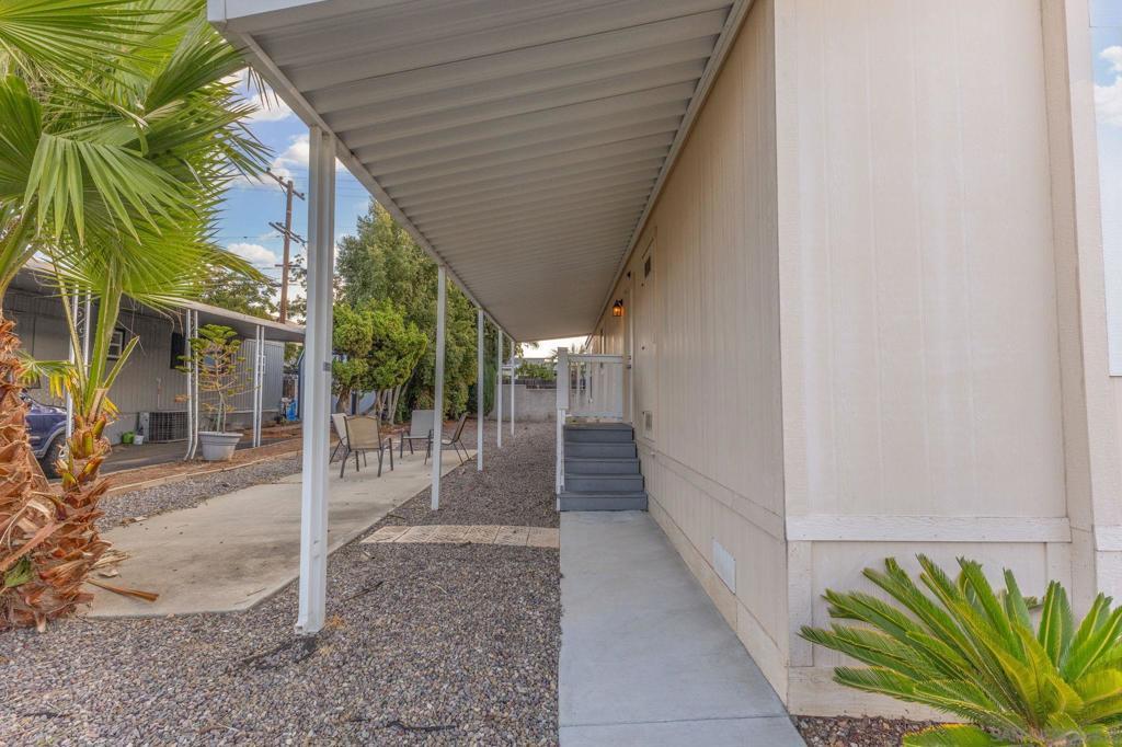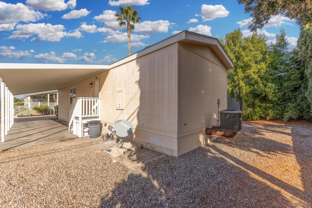 Discover comfort, style, and practicality in this beautifully upgraded 2-bedroom, 2-bath home located in the desirable Rancho Mesa gated 55+ community. Every detail has been thoughtfully designed to offer easy living with modern convenience. Step inside an inviting open-concept layout featuring rich vinyl flooring, central air and heat, ceiling fans with lighting, and a bright kitchen complete with soft-close cabinetry, quartz countertops, and a full suite of stainless-steel appliances, including refrigerator, stove, and dishwasher. Enjoy the convenience of an in-home washer and dryer, while both bathrooms showcase modern finishes and updated fixtures. The spacious primary suite features dual closets and a private en-suite bath, creating a relaxing retreat. Outside, unwind under your covered porch with two dedicated parking spaces and the added privacy of no rear neighbors. The low-maintenance spacious lot offers plenty of room to garden, relax, or entertain, without the upkeep. Residents enjoy resort-style amenities, including a sparkling pool and spa, fitness center, clubhouse with social activities, BBQ area, and beautifully maintained common grounds. With a monthly space rent of $1,650 (includes water, trash, and sewer), this home combines value, comfort, and community living all in one.