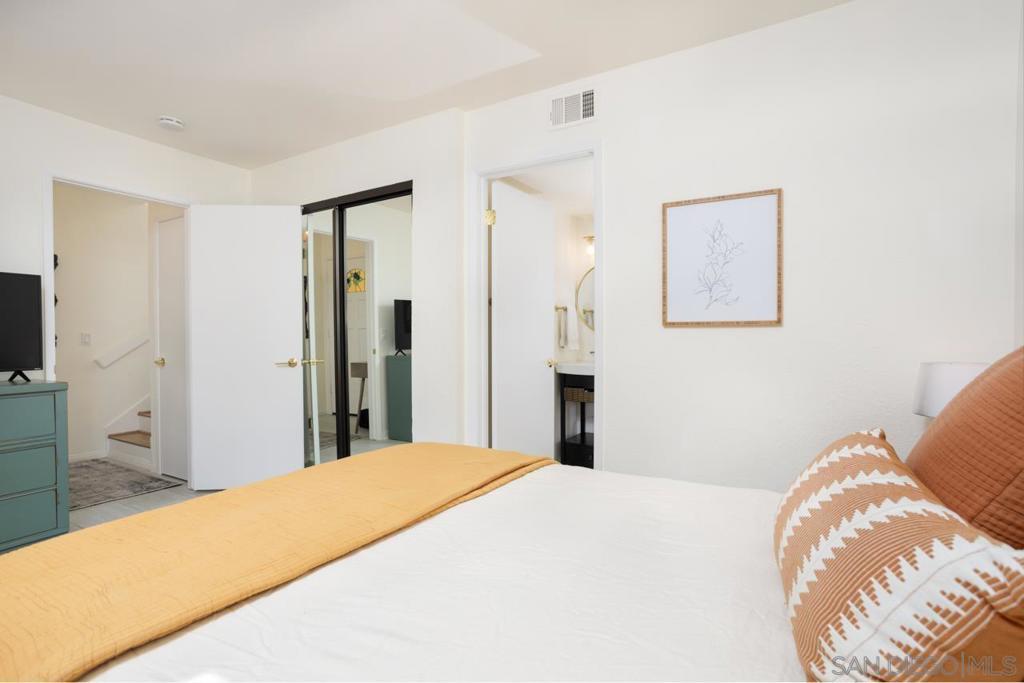 Discover this stunning 2 bed, 2.5 bath end-unit townhome in the highly sought-after La Costa community. Step inside to soaring vaulted ceilings, natural oak hardwood floors, updated lighting, and custom finishes throughout. The open-concept main level features a bright and airy living room with arched windows and French doors that flow seamlessly into the dining area and kitchen—perfect for entertaining or relaxing. Enjoy three private patios for indoor-outdoor living at its finest. The attached 2-car garage offers ample storage, finished epoxy flooring, and a Tesla charger. Ideally located near beautiful beaches, premier shopping, fine dining, golf, and top-rated schools—this La Costa gem truly has it all. This home offers the best of both worlds—it lives like a single-family residence while providing the convenience and amenities of a boutique community. The open-concept kitchen features stainless steel appliances, an eat-at bar, and hardwood floors, flowing seamlessly to a private patio ideal for barbecues and entertaining. Upstairs, the primary suite includes mirrored closets and dual vanity, and a large soaker tub for ultimate relaxation. The entry-level bedroom with an en-suite bath offers an ideal setup for guests, a home office, or a private retreat.