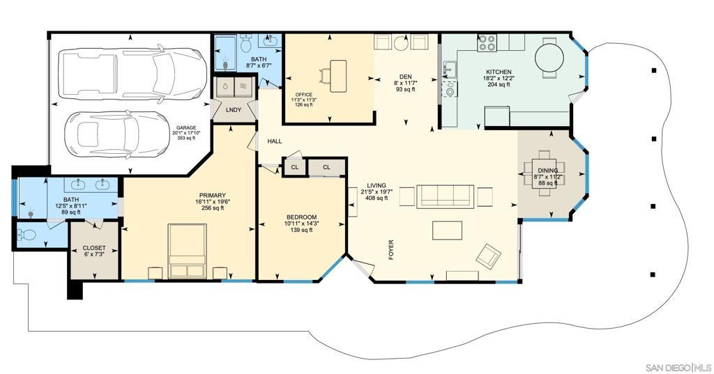 Dwell West Homes proudly unveils this stunningly renovated St. Tropez model, celebrated for its open-concept design and effortless sophistication. This home has been thoughtfully updated to blend timeless style with modern comfort. Step into a bright kitchen featuring a eat-in nook with coffee bar, crisp white shaker cabinetry, sleek quartz countertops, designer tile backsplash, custom lighting, and premium stainless steel appliances — the perfect backdrop for everyday living or entertaining. The kitchen opens to a private office or den that is bathed in natural light from the dual skylights. The primary suite is a serene retreat, showcasing a spacious walk-in closet and a spa-inspired bath with custom tile, a generous walk-in shower with bench seating, a private water closet, and a double vanity framed by elegant lighting. The secondary bathroom continues the thoughtful design, offering a shower, abundant storage, and elevated finishes. Step outside to your private backyard oasis, complete with pergola, low-maintenance planters, and mature hedges — ideal for relaxing, dining, or entertaining under the California sun. Experience the perfect balance of style, comfort, and easy living in a community designed for a vibrant, active lifestyle. The Ocean Hills Country Club is an active 55+ retirement/Resort style living community. It has an 18 hole executive golf course, Jr. Olympic, solar-heated, salt water swimming pool, tennis, pickleball, bocce, paddle ball, shuffleboard, croquet, dog park, a 2 1/4 mile walking path, and much more!