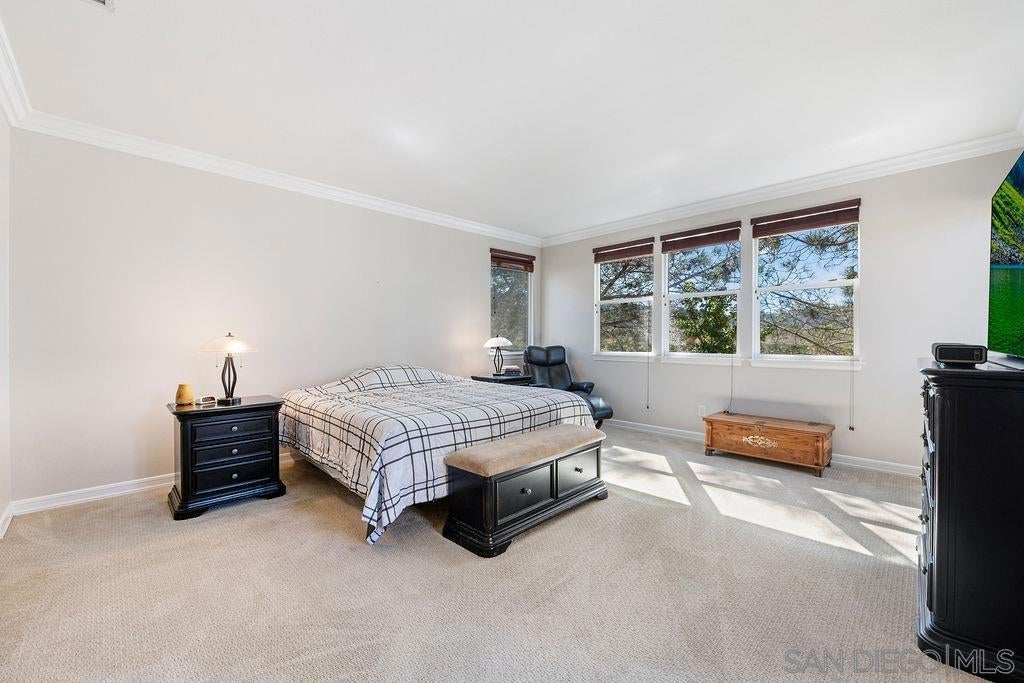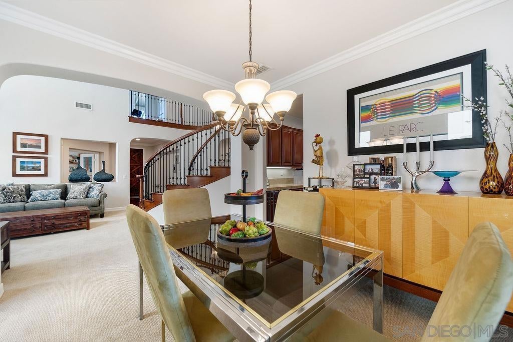 Welcome to 13732 Rosecroft Way located within the exclusive gated community of Stallions Crossing in Carmel Valley. This elegant residence blends warmth, functionality, and designer detail throughout. The downstairs bedroom has been transformed into a sophisticated home office, complete with custom built-in cabinetry that elevates both style and productivity. The heart of the home is the expansive kitchen, featuring a generous island, KitchenAid stainless steel appliances, and an oversized refrigerator - perfect for cooking, entertaining, and family gatherings. Cherry wood floors flow through the main living areas, complemented by a grand wrought-iron staircase that makes a striking impression. Upstairs, the primary suite features dual walk-in closets with luxurious custom organizers. Enjoy dual-zone A/C, a 3-car tandem garage with epoxy flooring and overhead storage, and a backyard designed for entertaining, complete with a built-in BBQ island, tranquil waterfall feature, and sunset views over the Del Mar racetrack and beaches. Relax or play on the easy-care turf area, or take in the westerly views from the upstairs balcony. Stallions Crossing is a gated enclave nestled within a 114-acre preserve, offering private walking paths & access to the San Dieguito River Park trailhead, with 49 miles of hiking, biking, and equestrian trails from Del Mar to Julian. Conveniently located near freeways, shopping, beaches, & within the highly rated Solana Beach Elementary & San Dieguito Union High School Districts, this home provides the perfect blend of luxury, comfort, & lifestyle.