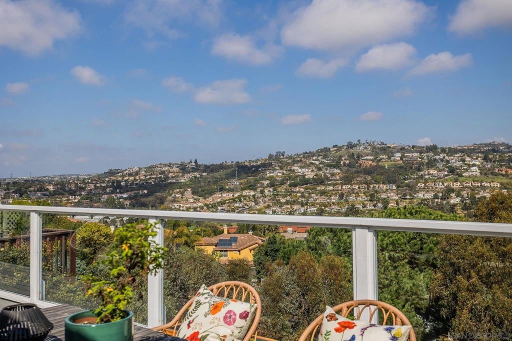 Stunning single-level home partially remodeled in 2019! located within the heart of Carlsbad. Situated on a .39-acre lot with gorgeous VIEWS and ADU potential! One bedroom and bath could be completely secluded with its own entrance. Incredible view of the Carlsbad hills visible from the master bedroom, living room, dining room, kitchen and office. This amazing residence features a large and bright office, and engineered hardwood flooring throughout. Vaulted ceilings with large windows and French doors in the dining room, living room, and primary bedroom bask the home in an abundance of natural light. A beautifully appointed Chef’s kitchen boasts quartz countertops, sleek stainless-steel appliances, recessed lighting, and modern cabinetry with breakfast counter seating that opens to the living area. A spacious primary suite offering deck access, a walk-in closet with a nice wood finish, and its own spa-like en-suite bath featuring dual sinks and a custom walk-in shower. Outdoor living has been extended to the Entertainer’s backyard featuring a sprawling deck with four levels of sundecks, lush landscaping and thoughtfully-designed hardscape including peaceful and serene seating areas, perfect for entertaining and taking in the views. The lower portion of the yard offers a large level grassy area with several varieties of fruit trees, plants, and herbs including Avocado, Pomegranate, Lemon, Apples, Cherry, Apricot, Dragon Fruit, Passion Fruit, Raspberry, Strawberries, Rosemary and Thyme. Conveniently located, just minutes away from Carlsbad’s breathtaking beaches, shopping, fine dining, parks, golf amenities, hiking trails, award-winning schools, and Interstate 5, plus so much more. No HOA or Mello Roos! Don’t let this opportunity pass you by!!