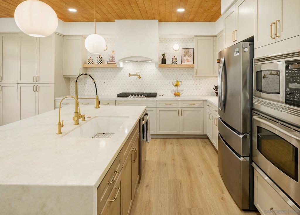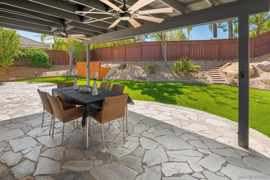 Welcome to 10528 Pinion Trail, an exquisite fully remodeled residence that redefines luxury living through refined design, open-concept flow, and impeccable craftsmanship. Upon arrival, you’ll notice the freshly painted exterior and professionally updated landscaping that set the tone of what's to come. Step through the front door into a spacious formal entryway flooded with natural light, leading to the elegant living and dining areas-perfect for entertaining and gatherings. At the heart of the home lies a stunning central living space that seamlessly connects the family room, dining area, and gourmet kitchen. The kitchen is a true showpiece, featuring a waterfall island and peninsula that offer ample bar seating, quartz countertops, custom wood ceilings, a statement chimney hood, a wine fridge, and custom cabinetry as well as a cozy breakfast nook ideal for casual dining. The living room is designed for comfort and style, showcasing custom built-ins, detailed carpentry, ambient lighting, and a fireplace that creates a warm and inviting atmosphere. The primary suite serves as a private retreat, highlighted by designer tile, a freestanding soaking tub, custom shower glass, and decorative finishes that evoke spa-like tranquility. A custom-built walk-in closet offers premium storage and organization. A dedicated office provides the ideal space for work or creativity and can easily serve as a fourth bedroom, offering flexibility for any lifestyle. Other upgrades include all new flooring throughout, both fireplaces redesigned in smooth finish with quartz countertops and wood mantles, new recessed lighting and all new windows treatments throughout the home. The exterior continues the home’s modern elegance with a freshly painted façade and an outdoor living space designed for both relaxation and entertaining. The backyard features a new pergola and recently installed turf for low-maintenance enjoyment, while the front yard showcases upgraded landscaping with agave plants, large pebble rocks, and a manicured lawn that enhances curb appeal. Every detail of this home has been carefully curated to blend modern elegance with lasting comfort. With its open layout, quality finishes, and seamless indoor-outdoor connection, 10528 Pinion Trail embodies contemporary Southern California living in a picturesque gate guarded community.
