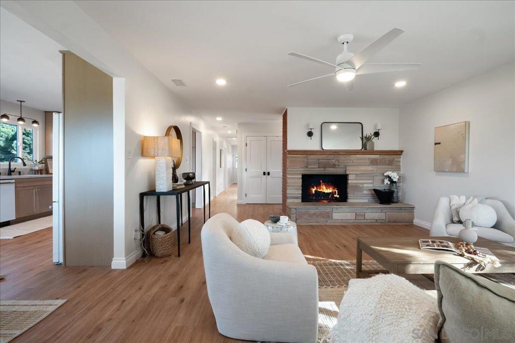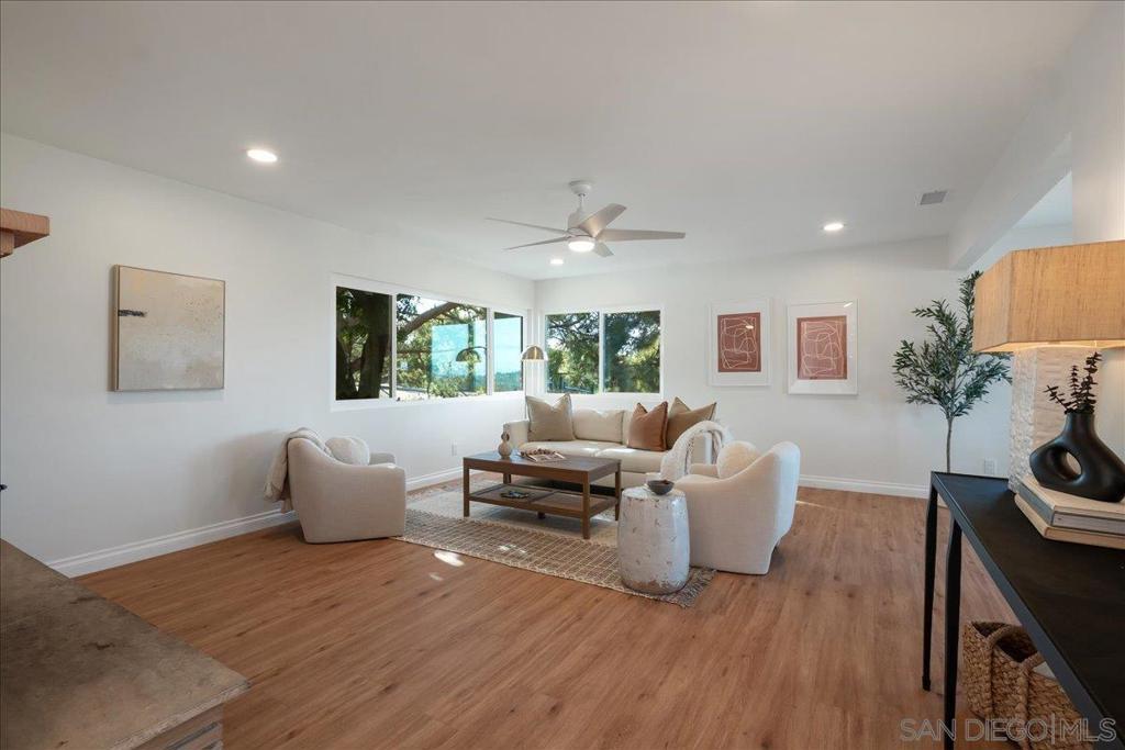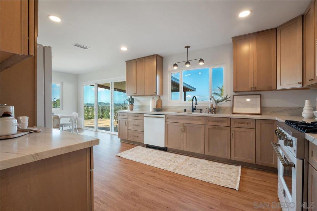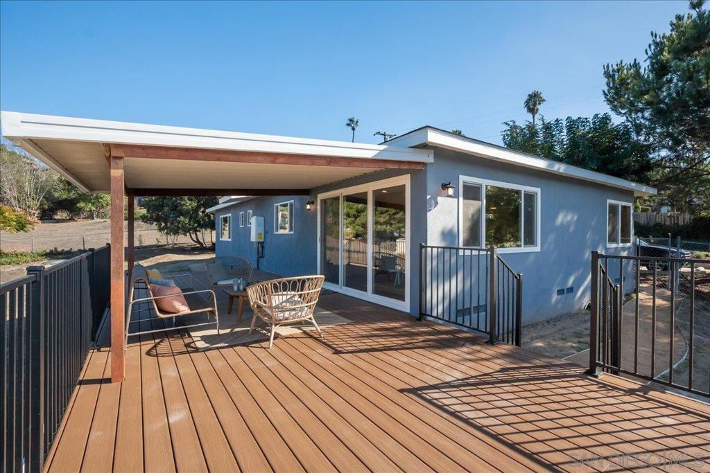 Lovingly restored single-level '60's ranch-style home on just under 3/4 of an acre. This special property captures the charm of a bygone era while offering modern comfort and efficiency. Located in a tranquil pocket of rural North San Diego County it offers a peaceful “off-the-grid” feel yet remains close to shopping, dining, and major conveniences. Upgrades include solid quartz countertops, custom cabinetry in the kitchen and baths, new appliances, vinyl plank flooring, new tankless water heater, new central HVAC system and an upgraded electrical panel. An oversized laundry room, new windows, doors, fresh interior and exterior paint, new stucco, new trim and baseboards, and an expansive new deck are additional design elements. The lot offers endless potential—room for one or more ADUs, RV parking, a dream pool, or a garden retreat. A beautifully updated piece of North County history—move-in ready and designed with the next homeowner in mind.