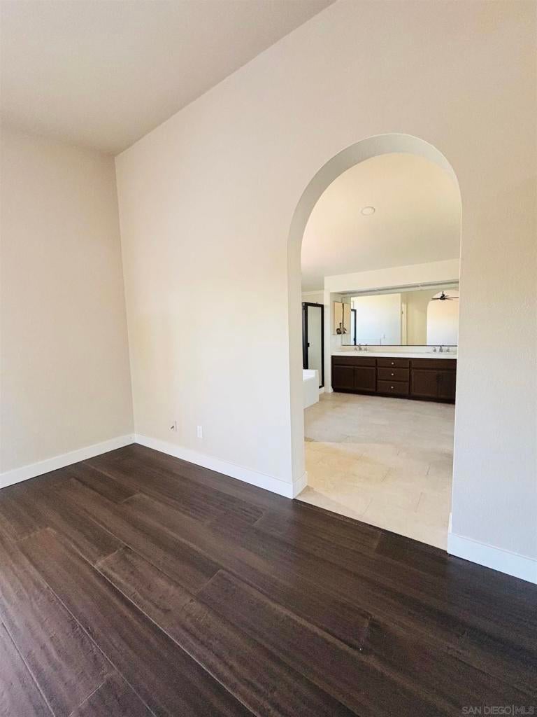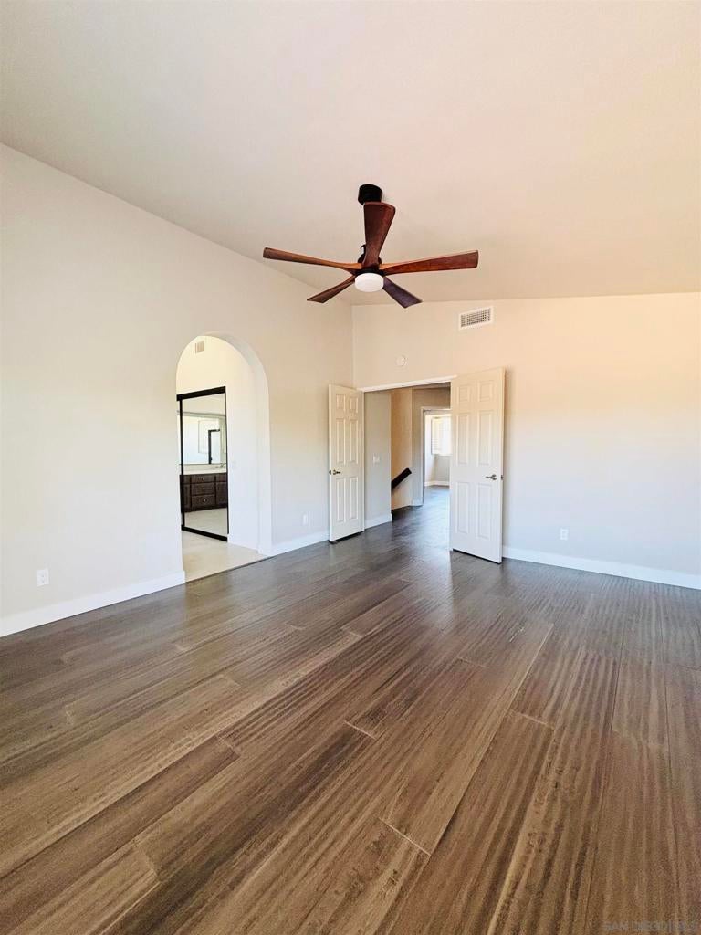 Situated in a peaceful cul-de-sac, this 2271 sq ft Spanish-Style home boasts 4 bedrooms and 3 full bathrooms. First floor bedroom and bath add a touch of convenience. Large extended driveway ensures amply parking & privacy. This home is not a flip, over the past 2 years sellers have thoughtfully updated it. Enhancements include removing the step-down in living room for a smoother flow, installing new kitchen, cabinets with quartz counter tops, stainless steel appliances, & adding sliding glass and French doors. Home features new bamboo wood flooring throughout, stairway redesigned using Spanish tiles. Spacious Primary bedroom upstairs offers stunning sunset views and an ensuite bathroom complete with a soaking tub, separate shower, dual sinks and large walk-in closet. Two additional bedrooms and a full bath complete the second floor. Expansive half-acre lot features beautiful desert landscaping, custom block walls, decorative pavers and a serene waterfall. Ideal for entertaining, backyard offers breathtaking sunset views and includes drought-resistant plants, citrus trees, sprinklers and solar lighting. The generous lot size also provides excellent potential for a future pool. In addition to the spacious three car garage, the backyard features a custom 23x11 workshop, which could possibly be converted into an ADU. Home also included a new Solar Panel System (fully PAID) with two batteries, providing substantial energy cost savings. Easy access to Freeways with close prox. to shopping, restaurants, schools, hospital. Home offers both convenience and elegance.