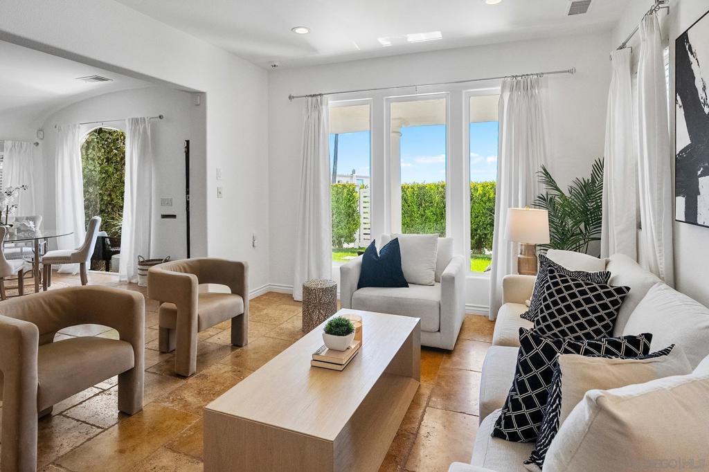 Commanding one of Southern California's most iconic stretches of sand, This stunning Mediterranean inspired beach front retreat delivers next level coastal living. Spanning 3300 SF with 4 bedrooms, 3 bathrooms and show stopping ocean views, 208 South Pacific puts you front and center in SoCal's coastal renaissance. Step inside & let the rhythm of the ocean set the tone. A Thoughtfully reversed floor plan places the kitchen and living space upstairs-right where those panoramic views belong. Floor to ceiling windows flood the home with sunlight while the expansive balcony is tailor made for golden hour cocktails and breezy alfresco dining. Dual primary suites-one on each level-offer flexibility for guests or multi gen living. Downstairs, wide open sliders open to a serene fountain patio that feels like your own private oasis. Style-wise it is a perfect fusion of timeless charm & elevated upgrades: travertine flooring, Grecian columns, granite countertops & custom cabinetry pair effortlessly with Milgard window, high end appliances & a full smart home security system. And the location? Absolute fire. Just 5 minutes on foot lands you in the heart of Oceanside's buzzing downtown-artisan coffee shops, destination dining, indie boutiques & the new Oceanside Beachfront Resort Hotel. With a major nine block revitalization in full swing this coastal enclave is quickly becoming one of SoCal's most exciting hot spots. What's more, the Pier View Way Bridge is getting a fresh facelift adding even more charm to your daily scene.