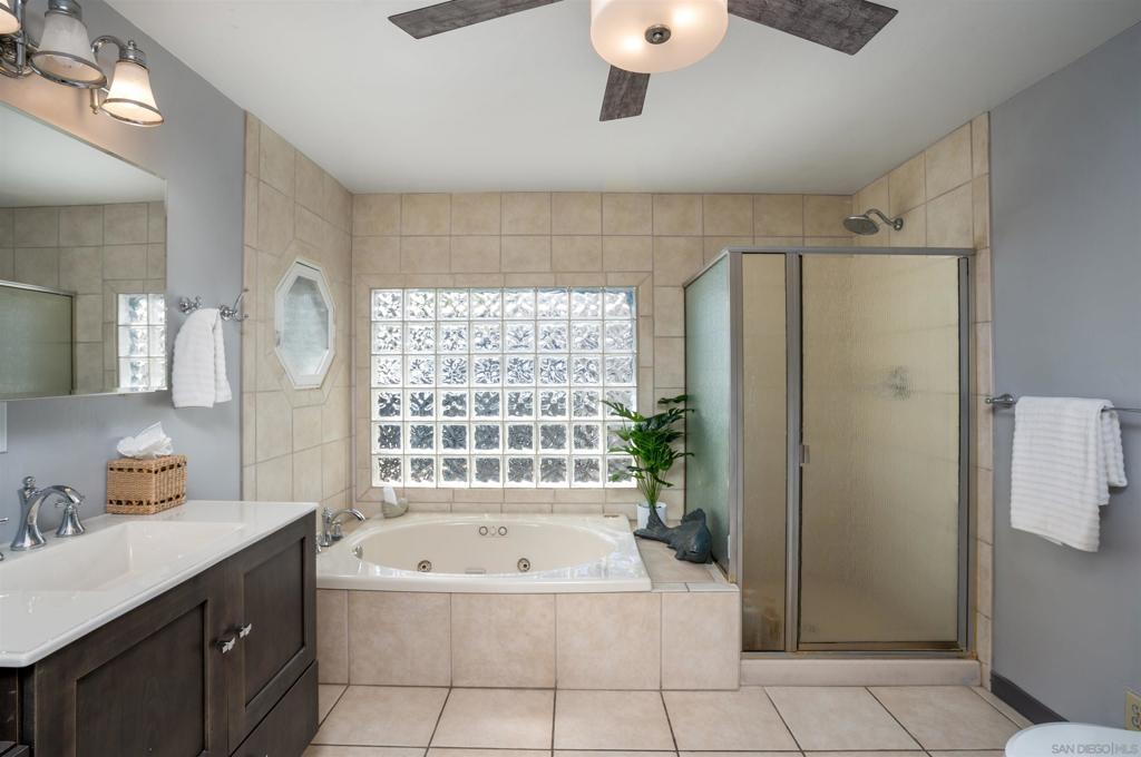 This beautifully updated two-story residence offers a spacious and inviting atmosphere. The open-concept kitchen features sleek countertops and modern cabinetry, seamlessly connecting to the dining and family rooms, ideal for both everyday living and entertaining. Large windows throughout the home allow for an abundance of natural light, creating a bright and airy ambiance. The private master suite boasts a walk-in closet and an ensuite bathroom for added comfort. Downstairs, a separate living area with a kitchenette, den, and two bedrooms provides flexibility for guests or extended family. Step outside to the beautifully remodeled patio and pool area, complete with seating areas, an outdoor fireplace, and a firepit, perfect for gatherings and relaxation.