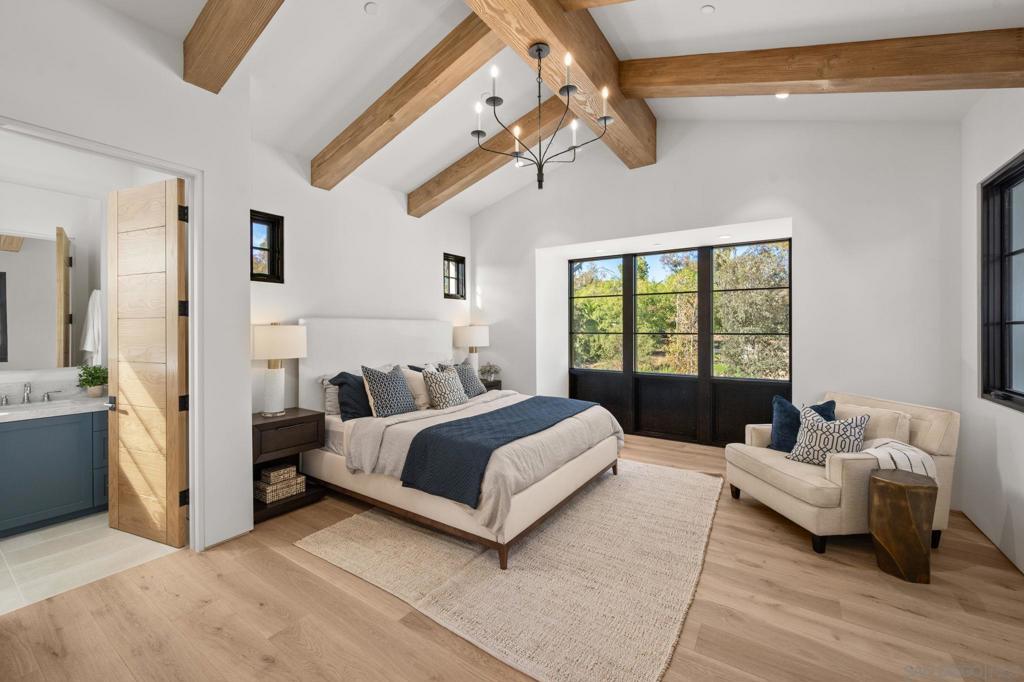 Brand-new construction 2025, located at 6323 Mimulus, Rancho Santa Fe on the picturesque Rancho Santa Fe Covenant Golf Course. Built by Greg Agee, this estate embodies the spirit of Rancho Santa Fe resort living on one of the Covenant’s most desirable streets. Set on beautiful and usable lot with wide fairway views and total privacy, it features European white oak floors, steel windows with warm wood interiors, and abundant natural light creating a calm, refined atmosphere with Sonos surround sound combining the sophistication of a five-star retreat with the warmth of home. Fireside great room designed with dramatic wood beams opens through expansive sliding doors to an outdoor living area with skylights and a stone fireplace, blending seamlessly with the zero-edge saltwater pool/spa, outdoor firepit and lush turf area designed for lounging and play overlooking the golf course. The gourmet kitchen is a showpiece with SubZero and Wolf appliances, custom stone detailing, an oversized island, double-oven and a prep kitchen with additional storage and dishwasher. The spacious primary suite offers a tranquil retreat with a spa shower under a skylight, infrared sauna, and hand-finished walnut cabinetry offering the ultimate in comfort. Additional amenities include a 4K home movie theater, game room with wet bar, private gym, owned solar, Race fiber internet, 4-car garage, and private motor gated entry. A rare new-construction opportunity in the Rancho Santa Fe School District: modern, private, and timeless with easy access to village, schools, golf and shopping.