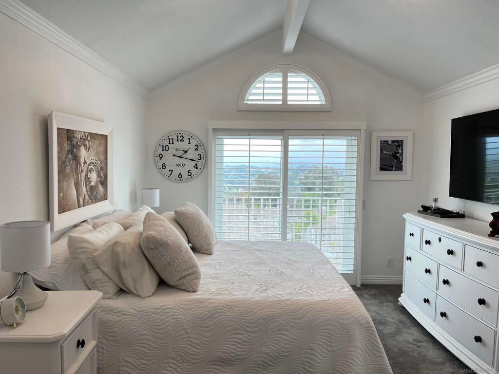 Best view in community! Discover this beautifully upgraded, turn-key home boasting stunning panoramic vistas. Views from living room, kitchen, breakfast/reading nook, and primary bedroom. Vaulted ceilings enhance the open living area, perfectly framing the view. Curl up with a book in the breakfast nook's built-in seating, warmed by a unique 3-sided glass fireplace shared with the living room. Upstairs, a sun-drenched family room loft overlooks the main level. The primary bedroom offers a walk-out deck showcasing the city lights and rolling hills. Both bedrooms have nicely finished en-suite bathrooms. Enjoy seamless indoor-outdoor living on the patio yard, enclosed in glass to maximize the breathtaking views and occasional visits from local mule deer, courtesy of the adjacent Aliso Creek trails.