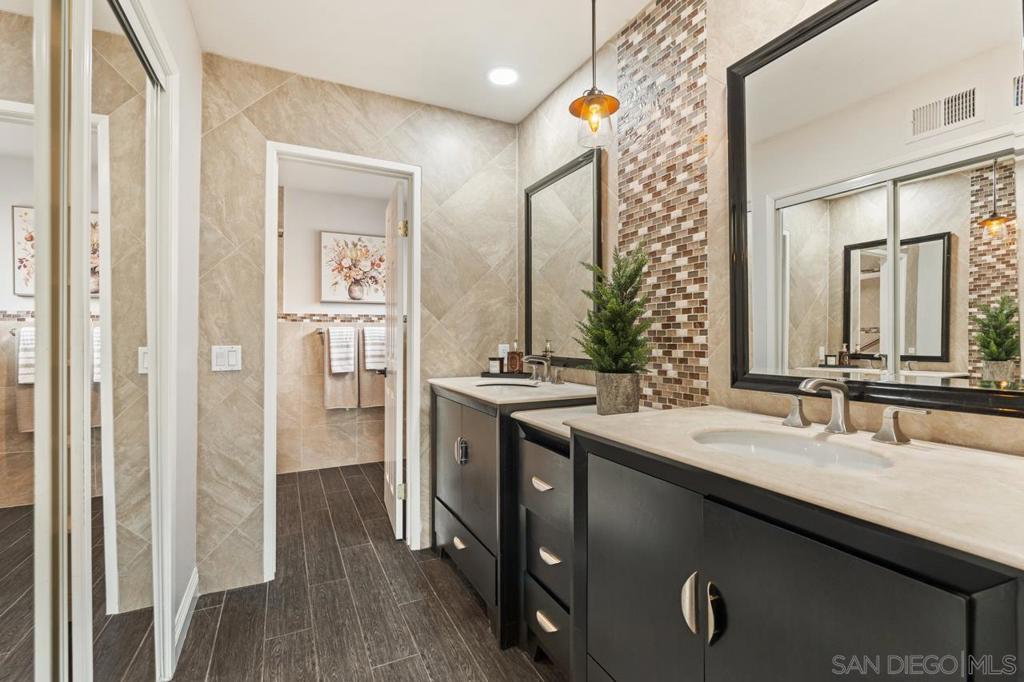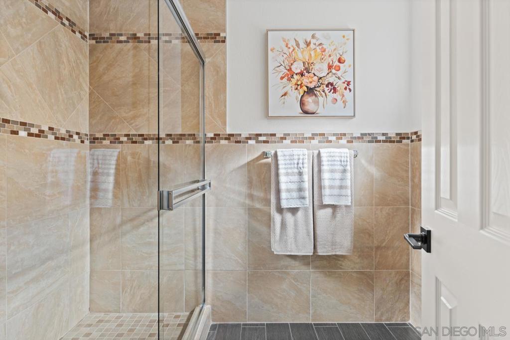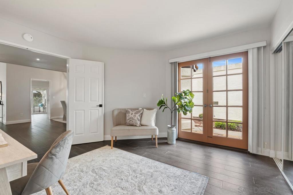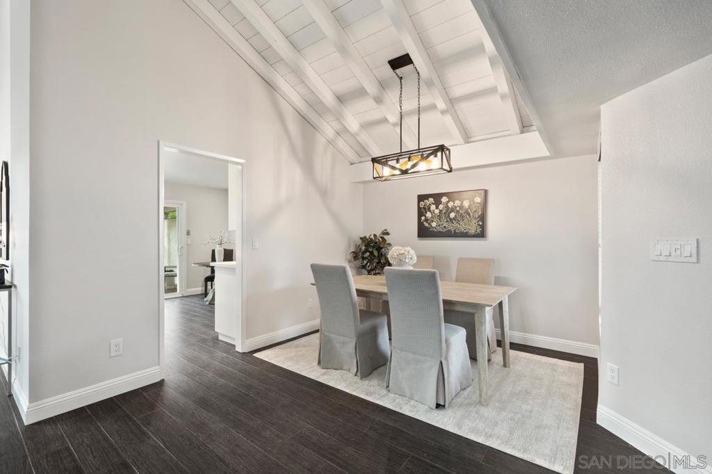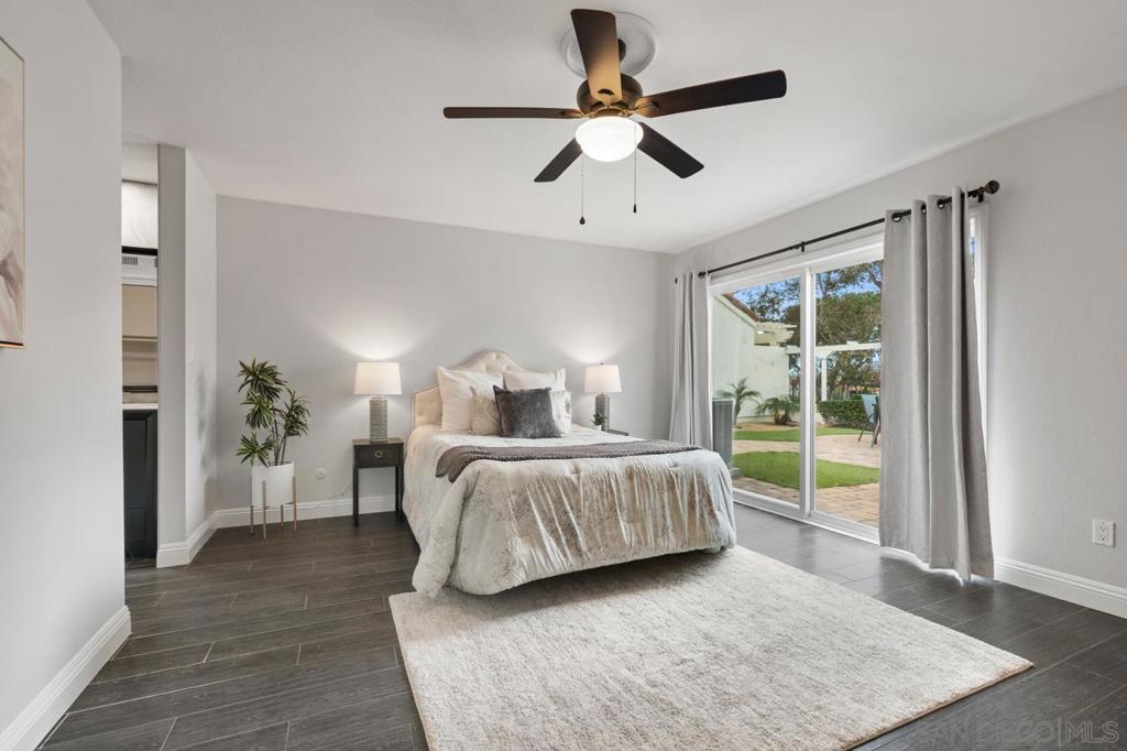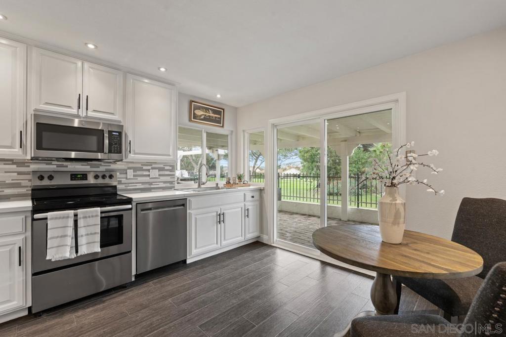 Enjoy stunning golf course views in this beautifully upgraded single story home in the desirable 55+ community of Oaks North. The spacious partially covered patio features beautiful pavers and artificial turf and a built-in BBQ, plenty of room to relax or entertain. Inside, the formal living room boasts vaulted beamed ceilings and a cozy wood-burning fireplace. The formal dining area is highlighted by a custom light fixture. The remodeled kitchen showcases upgraded countertops, a stylish tile backsplash, an oversized sink, stainless steel appliances (refrigerator included), and space for a breakfast table. Additional highlights include beautiful wood-look porcelain plank flooring throughout, upgraded windows and sliding doors, newer HVAC system, and French doors leading into the large primary suite. The primary bath offers dual sinks, a makeup vanity, an upgraded glass shower enclosure, and a walk-in closet. A sliding door from the primary suite provides direct access to the backyard. The home also includes an indoor laundry closet with space for a full-size washer and dryer (newer Samsung set included), spacious secondary bedrooms—one with French doors and mirrored wardrobes—and an oversized two-car garage with room for a golf cart or extra storage. The active Oaks North Community Center features a pool, spa, sauna, fitness room, art and woodworking studios, and a library. Residents can enjoy lawn bowling, pickleball, tennis, dance, travel clubs, and more. The Oaks North Golf Course offers three executive courses, and the popular Bernardo Winery—just one mile away—features live music, great dining, and charming local shops. Conveniently located near grocery stores, retail, and only 10 minutes from the I-15 for easy access to all of San Diego.