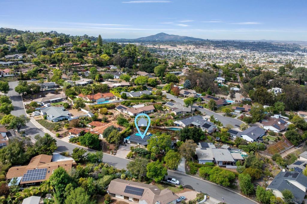 Located in the highly sought-after Horizon Hills neighborhood, this custom-built Mid-Century Modern gem is being offered for the very first time. Designed by the acclaimed architectural duo Sangster & Hamman, the home seamlessly blends timeless design with thoughtful modern updates. Spanning over 2,000 sq. ft., this architectural treasure features vaulted ceilings, an airy open-concept layout, and a dramatic Arizona Driftwood stone fireplace that anchors the main living space. Walls of glass bathe the interiors in natural light, showcasing the home’s clean lines and iconic mid-century aesthetic. The bright, updated kitchen with premium appliances flows effortlessly into the formal dining room—perfect for entertaining or enjoying everyday moments. A built-in beverage refrigerator adds a touch of luxury and convenience. Step outside to your private backyard retreat, where a custom-designed pool is surrounded by lush gardens, mature landscaping, and 13 varieties of fruit trees—including lemon, lime, apricot, persimmon, avocado, fig, guava, mango and pomegranate. Multiple seating areas invite relaxation and conversation, while a screened pergola makes outdoor dining a delight. Custom hardscaping throughout to include a gorgeous driveway and backyard deck....Lovely Telavera Mural outside adds to the uniqueness of the home. Evenings are beautifully illuminated by dawn-to-dusk lighting, lanterns, and a charming three-tiered fountain—creating a peaceful ambiance just outside the bedroom patio. Fantastic BBQ area adds the final touch! Lovingly maintained and thoughtfully upgraded, this home includes a paid Enphase solar system, new windows and patio doors, Progressive security screens throughout, and a HALO 5 full-house water filtration system. Additional enhancements such as LED lighting, ceiling fans, a new HVAC system and water heater, designer paint, updated glass garage door, and custom wrought-iron gates ensure both comfort and peace of mind. Stylish Zebra shades in the living and dining rooms add the perfect finishing touch. The front yard is equally captivating, with an amazing dry creek bed, decorative fish sculptures, and a mature foilage—all set on over one-third of an acre. Near all: SR94, I8, Avocado Blvd, grocery stores and a quick trip downtown or to the beach.