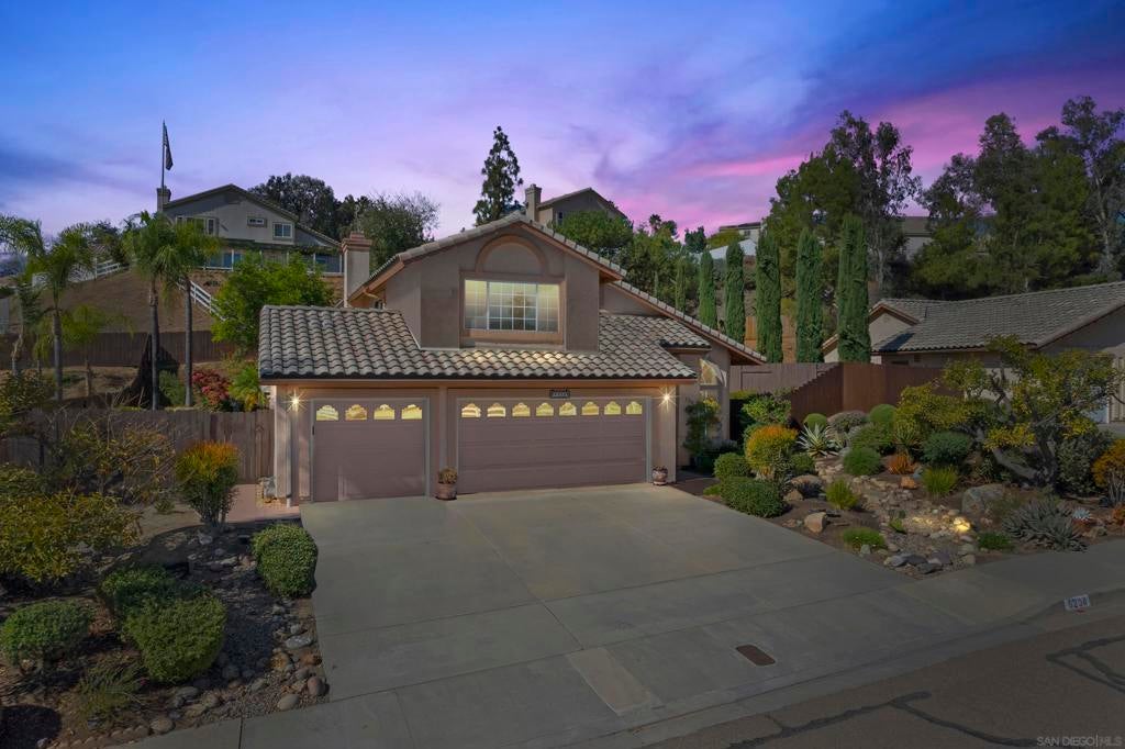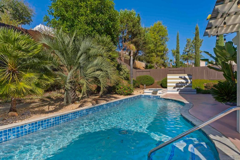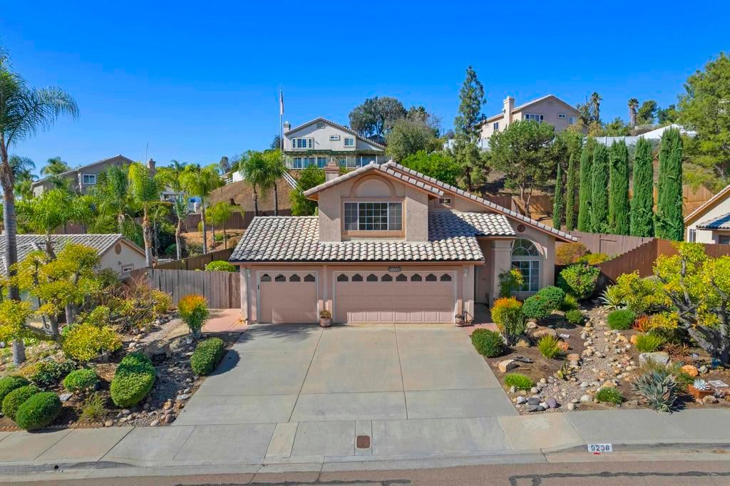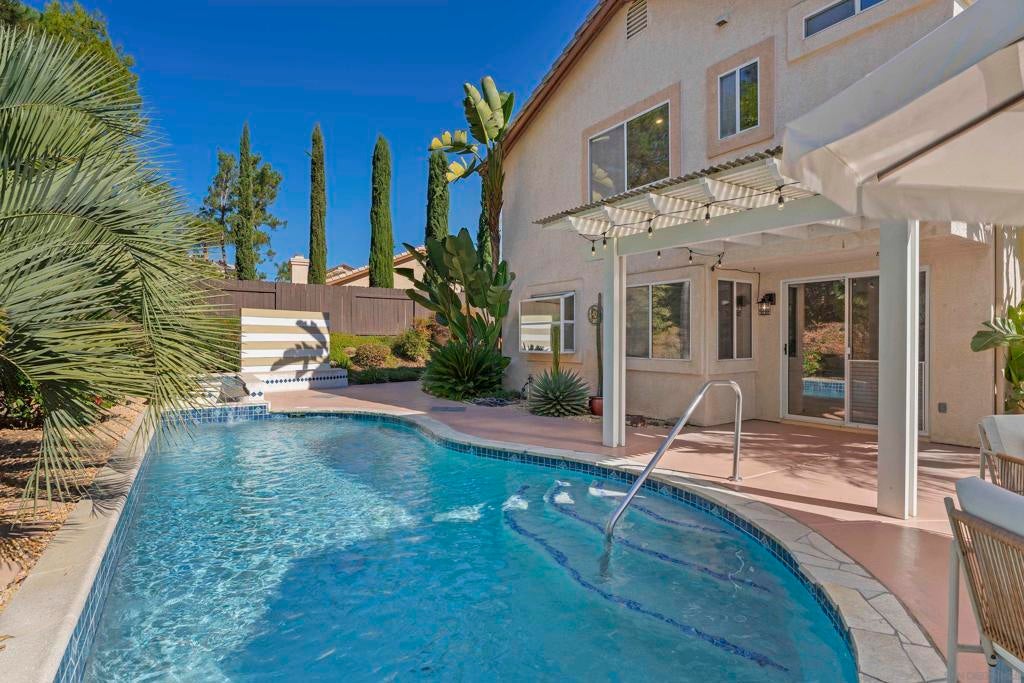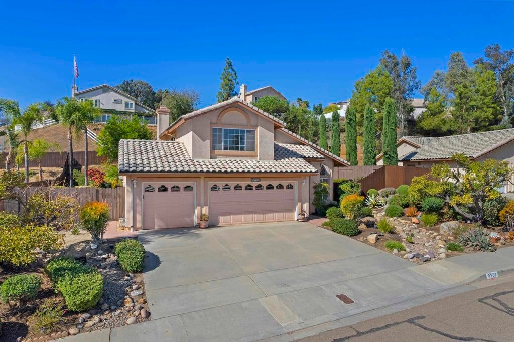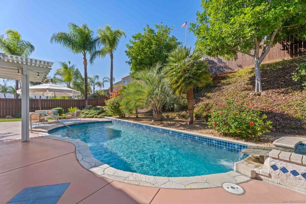 Welcome to your Summer Glen Estates dream home with stunning mountain views and a private pool! This beautifully upgraded 3-bedroom, 2.5-bath residence is tucked away on a quiet street surrounded by protected green space. Step inside to soaring vaulted ceilings, abundant natural light, and an open layout that flows seamlessly from the kitchen to the living and dining areas. The kitchen features stainless steel appliances, a large island, and overlooks the spacious living room with a cozy gas fireplace. Sliding doors open to a fully fenced backyard oasis, an entertainer’s paradise with a sparkling pool, serene waterfall, concrete patio, and award-winning drought-tolerant landscaping. The yard earned the Grand Prize for “Most Beautiful Water-Conserving Garden in South and East San Diego County” and features a stunning collection of curated plants and citrus trees. You’ll never want to leave the peace and serenity of your yard! Upstairs, the primary suite offers dual vanities, and a spacious walk-in closet. Two additional bedrooms, a full bath, and hallway storage complete the upper level. Downstairs includes a half bath, laundry room, and an attached three-car garage with epoxy flooring and attic access. With over $200,000 in recent upgrades including a new roof, central heating and air, a refinished PebbleTec pool with white quartzite coping, new fencing, new carpet, fresh interior paint, and updated fixtures and so much more, this move-in-ready home has it all. Easy access to freeways, shopping, dining, schools, and the airport. Don’t wait, write your offer today!!!