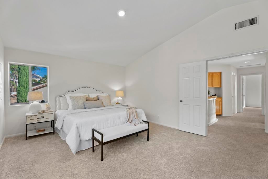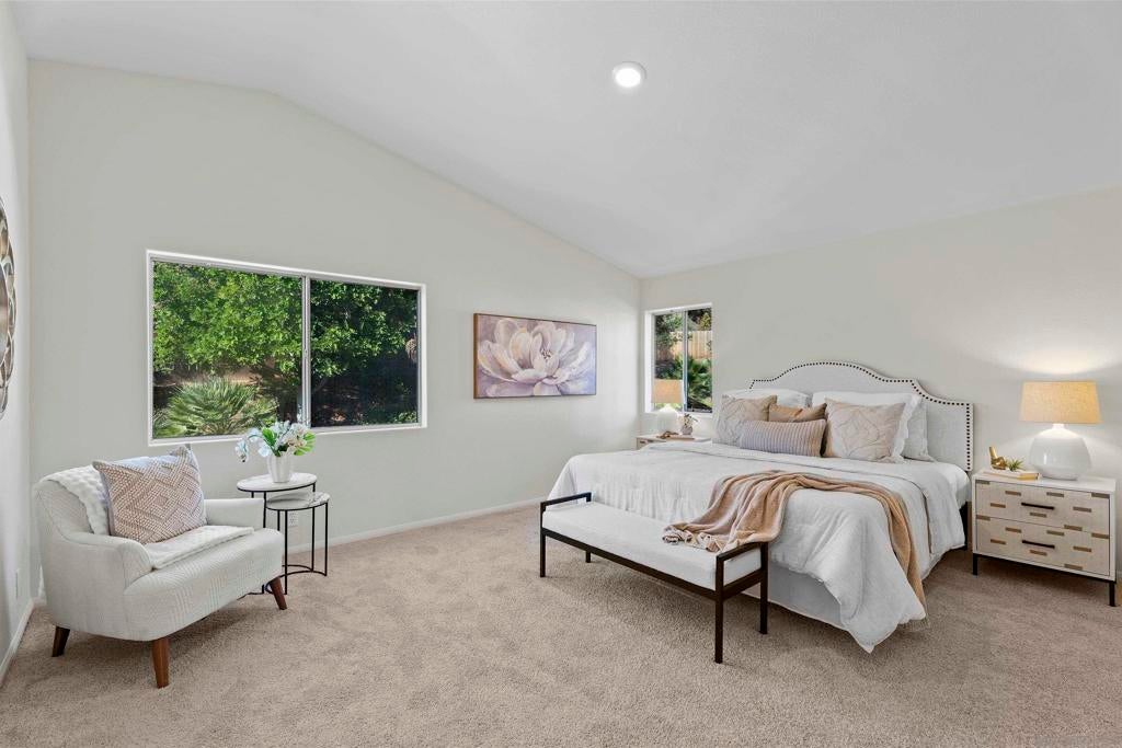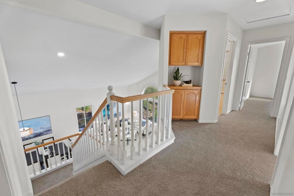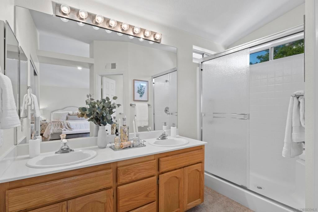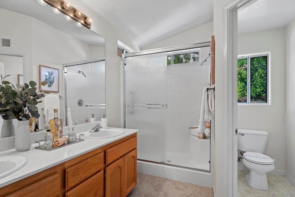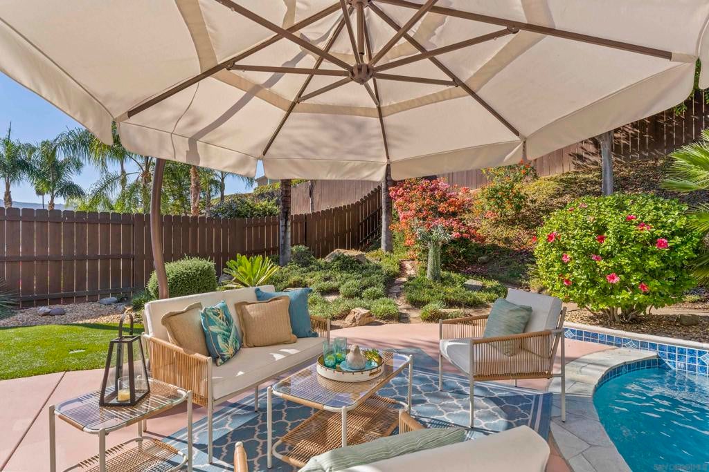 Welcome to your Summer Glen Estates dream home with stunning mountain views and a private pool! This beautifully upgraded 3-bedroom, 2.5-bath residence is tucked away on a quiet street surrounded by protected green space. Step inside to soaring vaulted ceilings, abundant natural light, and an open layout that flows seamlessly from the kitchen to the living and dining areas. The kitchen features stainless steel appliances, a large island, and overlooks the spacious living room with a cozy gas fireplace. Sliding doors open to a fully fenced backyard oasis, an entertainer’s paradise with a sparkling pool, serene waterfall, concrete patio, and award-winning drought-tolerant landscaping. The yard earned the Grand Prize for “Most Beautiful Water-Conserving Garden in South and East San Diego County” and features a stunning collection of curated plants and citrus trees. You’ll never want to leave the peace and serenity of your yard! Upstairs, the primary suite offers dual vanities, and a spacious walk-in closet. Two additional bedrooms, a full bath, and hallway storage complete the upper level. Downstairs includes a half bath, laundry room, and an attached three-car garage with epoxy flooring and attic access. With over $200,000 in recent upgrades including a new roof, central heating and air, a refinished PebbleTec pool with white quartzite coping, new fencing, new carpet, fresh interior paint, and updated fixtures and so much more, this move-in-ready home has it all. Easy access to freeways, shopping, dining, schools, and the airport. Don’t wait, write your offer today!!!