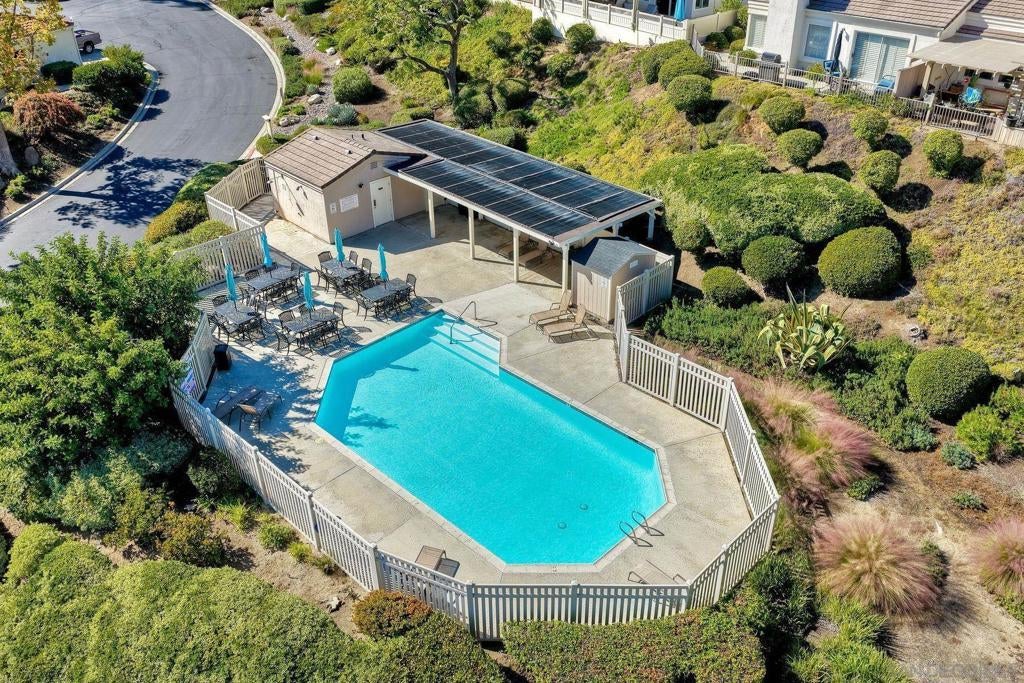 ** PRICE IMPROVEMENT ** VA APPROVED COMMUNITY ** Welcome to this beautiful single-level residence nestled in the highly sought-after Castle Creek Villas community of Escondido. This 2 bed, 2 bath, 1,396 sqft home offers an ideal blend of comfort, convenience and golf-course views. Perfect for those seeking low maintenance living in North County San Diego. Situated on a peaceful street, the home has vaulted ceilings and a fireplace in the living room, providing warmth and a focal point for gathering. The floor plan is thoughtfully designed for single-level living, featuring no stairs, and the master suite is discreetly tucked away for added privacy. The master bedroom overlooks the golf course, includes a spacious walk-in closet, and a large, updated walk-in shower. Dedicated laundry room and an attached 2-car garage plus a generous driveway simplify parking and storage. Exterior maintenance and water are included in the HOA dues. Community amenities include a sparkling pool and pickleball courts. The Castle Creek Villas development offers a golf-course backdrop that enhances both serenity and resale appeal. Located just 30 minutes from MCAS Miramar and Camp Pendleton. Association fees include common area maintenance, exterior (landscaping), exterior bldg maintenance, sewer, water.