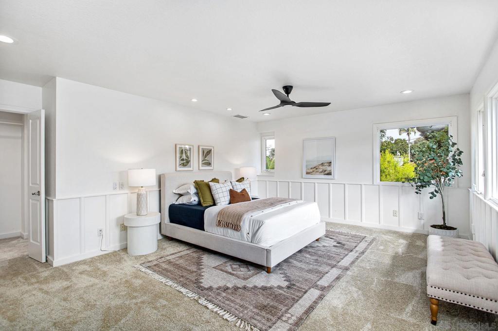 Rare opportunity to own a beautifully crafted custom home in Cardiff’s sought-after Composer District. Designed and built by Tom McCabe, this 3-story, 4-bedroom, 3.5-bath residence offers over 3,500 sq. ft. of beautiful living space. The welcoming living room at entry-level has vaulted ceilings, cozy fireplace, and opens to a palm-tree lined yard via floor-to-ceiling double doors. Great for entertaining! Enjoy a newly built lap pool with a separate relaxing hot tub. Two-car garage with extra storage has direct access to the home. Light-filled kitchen located on the second level has updated appliances, wine refrigerator, and a private dining room. Adjacent bonus living area with fireplace, laundry room, and a spacious primary retreat complete with a jacuzzi tub and fireplace. Three more bedrooms and two bathrooms located on the top floor, including an en-suite with a private deck and peek-a-boo ocean views. This home also includes owned solar panels, ensuring energy efficiency and savings. Situated just steps away from San Elijo State Beach and Rossini Canyon, near top-rated local schools and premier shopping, this residence combines luxury, location, and lifestyle.