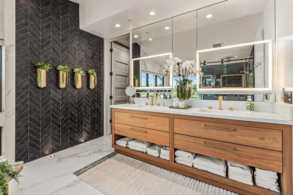 Experience refined coastal living in this exquisite luxury townhome, perfectly situated just one block from the beautiful beaches of Carlsbad. Built in 2017 and meticulously remodeled with high-end finishes and designer details in 2021, this lightly lived-in residence offers a pristine, turnkey opportunity for even the most discerning buyer. Ideally positioned to capture refreshing ocean breezes without harsh afternoon sun, this home delivers both comfort and sophistication in a prime coastal setting. The entry level features direct access from the attached two-car garage, two bedrooms, and a full bathroom—ideal for guests or a home office. Upstairs, the open-concept main level showcases a stunning fireplace, large picture windows that fill the home with natural light plus Cantina doors that open to create seamless indoor outdoor living, recessed lighting, and a striking staircase with glass accents. The chef-inspired kitchen is sure to impress, offering a generous eat-at center island illuminated by pendant lighting, ceramic slab countertops, open shelving, and abundant cabinet space. This level also includes a bedroom with en suite bath and a convenient half bath. The top floor serves as a private retreat, a serene primary suite featuring peak ocean views, a huge custom walk-in closet and spa-like bathroom—complete with a deep soaking tub, large step-in shower, dual vanities, and elegant designer finishes. Views of the Carlsbad sign are enjoyed in the primary bath. Sold Fully Furnished… All You Need to Bring Is Your Toothbrush (and Maybe a Bottle of Champagne). Multiple outdoor living spaces provide the perfect spots to unwind and enjoy the coastal air. Just minutes from Carlsbad Village’s lively cafes, boutiques, and train station—with easy access to the I-5—this rare coastal gem seamlessly combines modern elegance, thoughtful design, and the best of the Southern California lifestyle.
