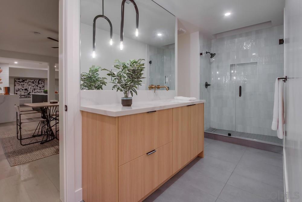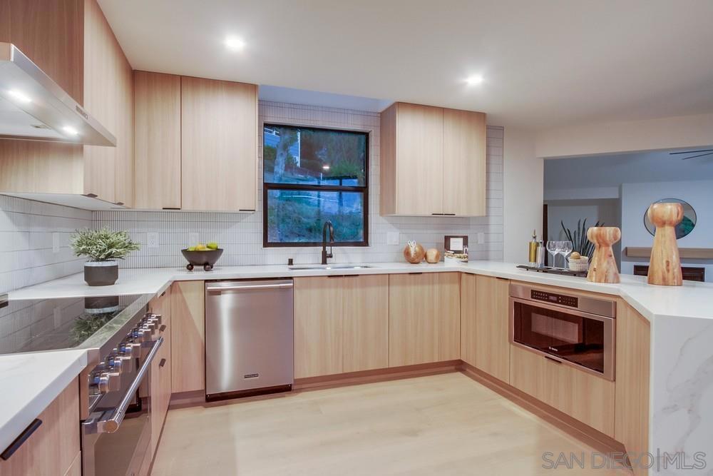 Welcome home to this custom built entertainers dream overlooking Rancho Sante Fe and the San Elijo Ecological Reserve. This architectural masterpiece has been totally reimagined including wide plank white oak wood floors, euro cabinets, quartz counters, professional series SS appliances, all new custom windows to accentuate the views, designer tile and fixtures throughout, vaulted ceilings in living, family, and primary suite, multiple outdoor decks and entertaining spaces, a full length 75' salt water lap pool with spa, bonus/game room with wet bar, and full laundry room in the main home. The primary suite has a custom bath with atrium shower, soaker tub, and huge walk in closet. All of this on a .67 acre lot with a 1 bedroom pool house with a full kitchen, bath, and view deck overlooking the valley below. Located on a private road that boarders the Manchester Preserve hiking trails this is truly a once in a lifetime estate!