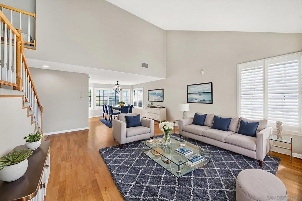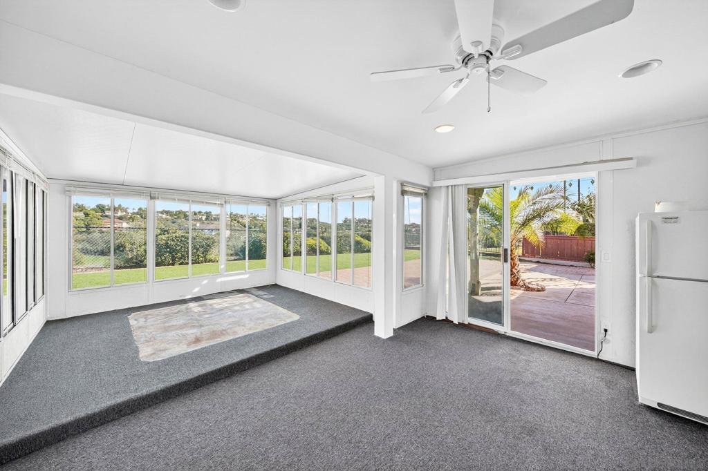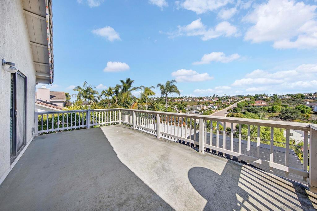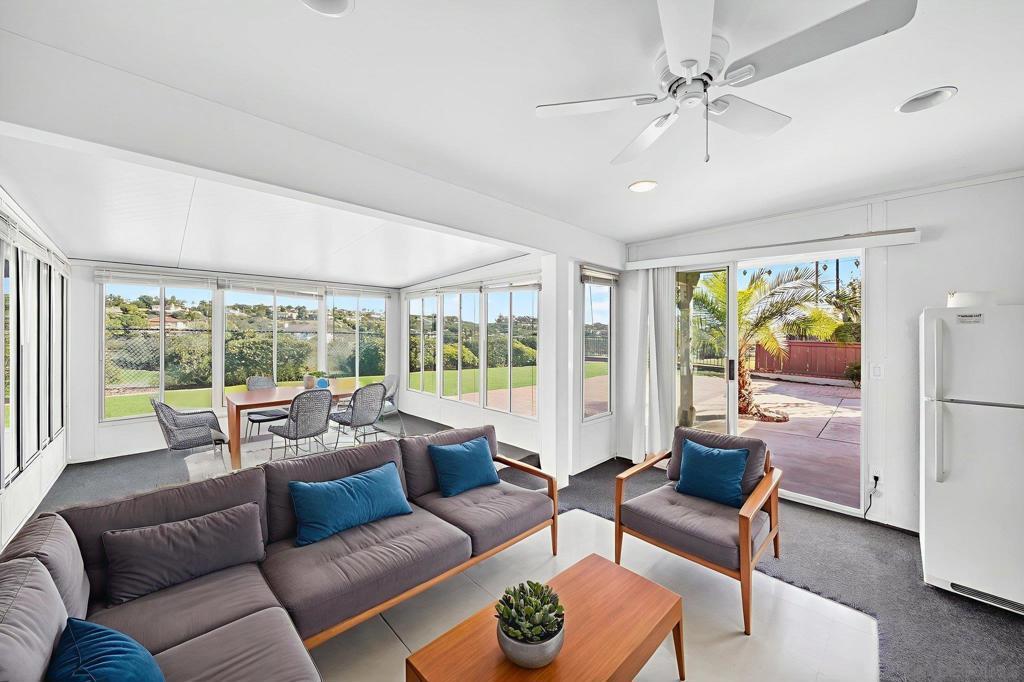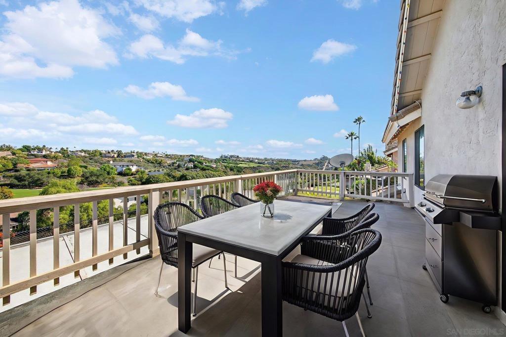 Beautiful views in the coveted Quail Gardens neighborhood! Tucked away on a quiet, tree-lined street, this bright and airy 4 -bedroom, 2.5-bath home features a thoughtfully designed floor plan that encourages the best of indoor-outdoor living. Step inside to find a soaring vaulted ceiling and an open-concept living and dining area filled with natural light. A wall of large windows frames the surrounding greenery, bringing the outdoors in. The kitchen connects seamlessly between the living spaces, while the family room features a cozy fireplace and a convenient wet bar making it ideal for entertaining. A sliding glass door opens to the bonus sunroom, offering the perfect place to relax and enjoy the backyard year-round. Upstairs, the spacious primary suite includes a walk-in closet, double vanity, and a large walk-in shower. Down the hall, you’ll find three additional bedrooms, one of which enjoys private access to an oversized deck with sweeping views all the way to the Encinitas Ranch Golf Course. In addition to a wide driveway, this property boasts an attached 2-car garage for more parking or storage. Just a short drive to beaches, top-rated schools, shopping, dining, and more, don’t miss the opportunity to enjoy the quintessential Encinitas lifestyle!
