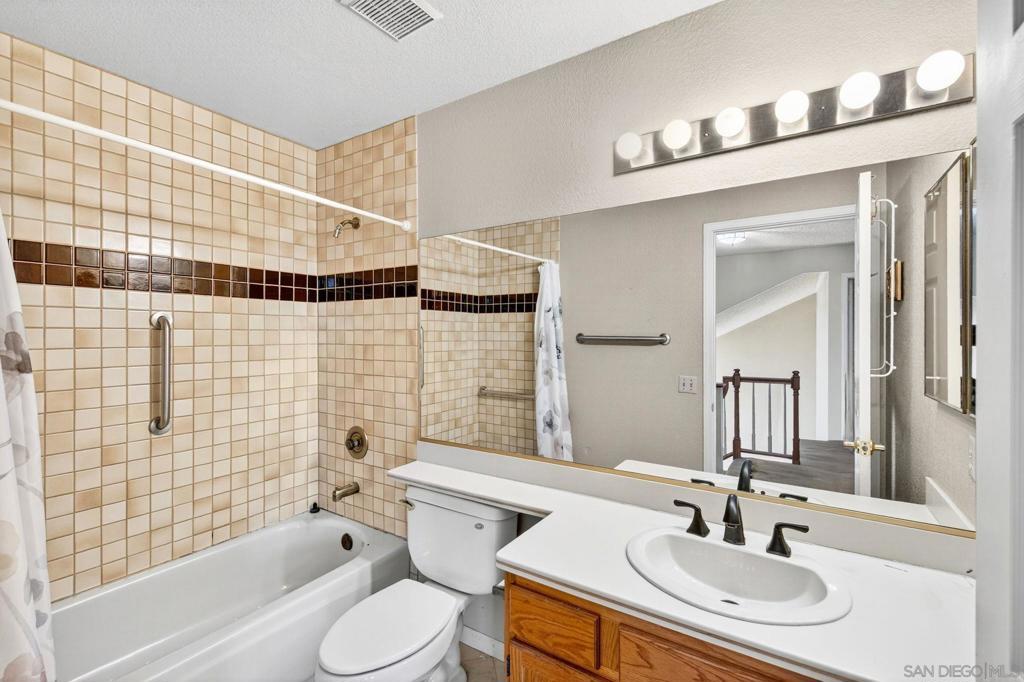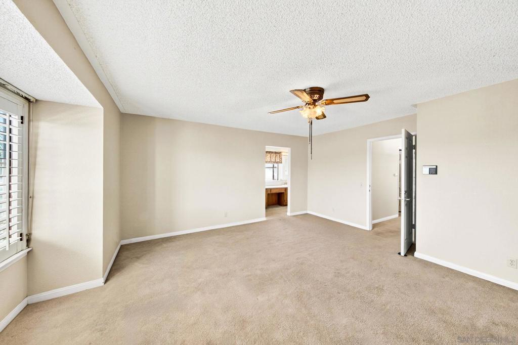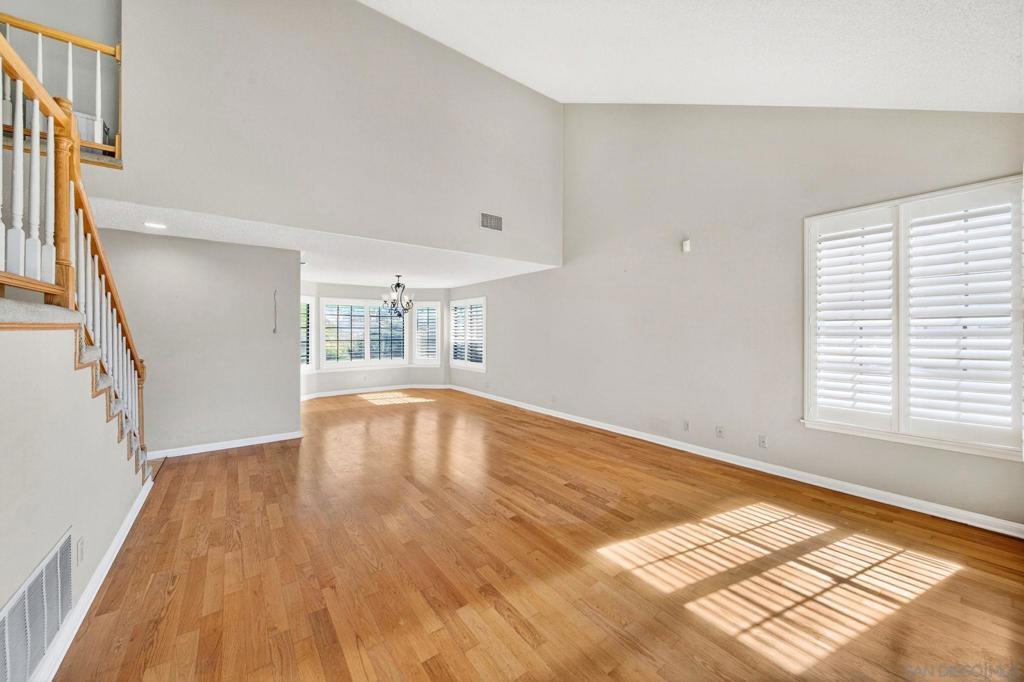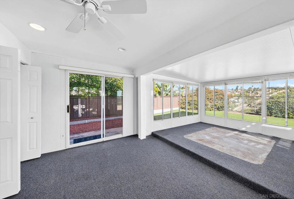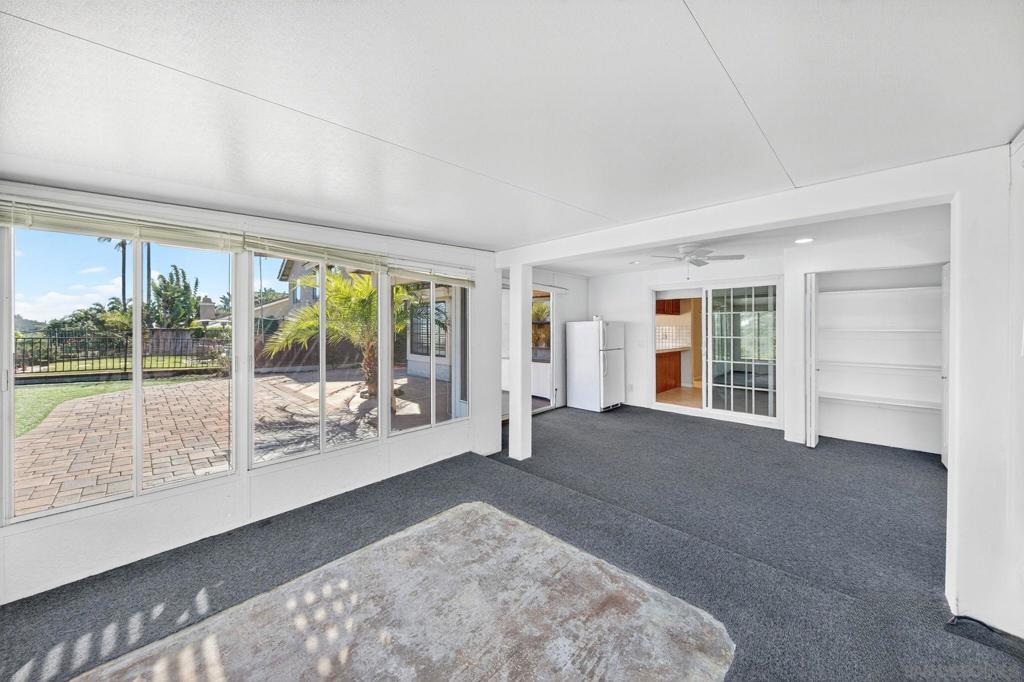 Beautiful views in the coveted Quail Gardens neighborhood! Tucked away on a quiet, tree-lined street, this bright and airy 4 -bedroom, 2.5-bath home features a thoughtfully designed floor plan that encourages the best of indoor-outdoor living. Step inside to find a soaring vaulted ceiling and an open-concept living and dining area filled with natural light. A wall of large windows frames the surrounding greenery, bringing the outdoors in. The kitchen connects seamlessly between the living spaces, while the family room features a cozy fireplace and a convenient wet bar making it ideal for entertaining. A sliding glass door opens to the bonus sunroom, offering the perfect place to relax and enjoy the backyard year-round. Upstairs, the spacious primary suite includes a walk-in closet, double vanity, and a large walk-in shower. Down the hall, you’ll find three additional bedrooms, one of which enjoys private access to an oversized deck with sweeping views all the way to the Encinitas Ranch Golf Course. In addition to a wide driveway, this property boasts an attached 2-car garage for more parking or storage. Just a short drive to beaches, top-rated schools, shopping, dining, and more, don’t miss the opportunity to enjoy the quintessential Encinitas lifestyle!