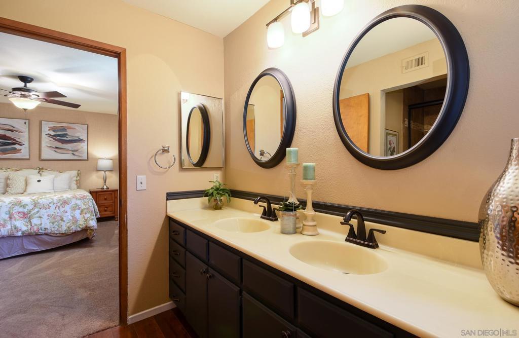 Welcome to this beautiful single-story home with a view! 3 bedroom 2.5 bathrooms with a 2-car attached garage. Largest floor plan in the community and rarely available. This home sits up high perched on an elevated lot on a quiet cul de sac! This amazing home offers privacy and views! Ideal layout with comfort and space in mind. One of the most sought after communities in North Escondido surrounded by the beautiful Castle Creek golf course! Tall soaring ceiling in the spacious living room with a rock fireplace and charming window seat to soak in the views. Wrap around patio with a gated entrance. Rich hard wood floors, granite kitchen counter tops and upgraded bathrooms make this home move in ready. Ideal layout with an oversized primary suite with a retreat and cozy patio to enjoy your morning coffee. Jack and jill bathroom for the guest suites plus a powder room for company. This home is very unique with all the dark wood window trim and base boards giving the home world class charm and warmth. Tour this beauty today!