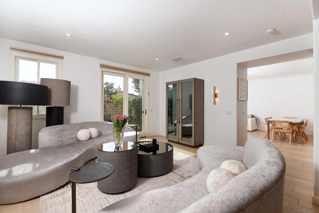 Pride of ownership aptly describes this three bedroom, two and a half bath home of 2541 square feet in the gated community of Emerald Cove. This Nautilus model has that WOW factor with open spaces in the living, dining , kitchen and family room on the first floor and three sun-infused bedrooms plus a laundry room on the second floor. There is a three car garage, fireplace in the family room, GE Monogram and LG appliances in the dazzling chef’s kitchen with breakfast bar with a beautiful view of the garden. The primary bedroom has a raised ceiling, luxurious bath with double vanities, a soaking tub and separate shower, and a large walk- in closet. Two sets of sliding doors on the main level give you access to the low-maintenance patio with its slate floor, custom brick corner fireplace and mature plantings. Add to this the fact that owners in Emerald Cove have access to the resort like facility of the La Jolla Alta Clubhouse with its two pools, lighted tennis courts and pickleball courts, and you will readily believe that 1329 Caminito Balada represents one of La Jolla’s best buys.