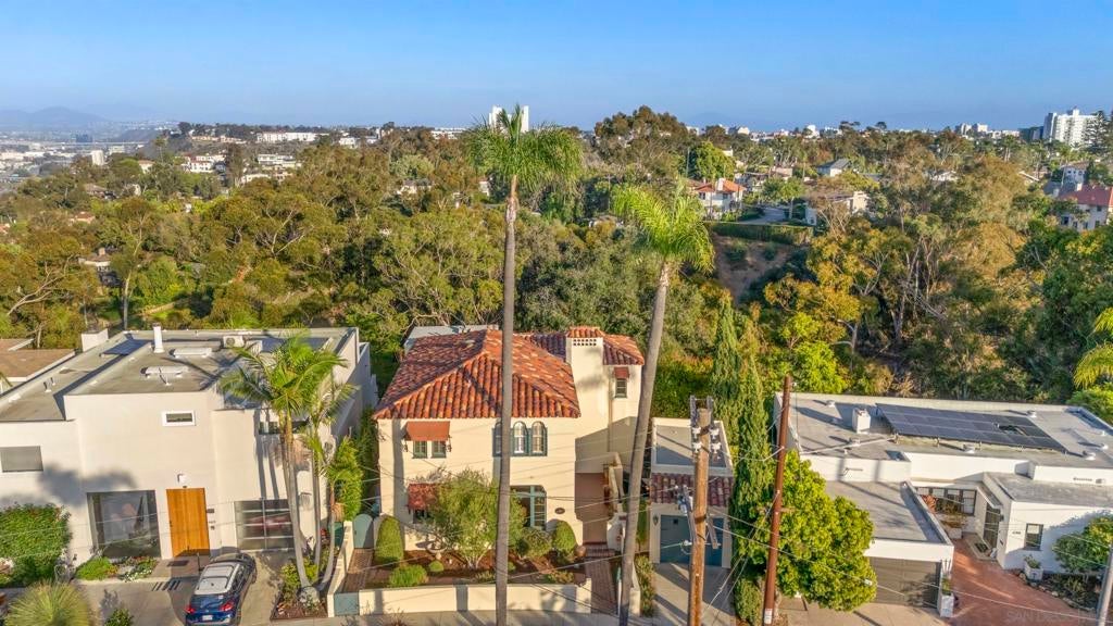 Nestled on a serene street in Mission Hills, this exquisite Spanish Revival gem seamlessly blends timeless historical charm with contemporary luxury. Built in 1924 the original owner was a prominent local politician and businessman. The home has been lovingly restored by its current owners, who invested over $500,000 to preserve its original splendor while incorporating modern upgrades. Thanks to its Mills Act designation, the property enjoys a significant reduction in property taxes. The home pulls you right in with its bright open windows and canyon views. The home capitalized on its views with a lovely balcony off the living room and walk out patio below. The spacious, integrated kitchen and dining area boast top-tier appliances, ample counter space, and elegant finishes, creating an ideal hub for gatherings. Meticulously maintained throughout, the home features key updates including replaced cast-iron drain pipes, a fully upgraded electrical system, extensive tiled roof repairs, fresh exterior paint, restored and replaced casement windows, an enhanced retaining wall and wrought-iron fence. Adding unique charm and convenience, a vintage elevator gracefully connects all three levels. The bottom level has a pair of French doors that open to the patio and backyard. (Perfect for a guest suite). There’s a laundry room, an ADA compatible bathroom that is also accessible from outside, a bar with a kegerator, wine fridge and beverage fridge, and a large open entertainment space. This outdoor area is equipped with professional grade outdoor space heaters.