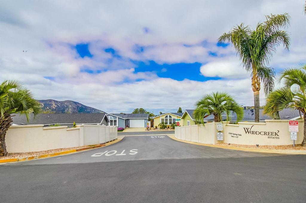 Welcome to this charming Woodcreek Estates (all ages park) 3-bedroom, 2-bathroom home located on a corner lot with a permanent foundation. All under vaulted ceilings, enjoy hard surface flooring in the living spaces and primary bedroom and plush carpet in the auxiliary bedrooms, a thoughtfully redesigned kitchen including ample cabinetry, beautiful granite countertops, stainless steel appliances with a double oven and corner breakfast nook. A walk-in pantry was added for additional storage. The spacious dining and living room combo bask in natural light. Both bathrooms have been remodeled with tasteful fixtures. Additional features include an interior laundry room, enlarged (by 4 feet) garage with storage cabinets, shelving and direct access to the home plus a 3-year new HVAC system + energy efficient ducting. The spacious backyard is fully fenced and features a large aluminum patio cover with fan/light to enjoy meals al fresco. The park features ample guest parking, a community room with remodeled kitchen and separate billiard room, pool, spa, gym and RV/Boat storage (extra nominal fee). All appliances, televisions, and tv mounts convey.