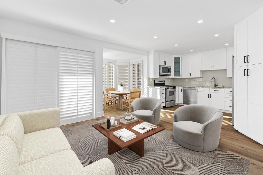 Experience refined luxury in this beautifully renovated 3-bedroom, 3-bath townhouse filled with natural light. Morning sunshine brightens the living room and front bedroom, while afternoon light enhances the family room and kitchen. Enjoy refreshing cross-breezes on warm days and added privacy with serene greenbelt views. Just steps from the world-class UTC Mall, this home offers both convenience and tranquility. This stunning multi-level residence features an open, airy floor plan designed for comfort and privacy. The main living areas span the first two levels, while all bedrooms are privately located upstairs. Soaring ceilings with elegant crown molding, designer plank flooring, custom LED lighting, and fresh neutral paint create a sophisticated, modern ambiance. The gourmet kitchen is fully upgraded with granite countertops and premium finishes. The spacious living room boasts a dramatic two-story ceiling and a cozy fireplace, complemented by large windows that flood the home with natural light. Enjoy seamless indoor-outdoor living with a private balcony and a large patio overlooking the greenbelt—perfect for morning coffee, evening wine, or entertaining. Luxurious bathrooms feature marble finishes with contemporary gold accents, and all bedrooms offer high ceilings with designer ceiling fans. Additional features include a two-car garage with a Bosch washer and dryer. Residents enjoy resort-style amenities such as a heated pool and spa, clubhouse, ample guest parking, EV charging stations, and central forced heating and air conditioning.