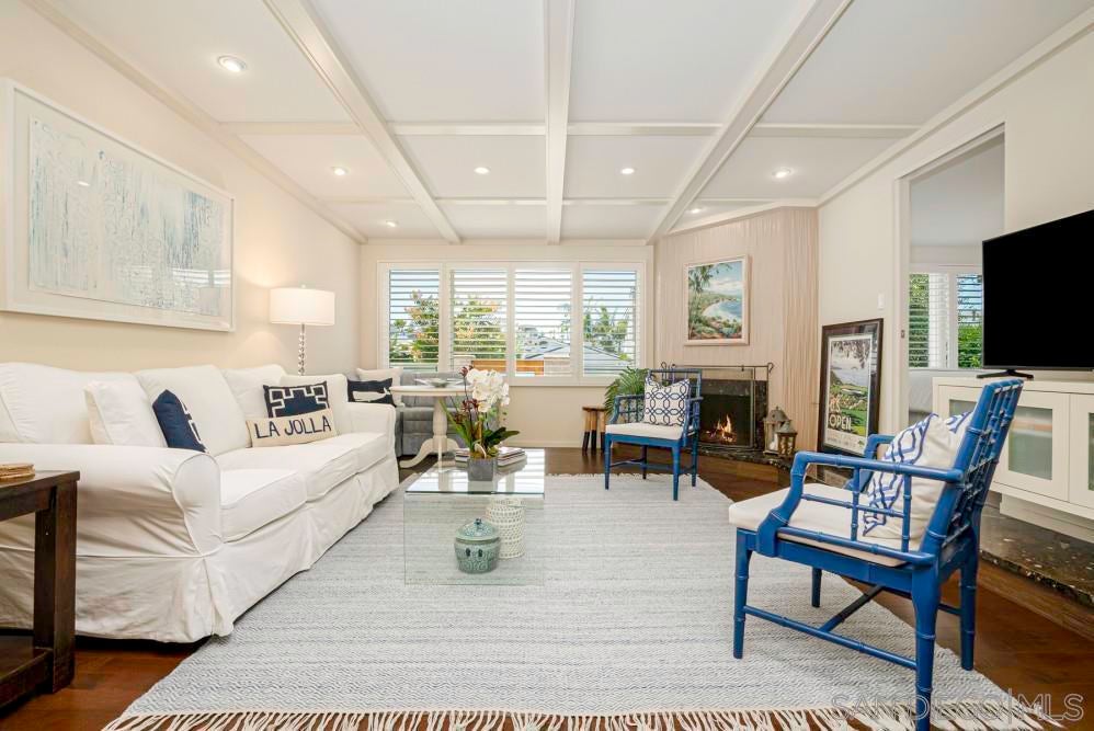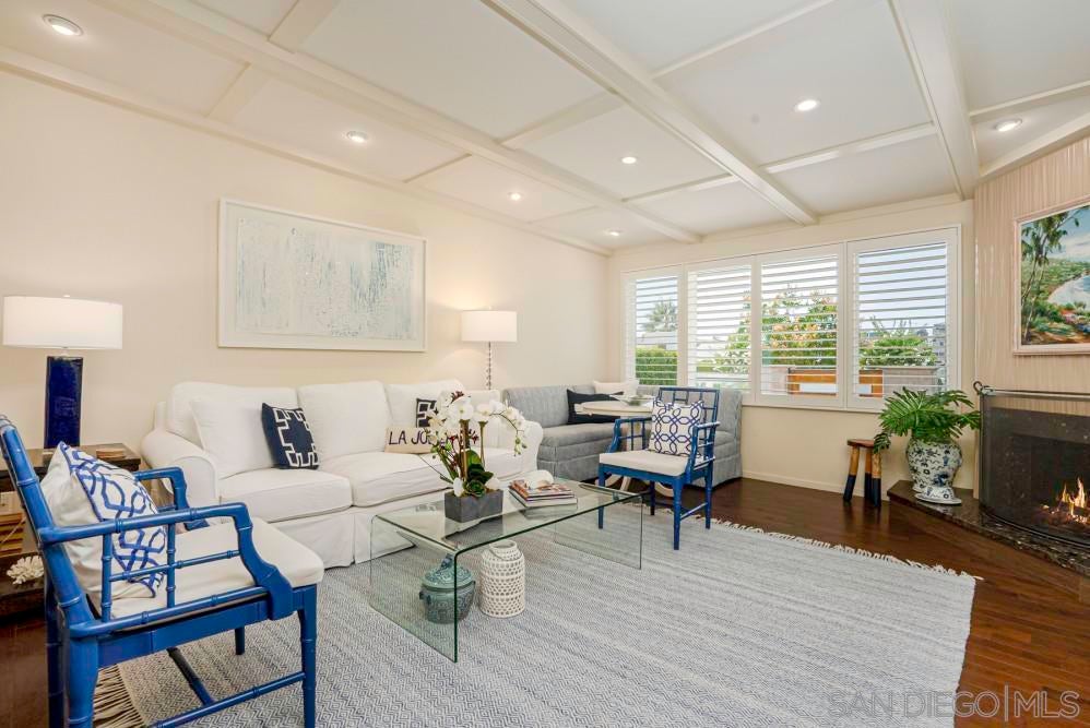 Just moments from the sand, this single-level retreat offers a spacious open floor plan, lush outdoor spaces, and ocean views from the rooftop deck. Step through the gated front yard and into the home's interior. Directly ahead, a beautifully styled dining area seats four. The fully equipped kitchen features modern appliances and a large island with bar seating for three. To the left, the first of two living areas welcomes you with a plush sofa, TV, and additional seating for lounging or connecting with friends and family. A second living space offers a queen pull-out sofa, cozy fireplace, a second TV, and extra seating. Oversized sliding glass doors span the rear of the home, opening wide to reveal a private backyard retreat surrounded by greenery. Enjoy a second outdoor table for four, lounge chairs, fire pit, and an outdoor TV adding to the entertainment options. From the backyard, a staircase leads to the rooftop deck where you'll find cushioned lounge seating and panoramic ocean views of La Jolla Shores. Inside, the home features three beautifully appointed bedrooms. The primary suite offers a king bed, walk-in closet, private TV, and a spa-like bathroom. Two guest bedrooms, each with a queen bed, share a stylish full bathroom, and there’s an additional half bath for convenience. Parking includes a garage space for two vehicles and driveway access. This home features central air conditioning, in-unit laundry, no pets allowed. Sleeping Accommodations (Max Occupancy 8): Bedroom 1- 1 King bed Bedroom 2- 1 Queen bed Bedroom 3- 1 Queen bed Shared Space- 1 Queen Sofa Bed. • 30-night minimum stay • No pets allowed • No Smoking • Guests ages 25+ unless family groups • Parking: 2 garage parking spots/driveway access, and street parking available for guests • Events/parties are not permitted and strictly enforced • Pack n' play and high chair available for rent - $25 each plus tax • As part of our standard verification process, we kindly request that the guest signs an additional agreement and verifies ID. Your comfort and security are important to us. As part of our personalized guest experience, a Guest Experience Manager will personally welcome you at your preferred arrival time. They’ll provide a guided walkthrough, ensuring you're familiar with the home's amenities so you can settle in effortlessly and start enjoying your vacation right away. From answering questions to offering local recommendations, we’re here to make your stay seamless and unforgettable.