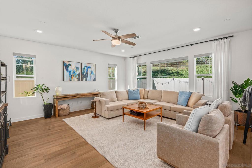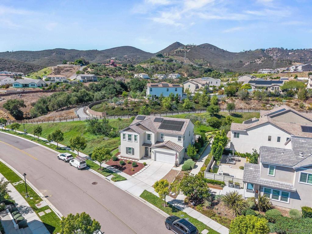 An expansive private driveway leads to 3012 Starry Night, a residence that delivers understated luxury & a true sense of escape. With no adjacent neighbors, the home offers exceptional privacy while still being moments from the vibrant energy of Harmony Grove. Inside, a freshly painted exterior opens to an impressive layout featuring four spacious bedrooms, a versatile loft, & a refined office. The great room anchors the home with its open flow into a chef’s kitchen appointed with Bosch stainless steel appliances, an oversized island, abundant cabinetry, & a walk-in pantry. California sliding doors create a seamless extension to the backyard, inviting effortless indoor-outdoor living and peaceful hillside views for beautiful sunset dinners. The first-floor en-suite bedroom offers ideal privacy for guests or multi-generational living. Upstairs, the primary suite serves as a private sanctuary with dual walk-in closets, a spa-inspired bath, and an intimate balcony overlooking the surrounding hills. The loft adds yet another layer of flexibility for work, leisure, or retreat. With paid solar, 2 Tesla Powerwalls, smart thermostat, LVP floors, designer accents, & thoughtful enhancements throughout, this home embodies modern comfort at every turn. Harmony Grove elevates everyday living with resort-style amenities including pools, spa, clubhouse, playgrounds, and miles of scenic trails. 3012 Starry Night brings together privacy, elegance, & community in a truly exceptional setting.