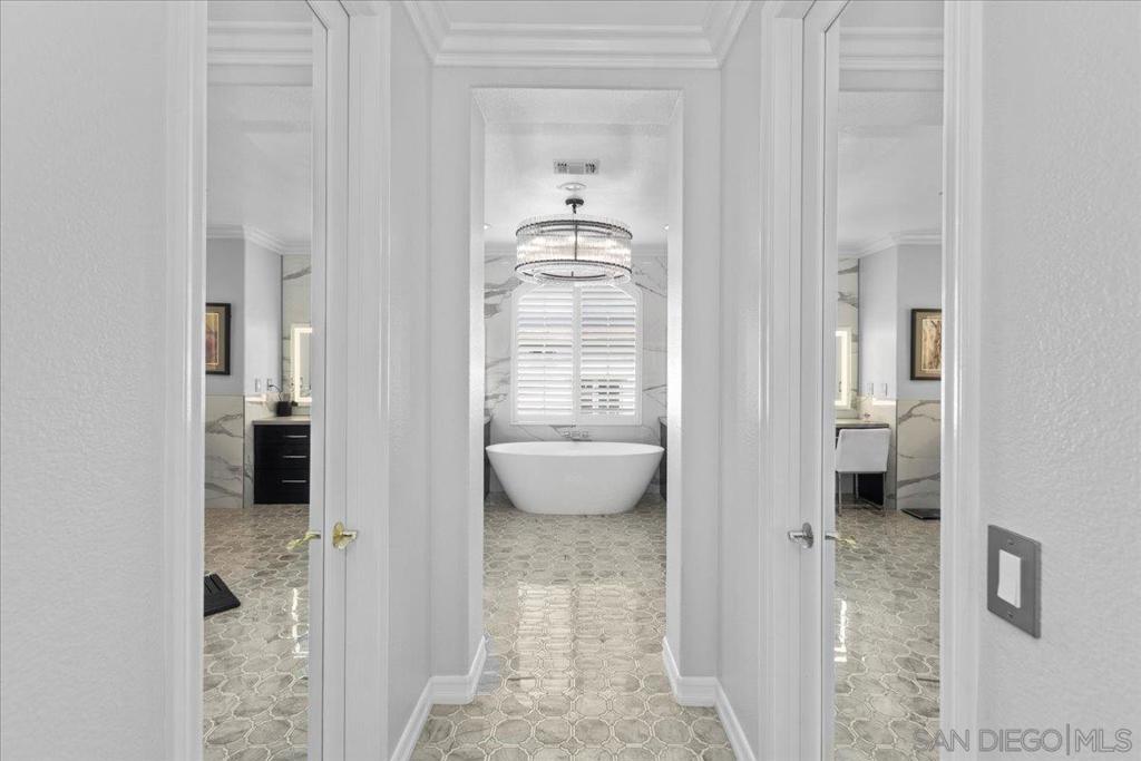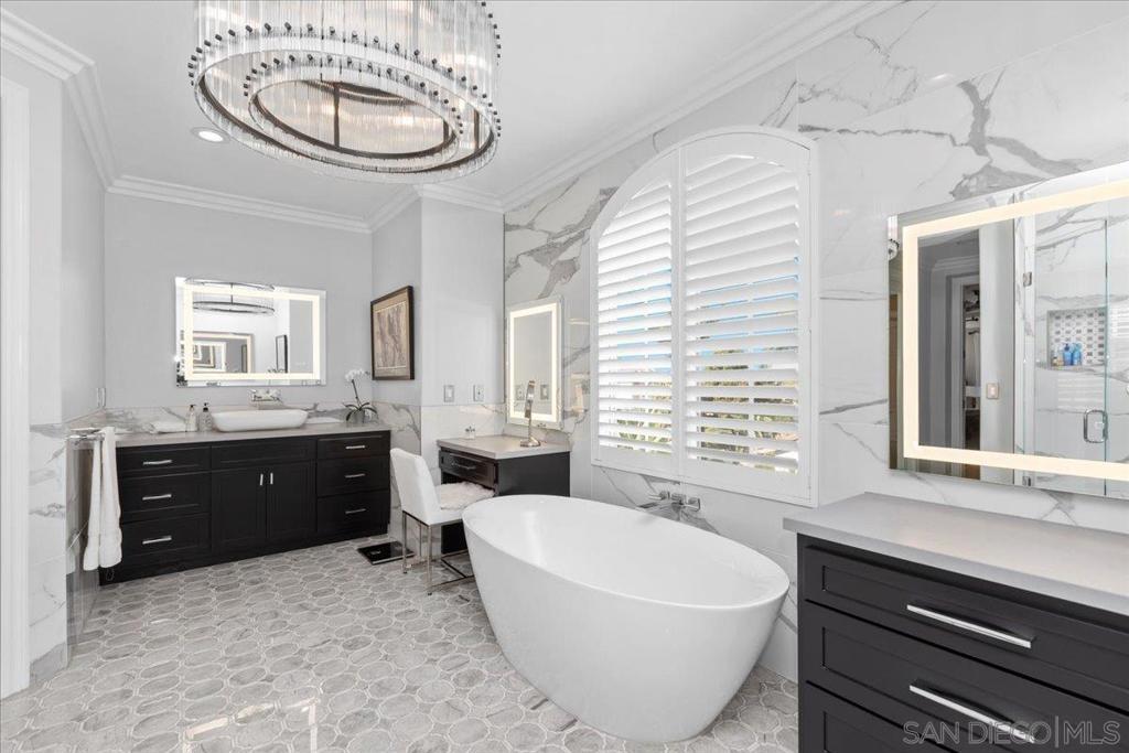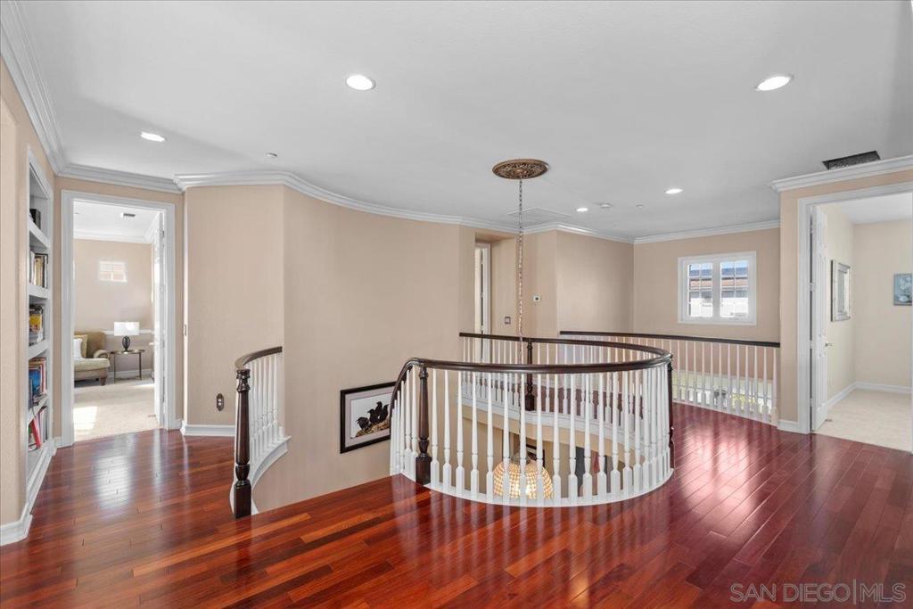 Encinitas Ranch Coastal Estate — Luxury, Privacy & Ocean Breezes in this stunning 5BR, 4.5BA estate set in one of Encinitas’s most coveted golf course and ocean-view communities. Just two miles from one of Southern California’s best beaches and within the top-ranked Enc./San Dieguito School District, this home offers the ideal blend of coastal living and refined comfort. Situated on a private 1/4 acre cul-de-sac key lot, the property borders open space and provides room for an ADU or pool. Automatic wrought-iron gates open to a long, private driveway. The water-wise botanical grounds feature mature succulents and sculptural plantings, creating a serene, low-maintenance retreat. Inside, craftsmanship and style shine with African Sapele hardwood floors, crown molding, custom drapery, and Restoration Hardware lighting. The great room is anchored by a dramatic 15-ft reclaimed barn-wood mantel and designer iron fireplace. The remodeled chef’s kitchen includes Thermador appliances, a SubZero wine/beverage center, marble countertops, custom cabinetry, and a coffee & scotch bar. Additional amenities include a private home theater with surround sound and popcorn bar, plus a fitness room. The primary suite features a fireplace, retreat room, and ocean-view deck. The spa-inspired bath offers a freestanding soaking tub, marble-tiled surfaces, and backlit mirrors. Outdoor living excels with an open-air theater, grand fireplace, and multiple sitting areas ideal for coastal evenings. PV solar system, and Tesla Charger. Seller is offering rate buy down incentive or closing cost credits. Encinitas Ranch Coastal Estate – Golf Course & Ocean View Community Gorgeous five-bedroom, four-and-a-half-bath Concordia home in the highly sought-after Encinitas Ranch community — a prestigious golf course and ocean-view neighborhood located within one mile of Moonlight Beach and in the top-ranked San Dieguito Union High School District (#3 of 466 in California and #17 of 10,394 nationally, according to Niche). Situated on a private cul-de-sac key lot spanning over one-quarter acre, this property backs to and borders open space for added privacy — with room for an ADU or pool. The approach features automatic wrought-iron gates leading to a long private driveway with parking for up to four cars. The sunlit, water-wise landscape showcases over a hundred mature succulents and cactus varieties, highlighted by century plants, agave, jade, aloe, fire sticks, euphorbia, golden barrels, eucalyptus, olive, naked coral trees, queen palms, and giant bird of paradise, creating a serene botanical retreat. Inside, refined craftsmanship and contemporary comfort meet seamlessly. African Sapele hardwood flooring flows throughout the home, complemented by four Restoration Hardware chandeliers, custom drapery, and elegant crown molding. The great room features a 15-foot hand-hewn reclaimed barn wood mantel above a designer iron fireplace surround, creating a striking focal point. The remodeled chef’s kitchen includes Thermador appliances, a SubZero wine and beverage center, marble countertops, custom cabinetry, and upgraded hardware and lighting. A coffee and scotch bar adds a distinctive touch for entertaining. Adjacent spaces include a home theater with built-in surround sound and its own popcorn bar, as well as a fitness room with TV and Sonos soundbar that opens to a secluded outdoor yoga and fitness terrace. Upstairs, the primary suite offers a gas fireplace, a bonus retreat room, and an ocean-view deck framed by a custom wrought-iron railing. The recently remodeled primary bath is spa-inspired, featuring a freestanding soaking tub, quartz stone walls, marble tile throughout, custom lighting, and backlit mirrors. Outdoor living is elevated with an outdoor home theater, grand gas fireplace, and multiple sitting areas ideal for entertaining or quiet evenings under the coastal sky. Additional upgrades include a PV solar system with Tesla charger, updated banister and li...